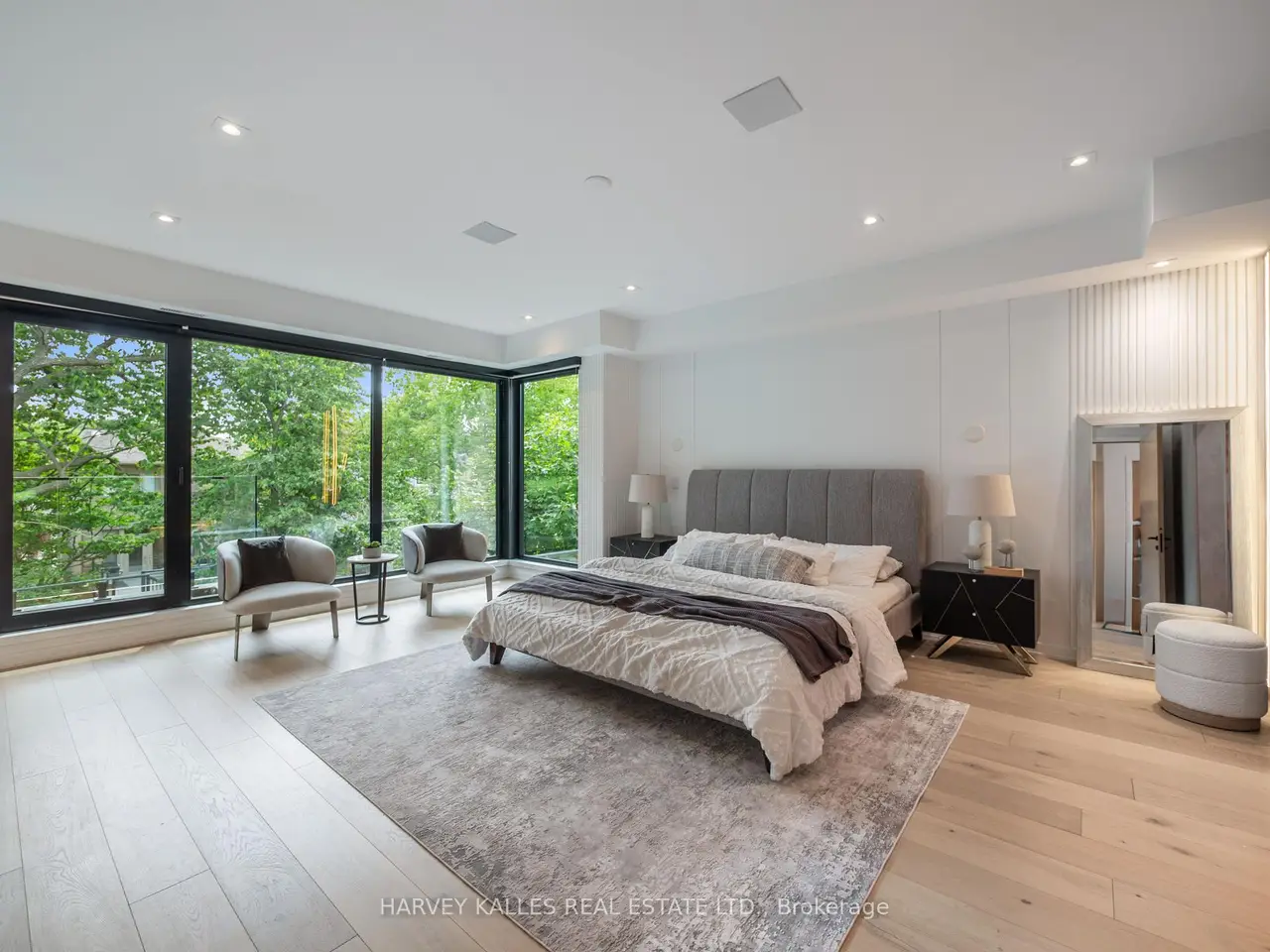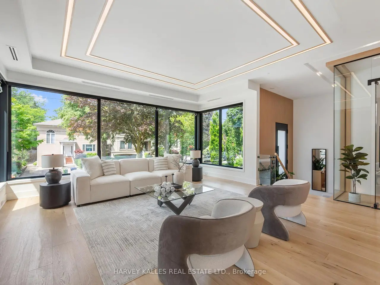 State-of-the-art modern masterpiece in the heart of Bedford Park. A great Family home showcasing impeccable craftsmanship, designer finishes, and cutting-edge technology across approx. 6,000 sq. ft. of luxurious living space with tons of storage space for everyday living. The main level offers soaring 10' ceilings, engineered oak hardwood floors, panelled walls, and expansive picture windows that flood the home with natural light. A gourmet chef's kitchen is equipped with custom cabinetry, porcelain countertops, and a full suite of Miele appliances, seamlessly flowing into the family room with gas fireplace and walkout to a sun-filled deck with BBQ hookup. A butlers pantry, elegant dining room, private study, and bright living room complete the level.Upstairs, the primary retreat boasts a walk-in closet, balcony, and a spa-inspired 7-piece ensuite with freestanding tub, double vanity, and seamless glass shower. Each additional bedroom includes its own ensuite and custom closet.The lower level features radiant heated floors, a recreation room with home theatre potential, nanny's suite with semi-ensuite, gym/golf simulation rough-in, walkout to yard, and direct garage access. Luxury living at its finest in one of Toronto's most desirable neighbourhoods.