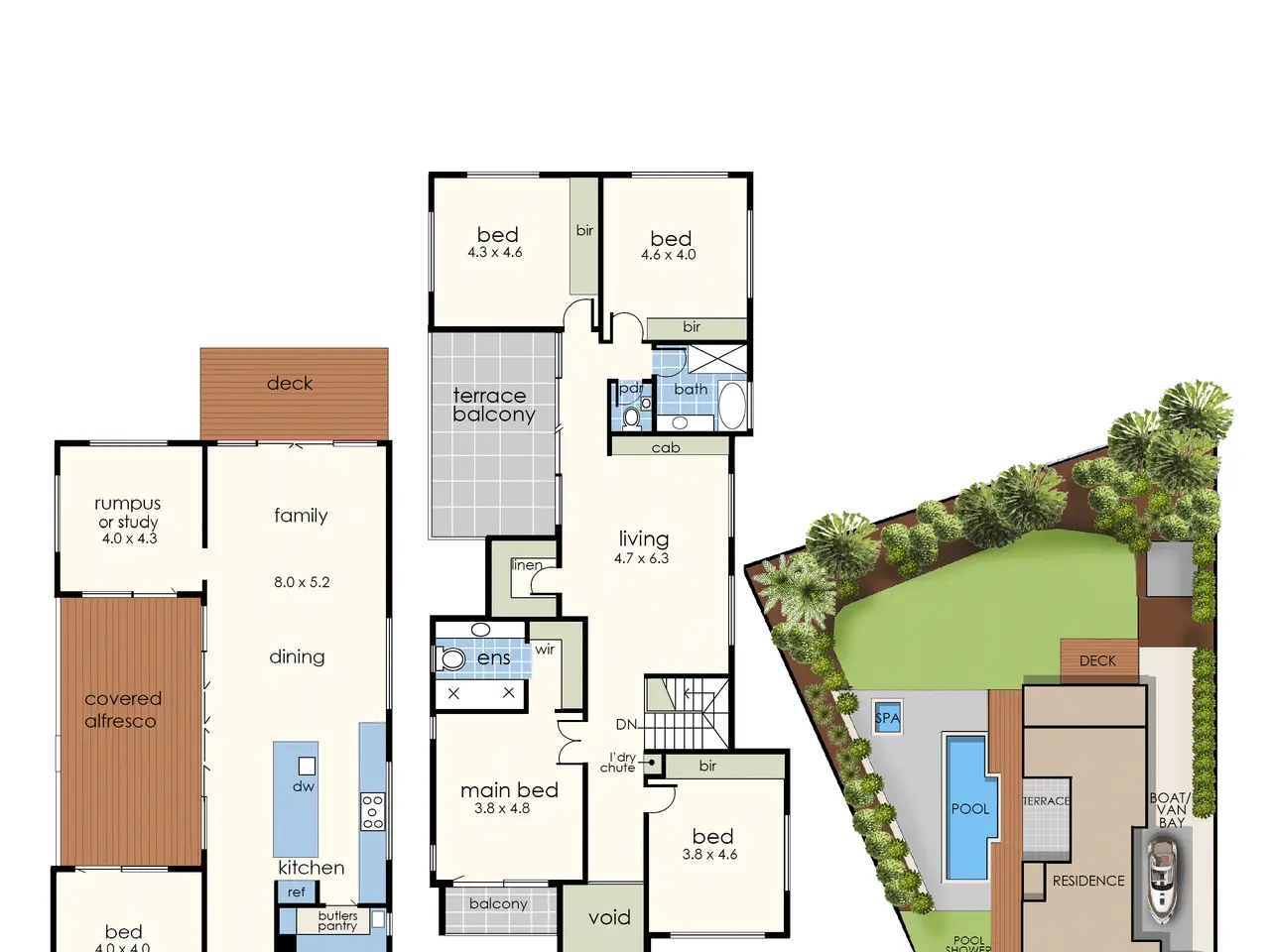 • Magnificent alfresco zone overlooking pool with waterfall feature