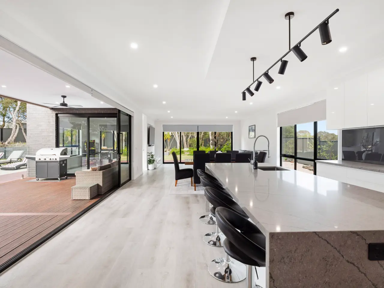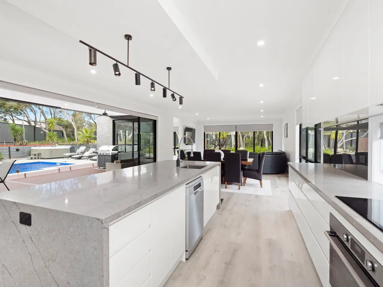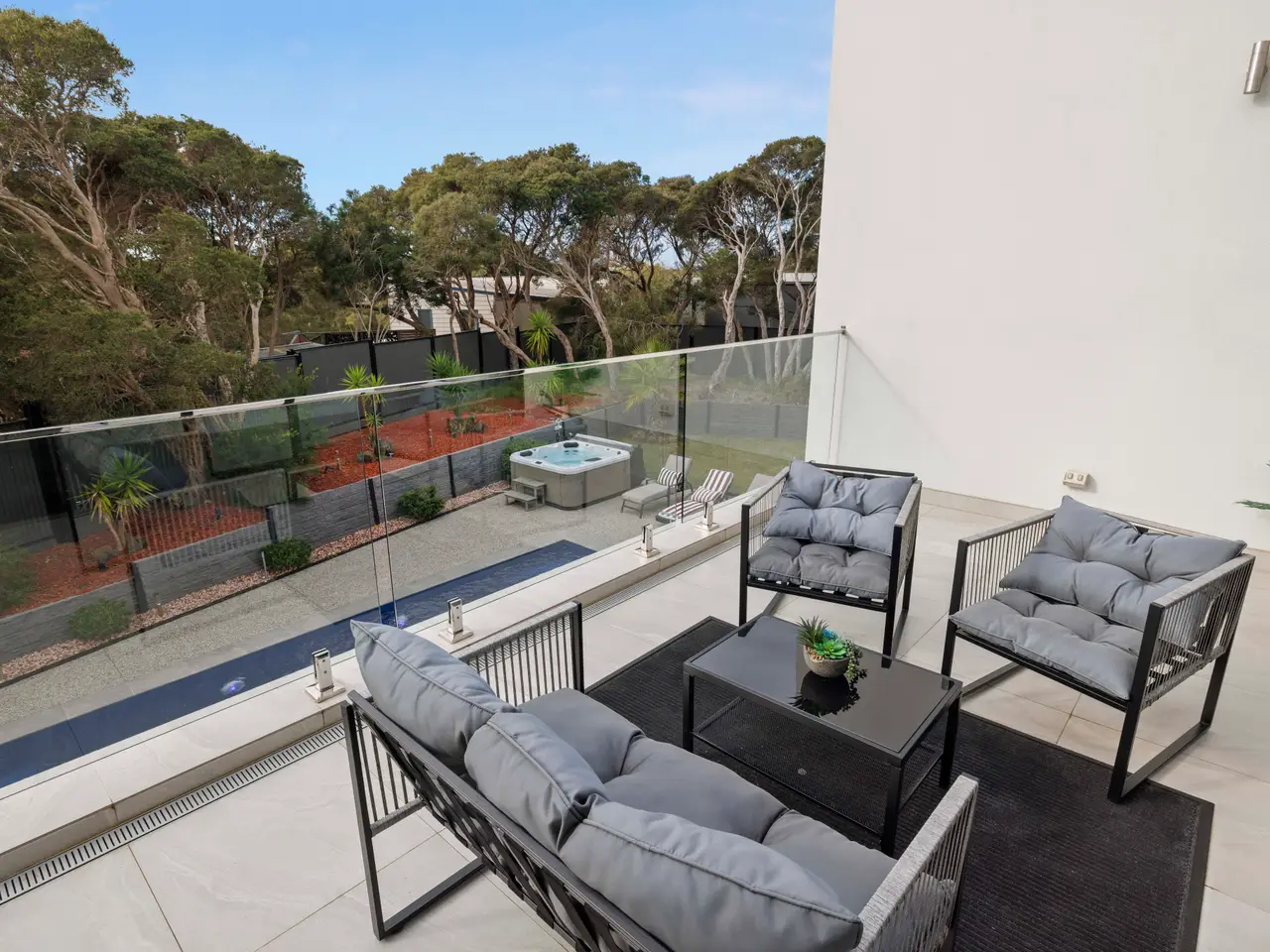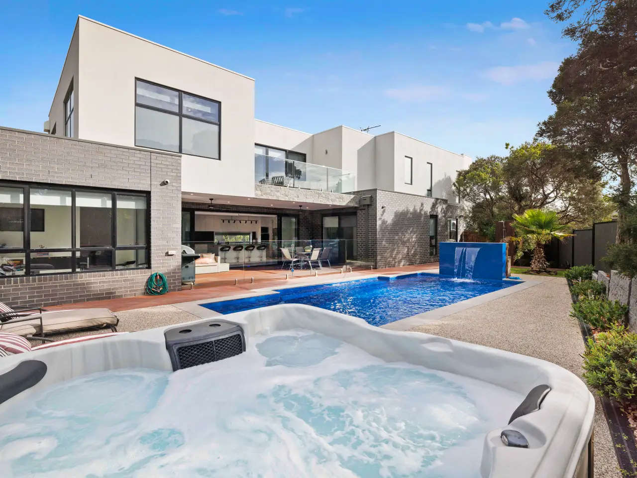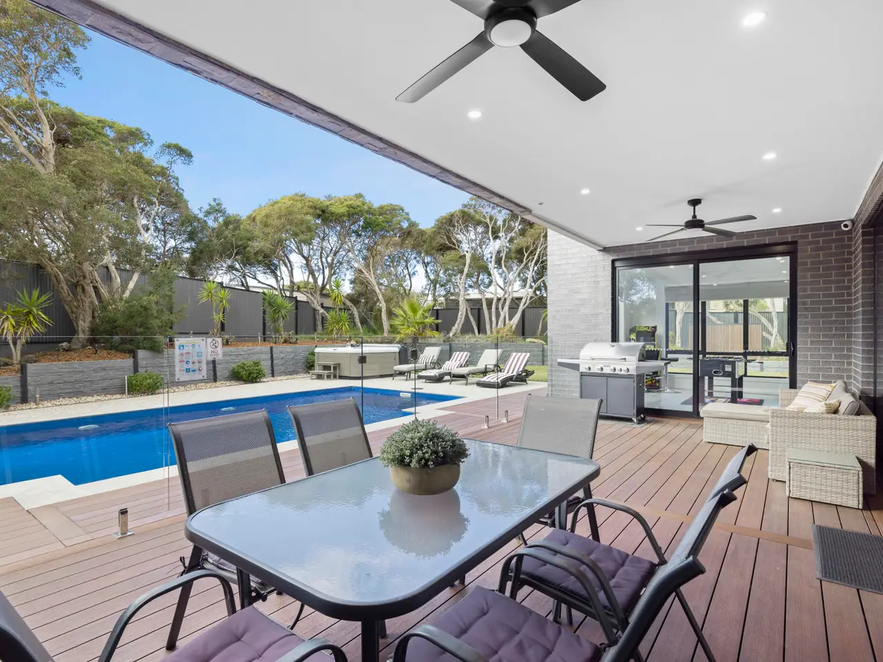 In a class of its own with resort-like space and style, a glimpse of the bay, five bedrooms, a spa and superb inground pool, this is the ultimate coastal retreat nestled between stunning front and back beaches. Set behind a remote gate and less than three years old, the sprawling residence is the perfect family base to enjoy everything the Mornington Peninsula has to offer with loads of space for extended family or guests and featuring three living areas, a large study, three bathrooms, two powder rooms and a fabulous connection between indoors and out. Anchored by an expansive open plan living area and set beneath high ceilings, the home provides a stunning entertainer's kitchen with butler's pantry, twin ovens, electric induction cooktop and an oversized waterfall island bench with 40mm stone, while stacker doors open to the magnificent alfresco zone overlooking the pool with a waterfall feature, hot water outdoor shower and plenty of room for sun lounges. Also on the lower level is a welcoming lounge or study adjacent to the entrance, double height entry void, a guest bedroom with ensuite and door onto the alfresco deck, as well as a games or bar room that also leads out to deck and pool. Upstairs, the master bedroom enjoys a balcony that gazes over the trees to the bay, a walk-in robe and ensuite featuring luxurious double shower and there are three large bedrooms, main bathroom, powder room and yet another living area is the ideal children's lounge with a sunny balcony looking down to the pool area. Other features include water tank, security cameras with remote access, ducted vacuum on both levels, multi zoned ducted heating/ refrigerated cooling downstairs, vented reverse cycle heating/cooling for each room upstairs, a remote double garage with drive through rear roller door for boat or jetski, large laundry with chute from upstairs, walk in linen closet, understairs storage, lush rear lawn area with sprinkler system and superb landscaped gardens. Inspections are by private appointment only. To be sent a copy of the Contract and advised of property updates, simply submit an enquiry on this page. The Belle Property Southern Peninsula team is proud to be offering this property for sale. For further information, please contact Jay Furniss at the Blairgowrie Office on 0419 728 225 or jay.furniss@belleproperty.com Disclaimer: Whilst every care has been taken in preparing the property information, it is to be used as a guide only. Please refer to the appropriate legal documentation to complete your due diligence.