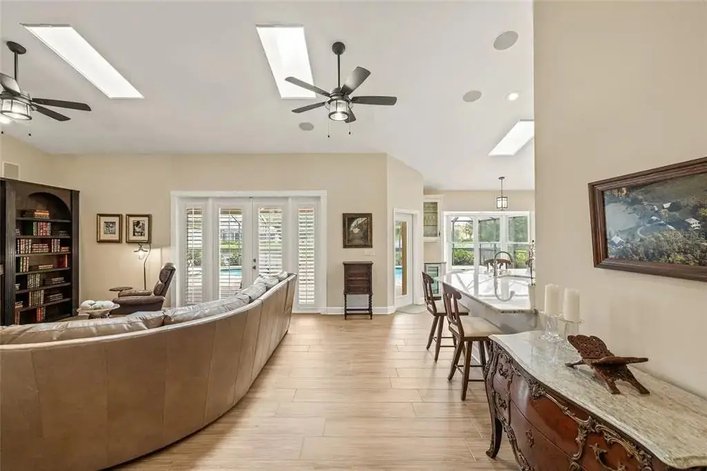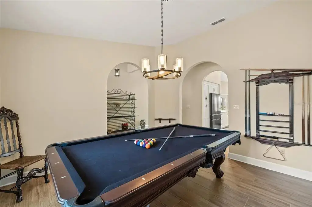 Under contract-accepting backup offers. Discover the perfect blend of elegance, comfort, and Florida charm in this stunning single-level estate, offering sweeping lake views in St. Petersburg’s premiere gated community, Placido Bayou. Located on a quiet cul-de-sac, this grand residence features an open-concept layout with 4 bedrooms, 3 full baths and multiple entertainment rooms all thoughtfully and fully renovated over the past 5 years. Every detail has been upgraded to perfection, including new flooring throughout the entire home, a completely custom kitchen with artisan cabinetry featuring pull-out shelving, porcelain farm sink with the glistening lake as your vantage point and stunning black stainless steel appliances. An entertainer's dream, this home features a billiards room, two interior dry bars with a beverage refrigerator and a wet bar off the pool area with a separate pool bath. The screened pool lanai keeps maintenance to a minimum while you relax by the salt water and heated pool and spa overlooking serene lake views. Along the right side of the home lies a privately-fenced area ideal for play, pets, or a flourishing garden. The primary suite is a true retreat, complete with two walk-in closets, water views and a French door leading to the pool area. The spa-like primary bath offers a gorgeous step-in shower and separate claw-foot tub ideal for soaking away the stress of the day. Adjacent to the primary bathroom is a bedroom currently used as a home office. The opposite side of the home features two additional bedrooms and a shared hall bathroom with an updated dual-sink vanity and step in shower. Entertain effortlessly in the spacious living room with stately bookshelves and an electric fireplace before you call guests to enjoy the dinner party. Mingle and catch up around the oversized kitchen island (with seating for up to 9 guests) or plan the soiree in the adjacent lakeside dining room. This estate isn’t just a home — it’s the lifestyle you have been looking for. Placido Bayou offers the perfect combination of privacy and convenience with a 24-hour guard gate and easy access to downtown St. Petersburg, I-275, dining, nightlife, outdoor recreation, fishing, golfing, tennis, and two nearby airports.
