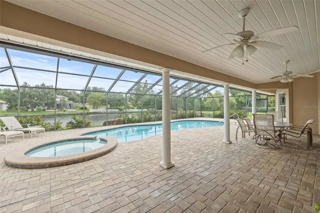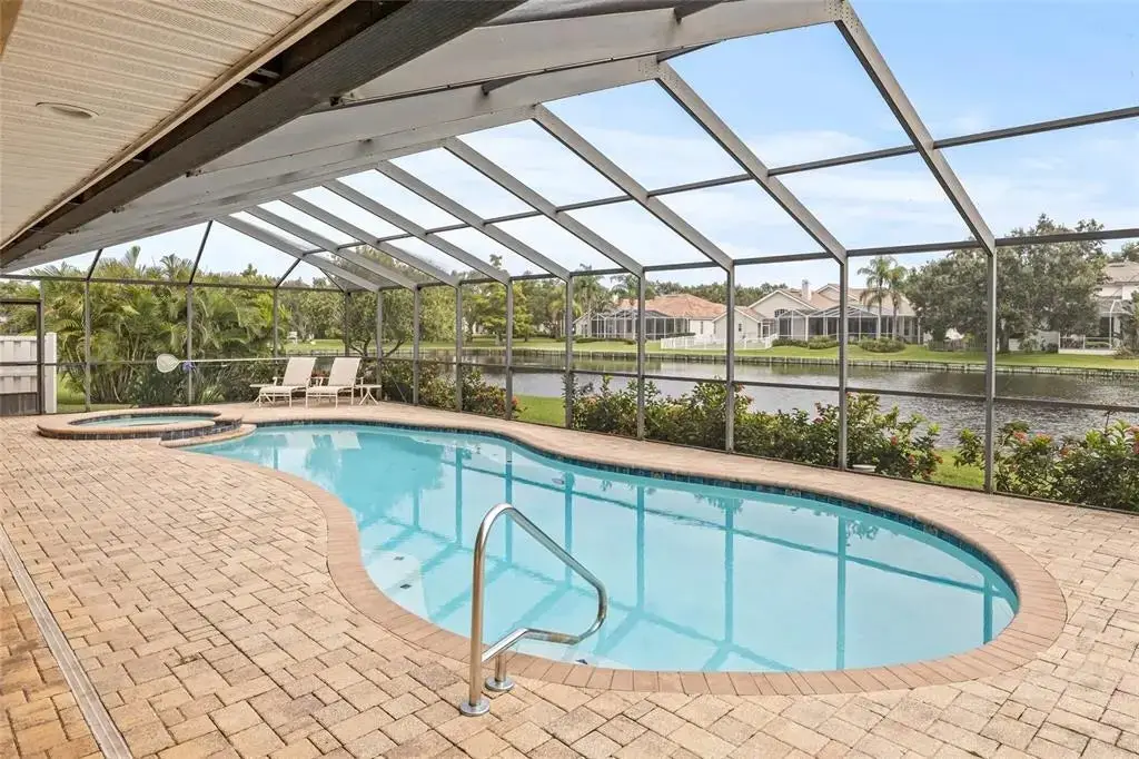 • Screened pool lanai with saltwater pool & spa