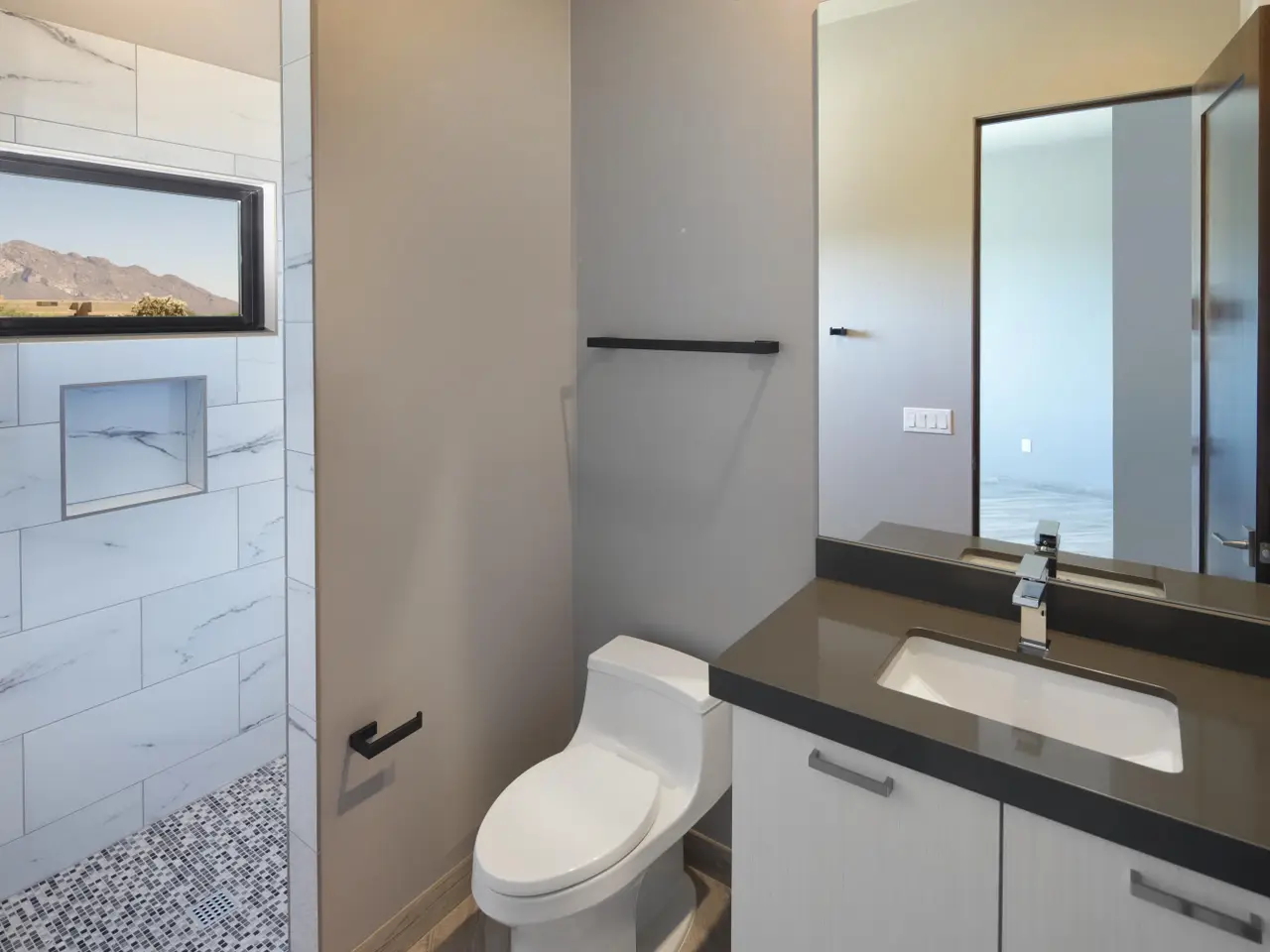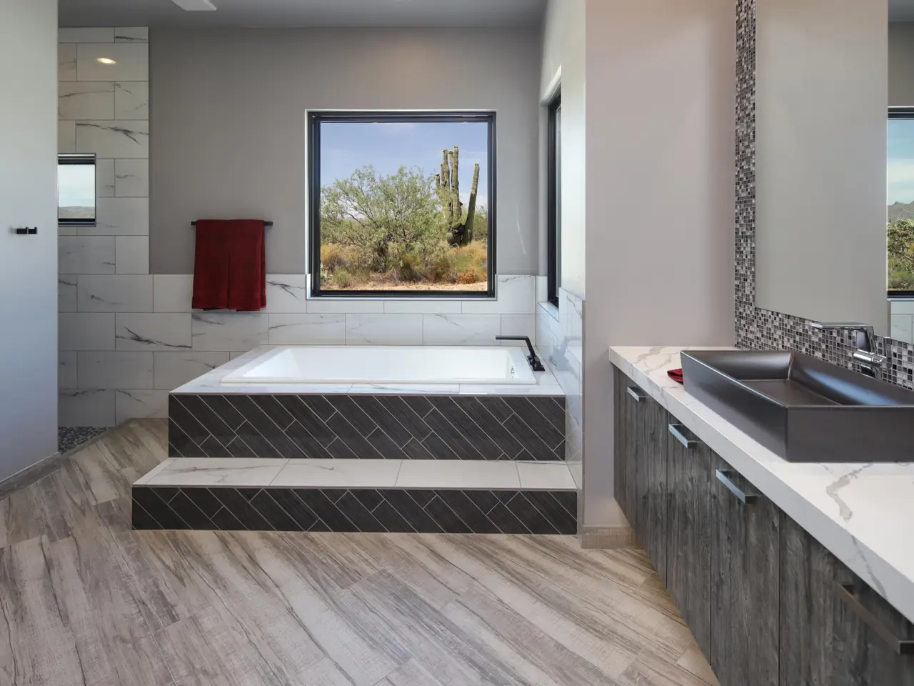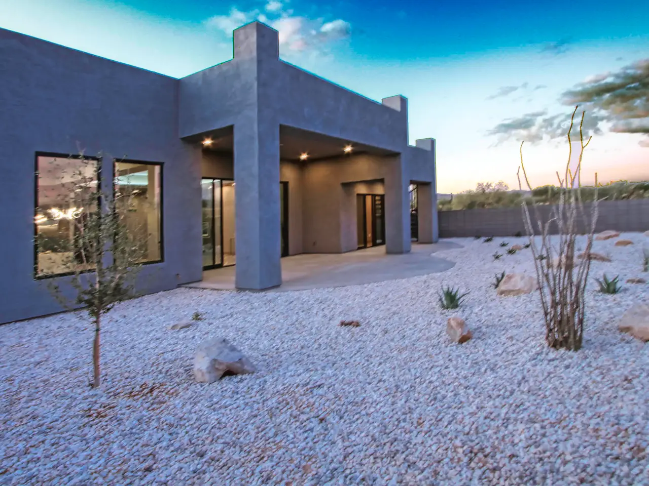 To be built custom home on a nearly one-acre lot. These pictures are same floorplan built in a different location. Stunning brand new contemporary on nearly one acre. 2,871 square feet, three bedrooms, 3.5 baths, open design concept. Quality craftsmanship throughout this custom home. Wall of windows including 10/16-foot slider with mountain views, designer kitchen with stainless appliances. Quartz counters with waterfall edge island and walk-in pantry, master suite includes luxurious bath with double vessel sink vanities, large soaking tub, walk-in shower, plus large walk-in closet with access to laundry. Large laundry room with loads of cabinets, and sink. Oasis walled backyard with large covered patio. Price includes this floorplan with standard features and lot premium. Some features in pictures are upgrades.
