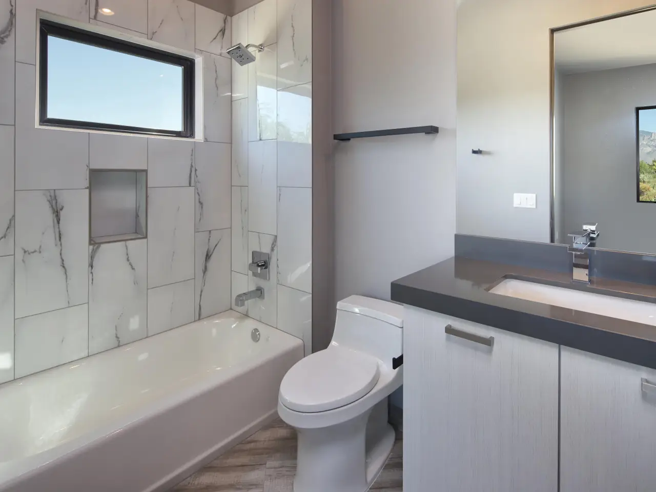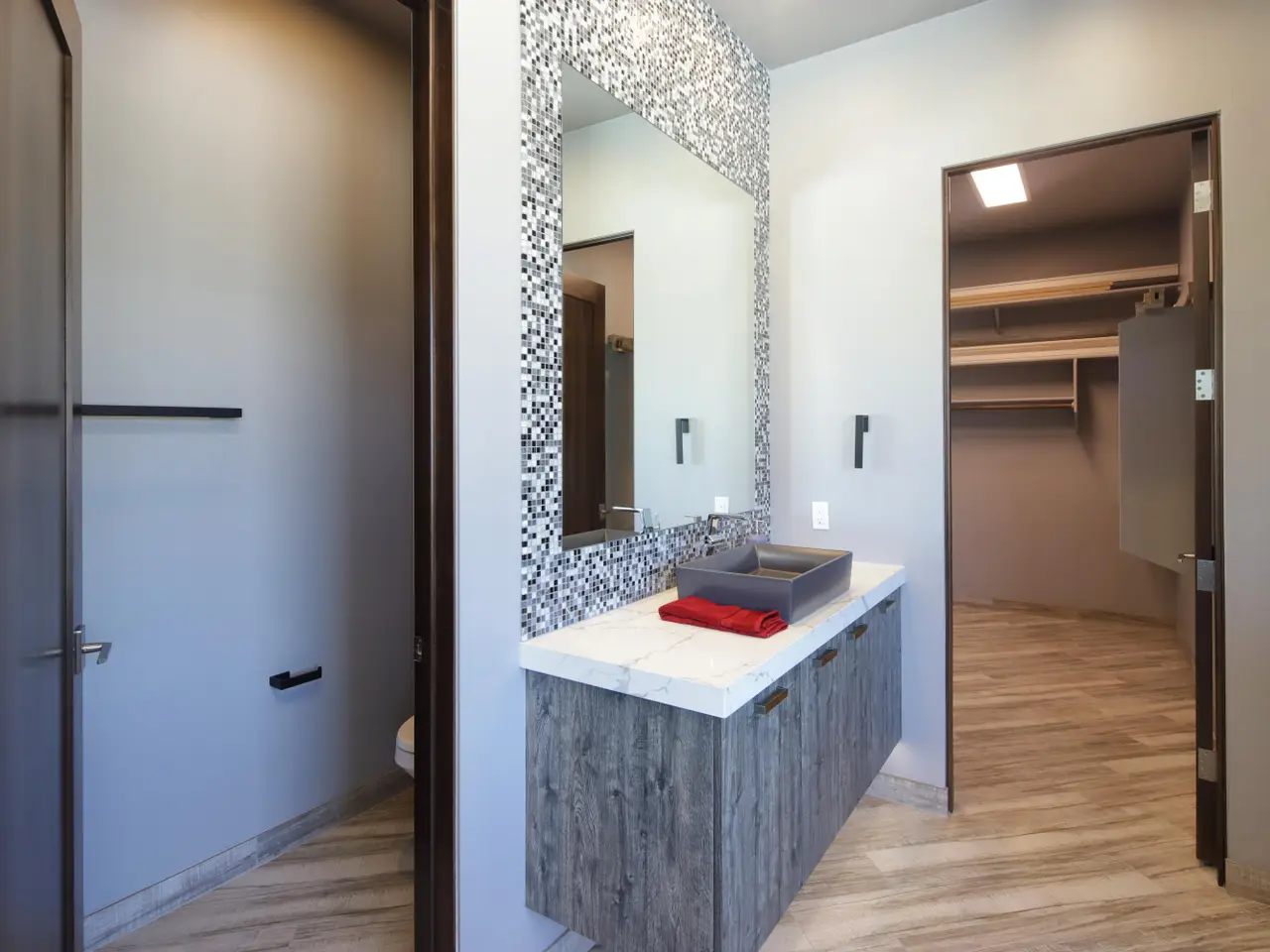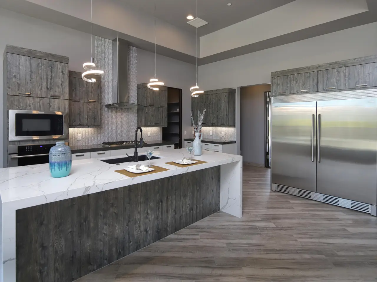 To be built custom home on a nearly one-acre lot. These pictures are same floorplan built in a different location. Stunning brand new contemporary on nearly one acre. 2,871 square feet, three bedrooms, 3.5 baths, open design concept. Quality craftsmanship throughout this custom home. Wall of windows including 10/16-foot slider with mountain views, designer kitchen with stainless appliances. Quartz counters with waterfall edge island and walk-in pantry, master suite includes luxurious bath with double vessel sink vanities, large soaking tub, walk-in shower, plus large walk-in closet with access to laundry. Large laundry room with loads of cabinets, and sink. Oasis walled backyard with large covered patio. Price includes this floorplan with standard features and lot premium. Some features in pictures are upgrades.