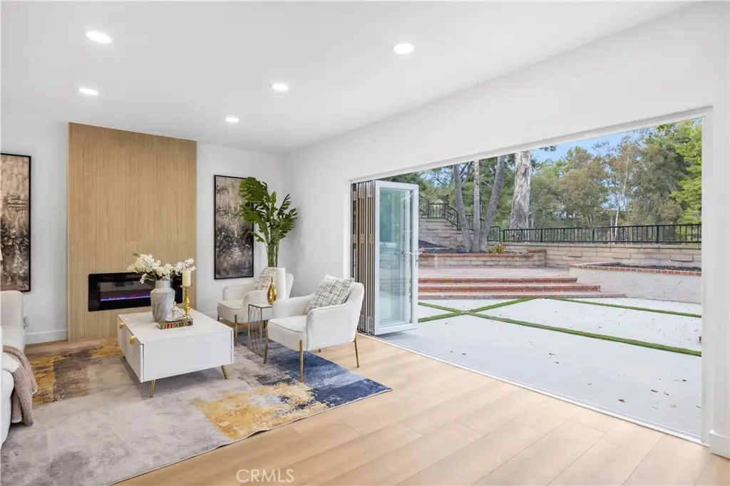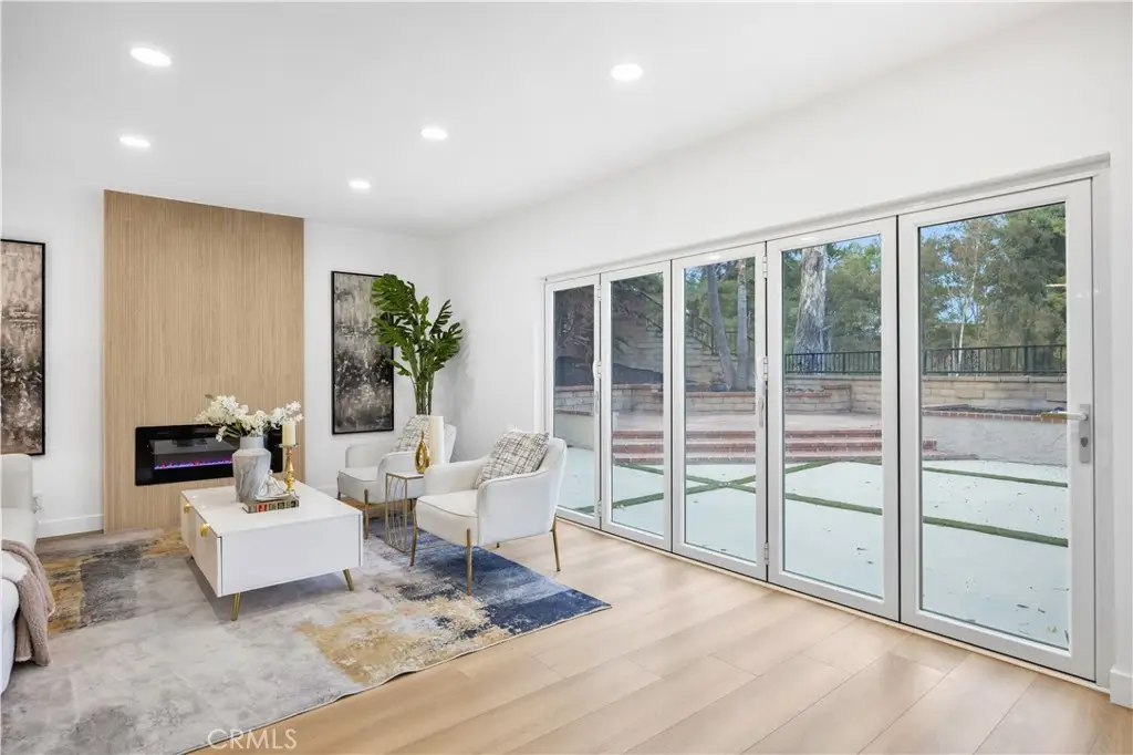 Welcome to 27662 ESLA, a BEAUTIFULLY REMODELED HOME in the prestigious MADRID DEL LAGO community in the heart of MISSION VIEJO--an area known for its charm, serenity, and high demand. From the moment you enter, you're welcomed by SOARING CEILINGS, ABUNDANT NATURAL LIGHT, and a thoughtfully designed OPEN LAYOUT that feels both spacious and inviting. The entire home has been tastefully upgraded, featuring BRAND-NEW WINDOWS THROUGHOUT, ELEGANT NEW FLOORING, and a CHEF'S KITCHEN complete with WARM OAK CABINETRY, SLEEK WHITE GRANITE COUNTERTOPS, and PREMIUM STAINLESS STEEL APPLIANCES. A COZY INDOOR FIREPLACE anchors the living space, and a GIANT FOLDING DOOR opens wide to the backyard, creating the ultimate INDOOR-OUTDOOR LIFESTYLE. Whether entertaining or enjoying a quiet evening, the BEAUTIFULLY LANDSCAPED BACKYARD offers PRIVACY, SERENITY, AND SPACE--plus a LARGE SIDE YARD WITH POTENTIAL RV PARKING. Upstairs, the generous PRIMARY SUITE features PEACEFUL VIEWS, a SPACIOUS LAYOUT, and AMPLE CLOSET SPACE. All bathrooms have been FULLY RENOVATED WITH HIGH-END FINISHES AND THOUGHTFUL DESIGN. Additional highlights include a GARAGE WITH AN EPOXY-COATED FLOOR, adding both durability and a clean, finished look to your storage or workspace.vPerfectly situated on A QUIET, WELL-KEPT STREET, this home truly stands out as one of the most desirable properties in the Madrid Del Lago community. You also have ACCESS TO LAKE MISSION VIEJO AMENITIES, including access to the lake, picnic areas, beach, fireworks, concerts, and more.