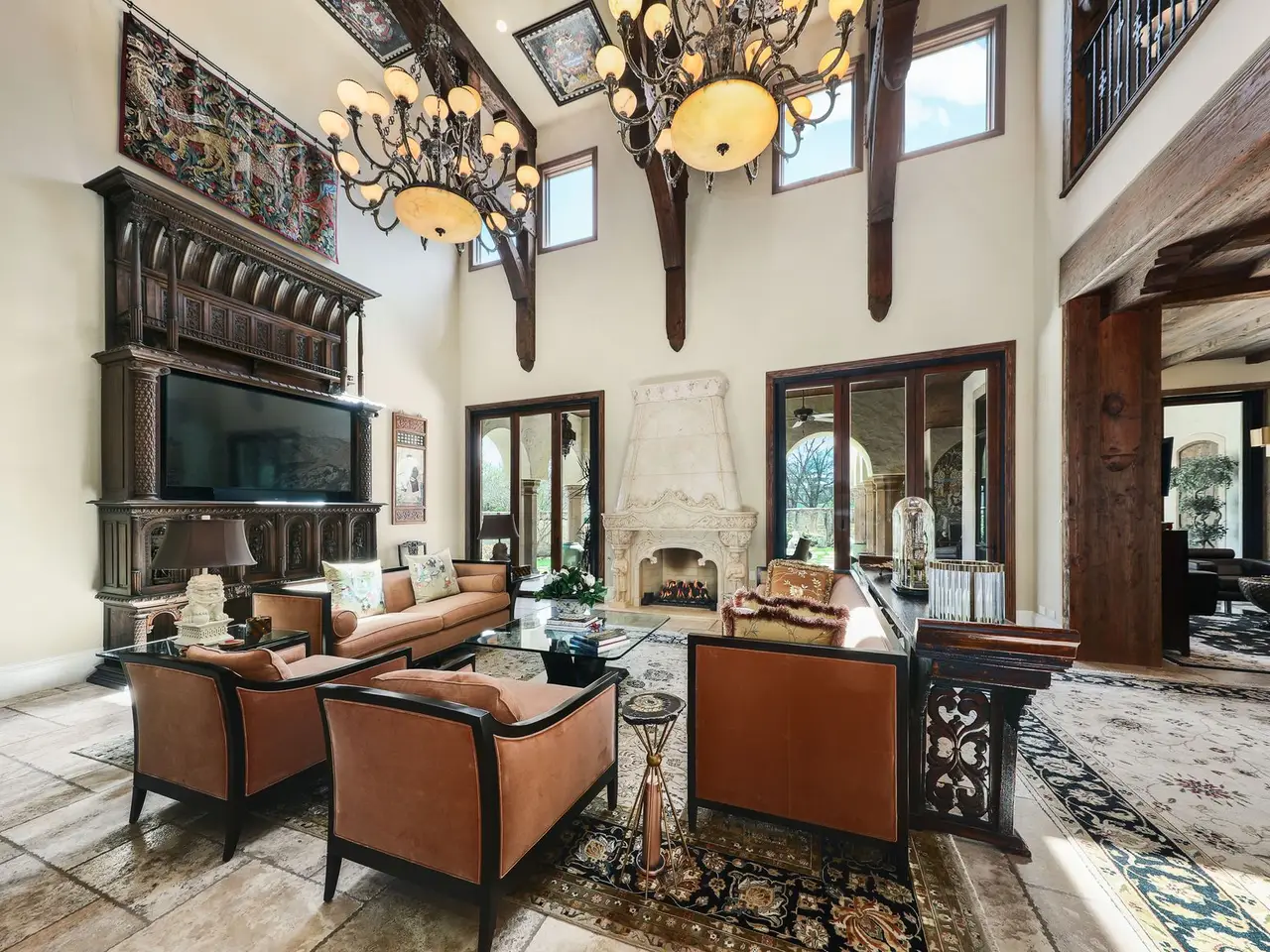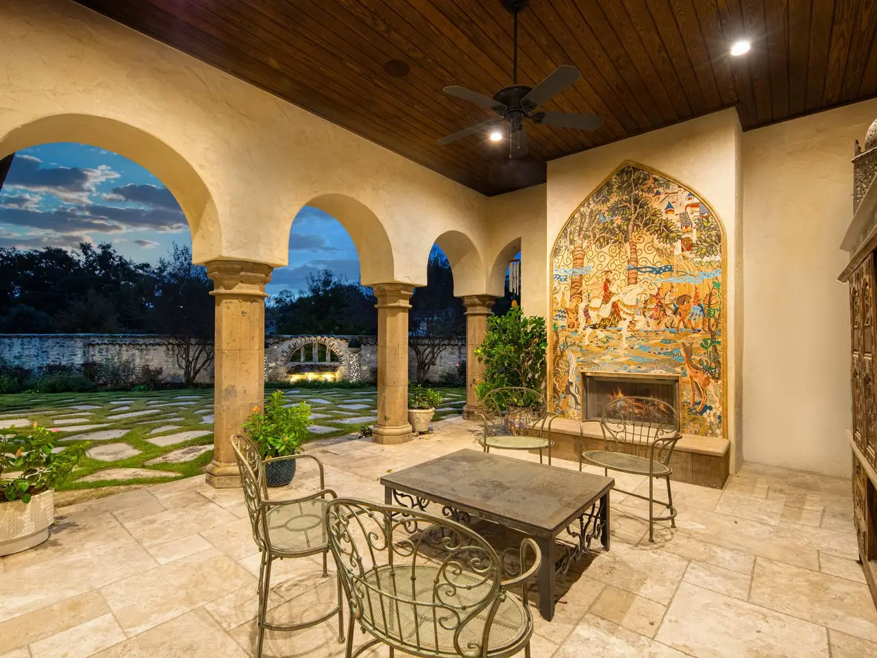 An unprecedented creation in the heart of one of the San Antonio-area's most desirable upscale neighborhoods. There is simply nothing else like it with imported details from Asia, India, and Europe. Fully gated and fenced. Extremely private. Amazing landscaping and hardscaping with multiple themed gardens perfectly compliment this triumph of form and function. Primary + secondary bedroom suite downstairs. 5th bedroom suite used as living area upstairs. Wall easily added. Elevator. Lots of room for pool. Four garage spaces plus ample front and side parking. Three laundry areas. Gorgeous office. 6 fireplaces. Near The Quarry, SA Airport, Saint Mary's Hall, SA Academy and other desired schools. Perfect for entertaining or hiding away.
