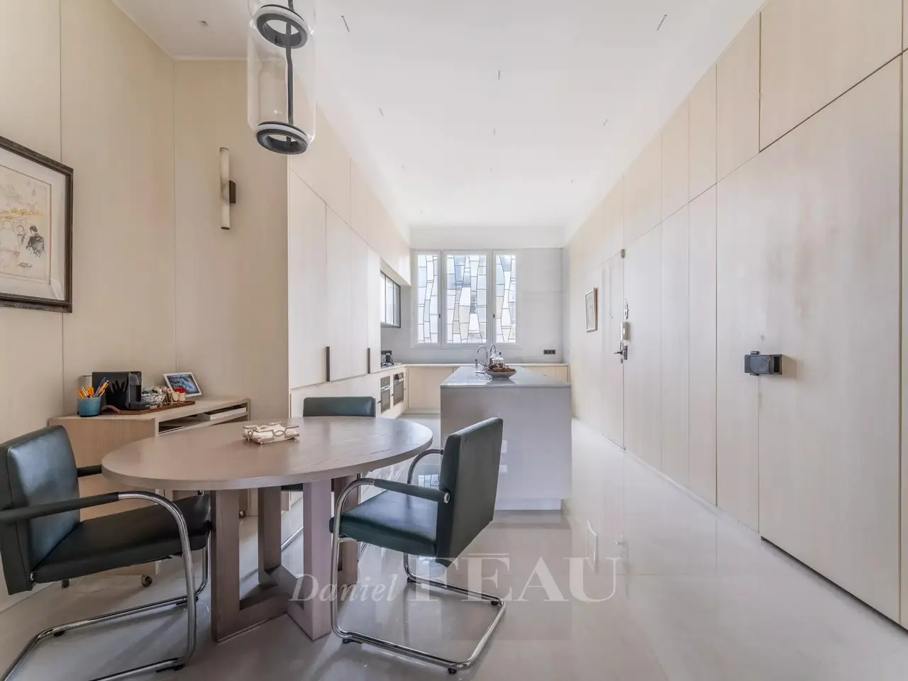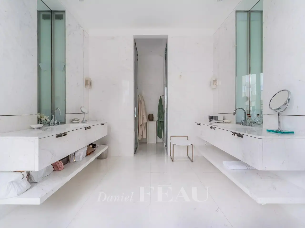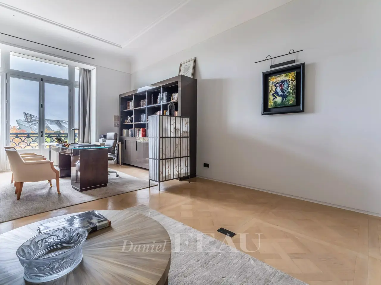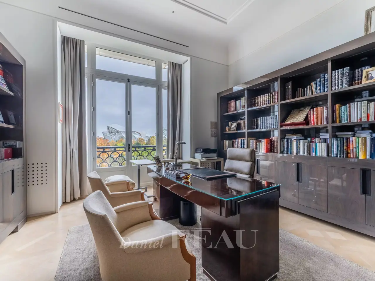 Boulevard Maurice Barrès. This beautifully appointed 380 sqm apartment occupying the whole 3rd floor of a fine 1930s building with a caretaker has been renovated throughout by a renowned interior decorator. Fully south-facing and commanding a magnificent view of the woods, it includes a triple living/reception room with a fireplace, a study, a kitchen with dining facilities and a pantry, a utility room, and three suites including a master. With several fitted closets. With a cellar and a double lock-up garage. A 20 sqm studio apartment on the sixth floor may be acquired for a further 220000€.