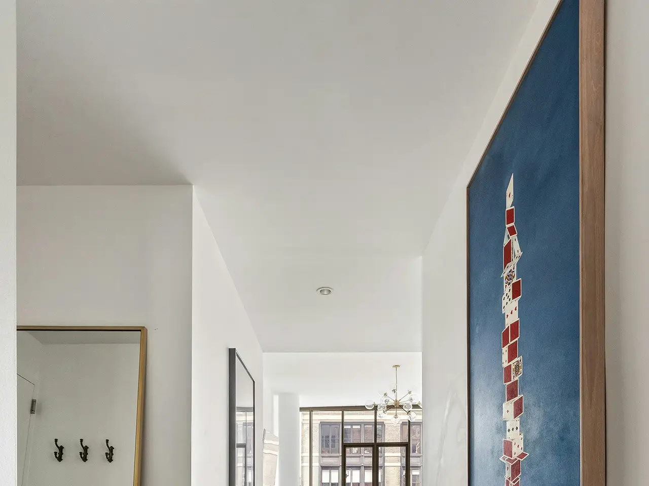 Welcome to Residence 3D at 210 Lafayette Street - an elegant and spacious condominium that defines contemporary luxury in the heart of SoHo. This impeccably designed 1,215 square-foot home offers two spacious bedrooms, two spa-like bathrooms, and the option to purchase fully furnished for a seamless, turnkey experience. Enter into a generous foyer with two gallery size walls, a pantry and storage closet and room for coat hooks that leads to an expansive open plan layout with the east-facing facade, featuring oversized picture frame windows that capture an incredible view down Kenmare Street including the Williamsburg Bridge. They fill the space with natural light with built-in window seats perfect for weather and people watching on vibrant Kenmare Triangle. The layout blends striking interiors with comfort and functionality, anchored by a custom renovated kitchen appointed with high-end appliances, sleek cabinetry, and generous prep space. Sophisticated existing furnishings are available for additional purchase for a seamless move-in. The serene primary suite offers a king-size layout, double-sided custom closets, and an en-suite bath complete with marble finishes, soaking tub, and a separate walk-in shower. The secondary bedroom-currently outfitted with a queen bed and dresser-makes an ideal guest room, office, or studio. Both bathrooms have undergone extensive waterproofing and infrastructure upgrades to ensure enduring performance and luxury. The current owner reconfigured the kitchen, entry, hallway and bedroom storage to maximize functionality, add storage and improve flow. Additional features include an upgraded in-unit washer/dryer and all three p-tac HVAC units, and a private storage cage in the basement is included in the purchase.210 Lafayette is a full-service boutique condominium offering a 24-hour doorman, concierge, and a resident's fitness center. Recent capital improvements include infrastructure enhancements throughout the building. Located at the nexus of SoHo, Nolita, and NoHo, residents are surrounded by some of the city's most iconic boutiques, Michelin-starred dining, art galleries, and vibrant street life. Just moments from the Spring Street 6 train and Prince Street N/R station, the location offers effortless access to the rest of Manhattan and beyond.     There is currently an assessment of $305.30/mo.