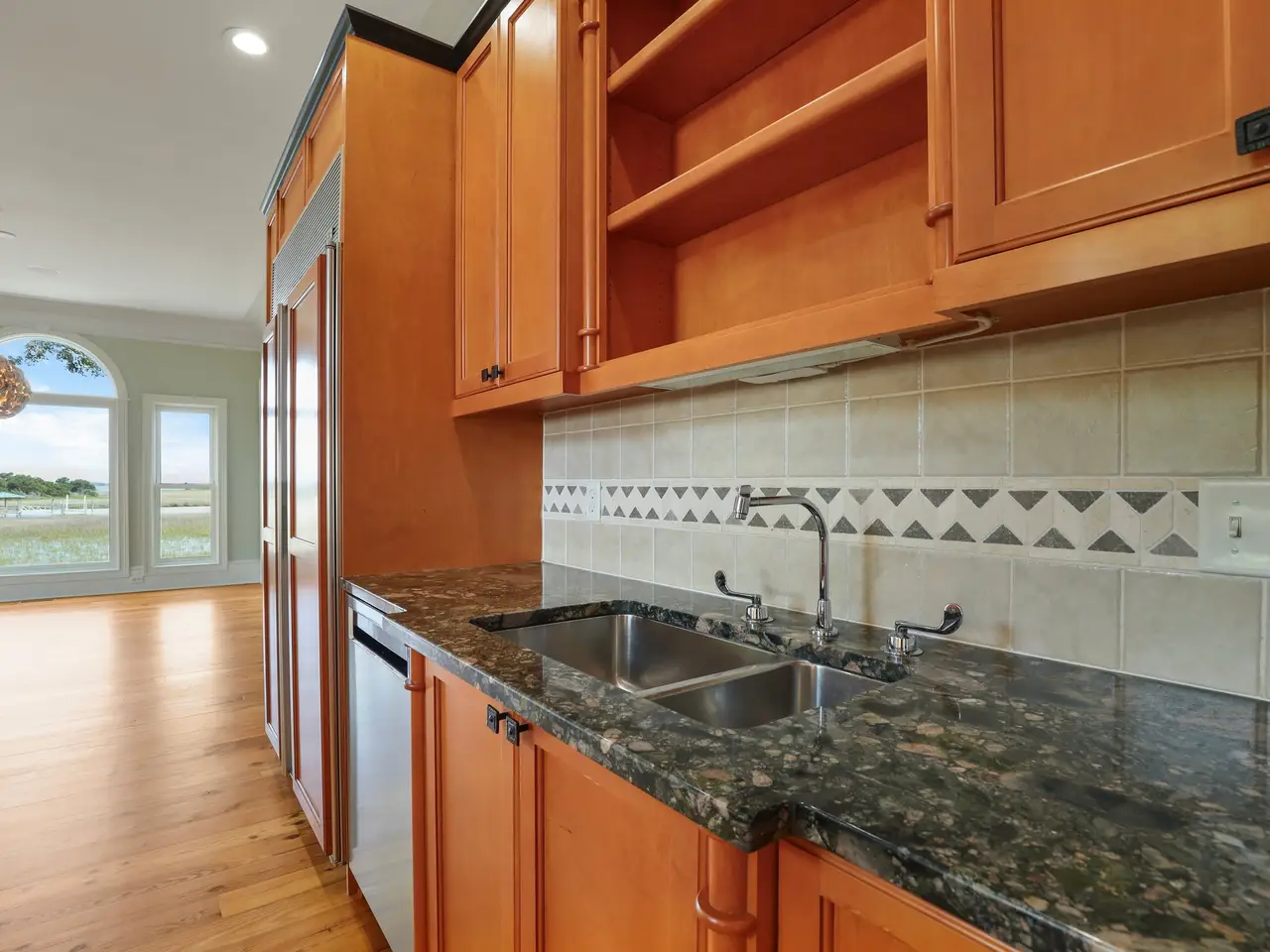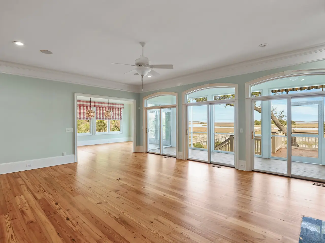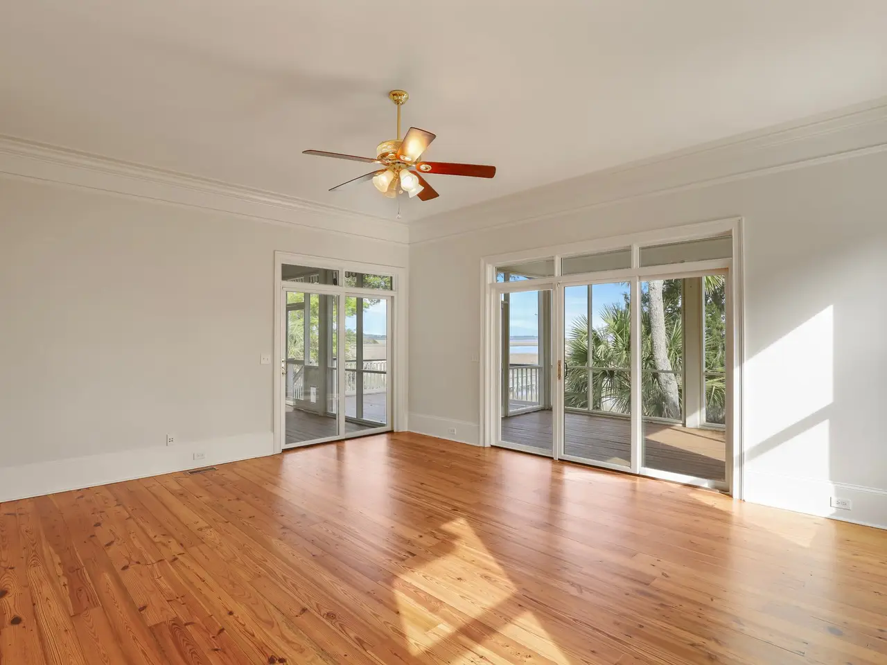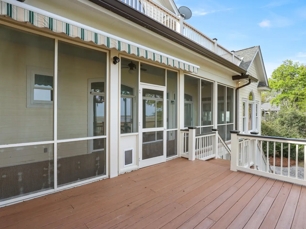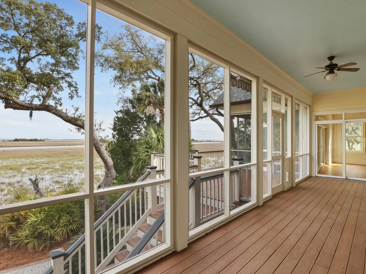 Located at 381 Fripp Point Road, this stunning Lowcountry home offers over 4,300 square feet of luxurious living space with breathtaking views of the marshes & deepwater of Coffin Creek & the Morgan River. Enjoy spectacular vistas of the southern tip of the Ace Basin, Edisto Island, and Morgan Island, making this a truly remarkable waterfront property. The home features a spacious and open layout, with the primary suite conveniently located on the first floor. The bedroom has a screened in porch and overlooks the stunning view. The primary bathroom offers a luxurious steam shower, a walk-in whirlpool tub, and elegant fixtures. The large gourmet kitchen boasts custom honey maple cabinets, granite countertops, Subzero and stainless steel appliances, as well as a large bar area in the great room, complete with a new ice maker, wine refrigerator, and sink perfect for entertaining. The great room includes a gas fireplace and offers a seamless connection from this room to the deck to the expansive outdoor scenery. Flow to the beautiful living room and formal dining room for extra entertainment areas. Upstairs, you'll find four freshly painted and newly carpeted bedrooms, 2 full baths and a spacious common area. The interior has been freshly painted and features newly refinished heart pine floors throughout. The primary bedroom has a screened in porch and overlooks the stunning view. This home is designed for convenience, with an elevator providing easy access from the garage to the top floor, full house generator, a central vacuum system, and two Rinnai hot water heaters. Other notable features include lovely wainscoating, crown molding, beveled glass windows and transoms, a laundry chute straight in to the laundry room from the upstairs bedrooms, an outdoor shower, and ample storage space, including a walk-in attic. The deepwater dock is ideal for boating and waterfront activities. Not included in the square footage is an expansive 2,500 + square feet of garage space that offers room for two cars and more, along with a massive amount of storage. This versatile space includes two more separate rooms with a full bath, perfect for a variety of uses such as storage, an exercise room, or a garden room. Limitless possibilities await. There's ample room for boats, kayaks, sporting equipment, or even game space. Additionally, a large room features wood flooring, a mini-split HVAC system, full bath, kitchenette, built-in bed, and a large desk ideal for a home office or guest suite. This exquisite property offers the perfect combination of luxury, comfort, privacy, quiet and unparalleled views in one of the most desirable locations in the Lowcountry. This material is based upon information, which we consider reliable, but because it has been supplied by third parties, we cannot represent that it is accurate or complete, and it should not be relied upon as such.