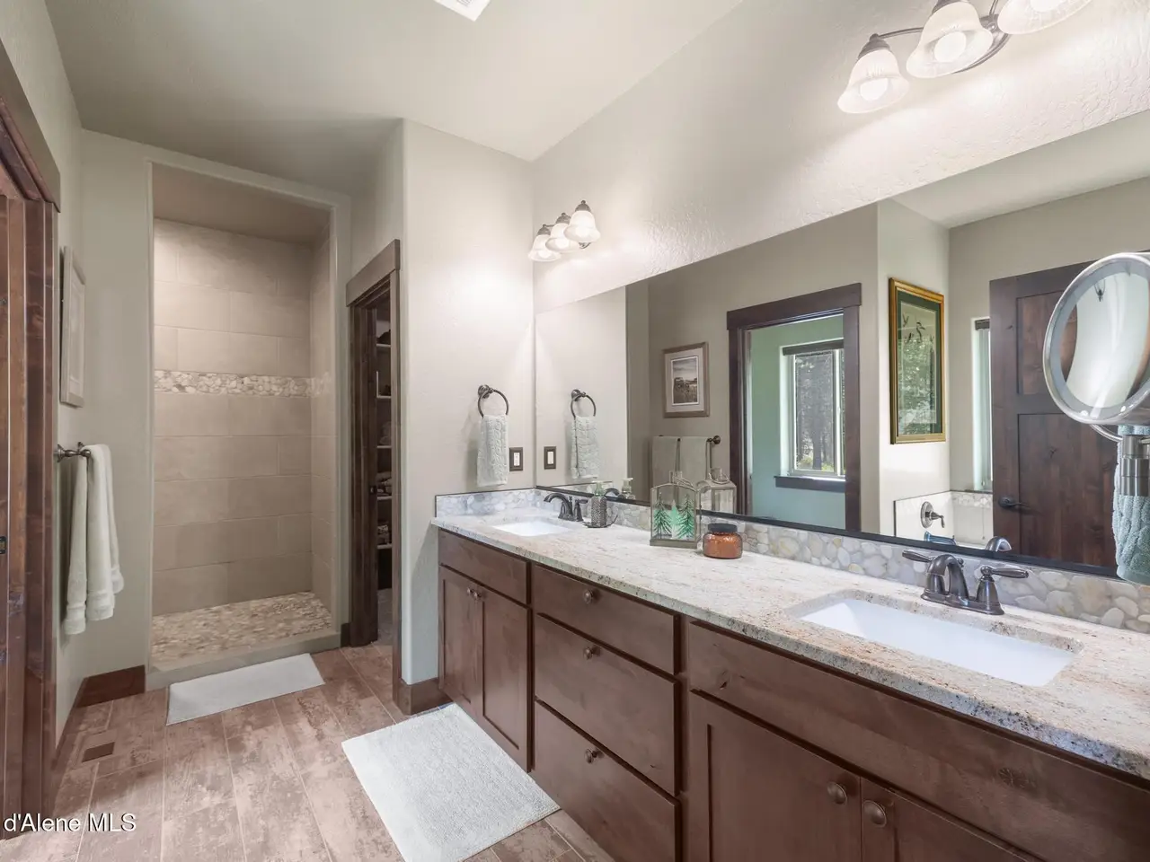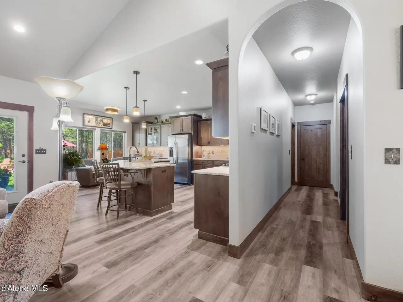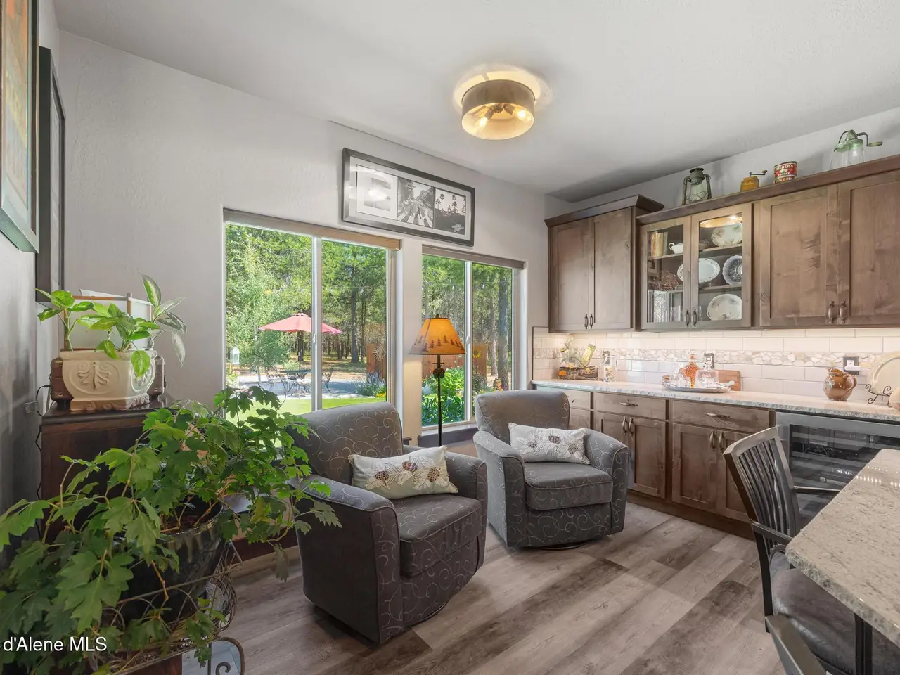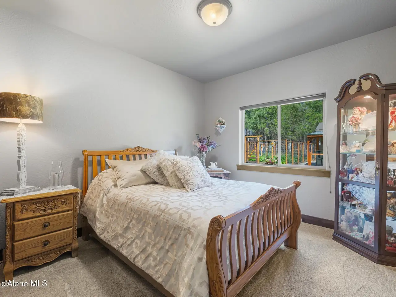 Welcome to Lone Mountain Estates, an exclusive community with five-acre lots, paved roads, and easy access to Coeur d'Alene, Rathdrum, and Spirit Lake. This 2,359 square foot single-level home with bonus room features an open concept, wood-burning fireplace, custom kitchen with stainless gas appliances, wine fridge, granite surfaces and a walk-in pantry. The luxurious master suite offers covered patio access to your hot tub, a spacious walk-in closet, separate vanities, soaking tub, and a beautiful walk-in shower. Additional highlights include vaulted ceilings, covered patio, a versatile bonus/media room and a mudroom/laundry room with sink. Finally, a large 24x40 shop with 12x40 leanto and 14' doors and RV parking complete this residence. The property grounds are manicured with outdoor living space, a luscious fenced in 20'x32' garden with irrigation, fire pit, storage shed and barbecue area, making it an entertainers dream. This exclusive location has a private drive offering solitude like no other in the neighborhood.
