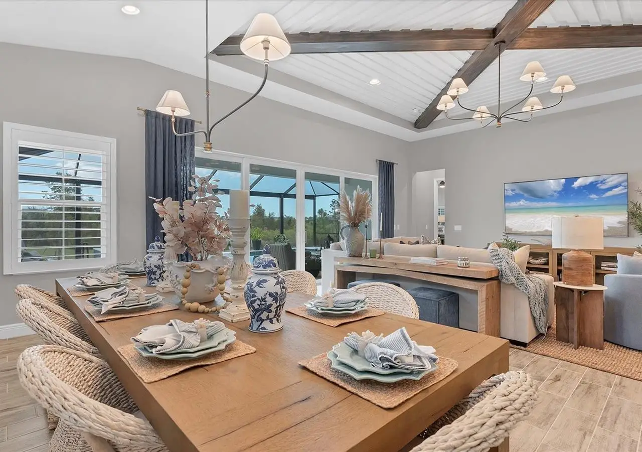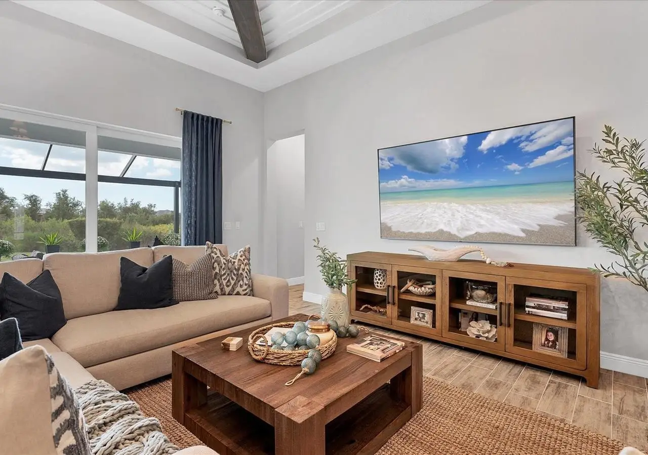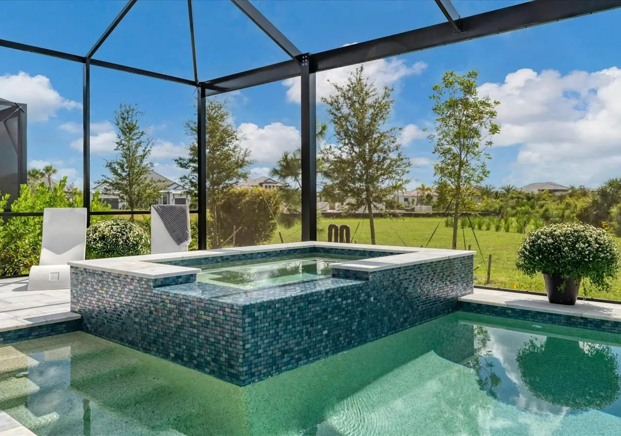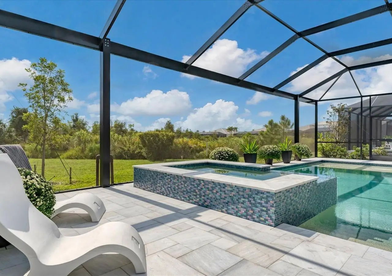 Experience luxury living within Wellen Park's Everly neighborhood, a private, amenity-rich, gated community designed for those who appreciate elegance, comfort, and connection. This exquisite residence embodies modern coastal living with over 3,600 square feet of refined interior space and an expansive outdoor entertaining retreat. Step outside to your custom-designed saltwater pool and spa, complete with a sun shelf and concrete sub-base deck - engineered to prevent settling and shifting of the main pool deck while providing easier long-term maintenance. The travertine tile lanai, generous covered spaces, and natural preserve backdrop create a peaceful and private oasis ideal for entertaining or relaxation. Inside, a soft neutral palette and designer-selected finishes create an atmosphere of warmth and sophistication. The gourmet kitchen is a chef's dream, featuring Monogram appliances, gas cooking, two spacious pantries, and a custom layout perfect for hosting and gathering. A dedicated den or office offers flexible space for working remotely or enjoying quiet retreat time. The primary suite serves as a luxurious sanctuary, with a soaking tub, rain shower, and elegant design touches throughout. Three additional bedrooms and baths provide comfort and privacy for family and guests alike. The second floor expands the home's versatility - offering a bedroom, full bath, and an open area ideal for a media room, gaming space, or children's retreat. Car enthusiasts and golf lovers will appreciate the three-car garage configuration, with a front-facing two-car garage and a side-entry single-car garage - perfect for a golf cart or extra storage. Residents of Everly enjoy access to premier community amenities, including a resort-style pool and spa, state-of-the-art fitness center, pickleball courts, and an elegant clubhouse - all designed to complement the vibrant, active lifestyle that defines Wellen Park. Conveniently located and just a golf cart ride to downtown Wellen Park, near local beaches, Venice shopping and dining, Atlanta Braves Spring Training Facility, I-75, and area airports. Every inch of this home showcases impeccable craftsmanship and bespoke design, creating a residence that is as breathtaking as it is functional. Designed for both beauty and function, the home features impact-rated windows for weather protection, energy efficiency, and peace of mind. Every detail from the coastal-inspired lighting to the thoughtful architectural flow - reflects a level of craftsmanship and design unique to Everly living. Whether entertaining by the pool, relaxing in the spa, or gathering in the heart of the home, this property offers an elevated coastal lifestyle in one of Wellen Park's most prestigious neighborhoods. No waiting to build this winter- this extraordinary home is complete and ready to welcome you home.