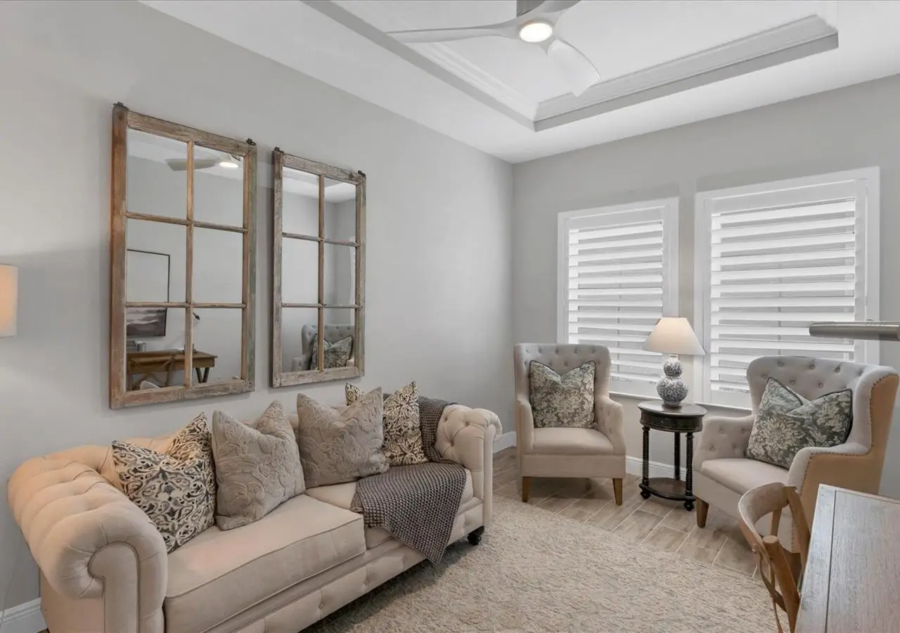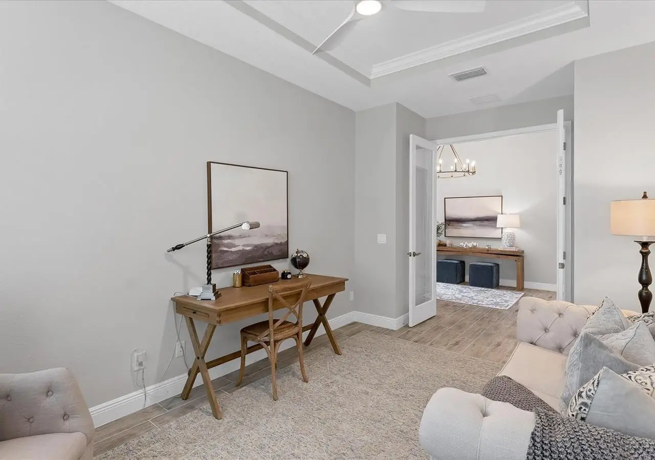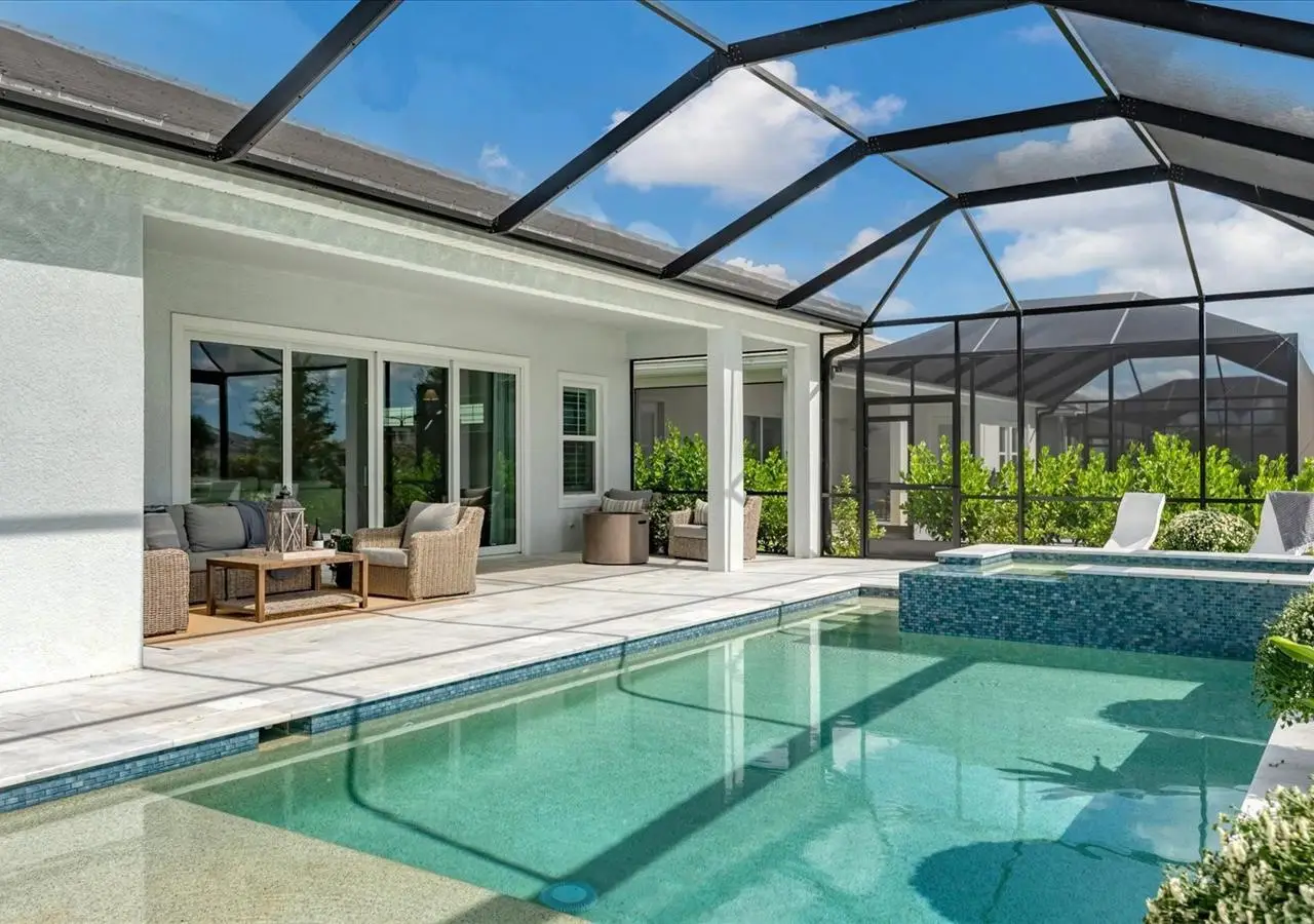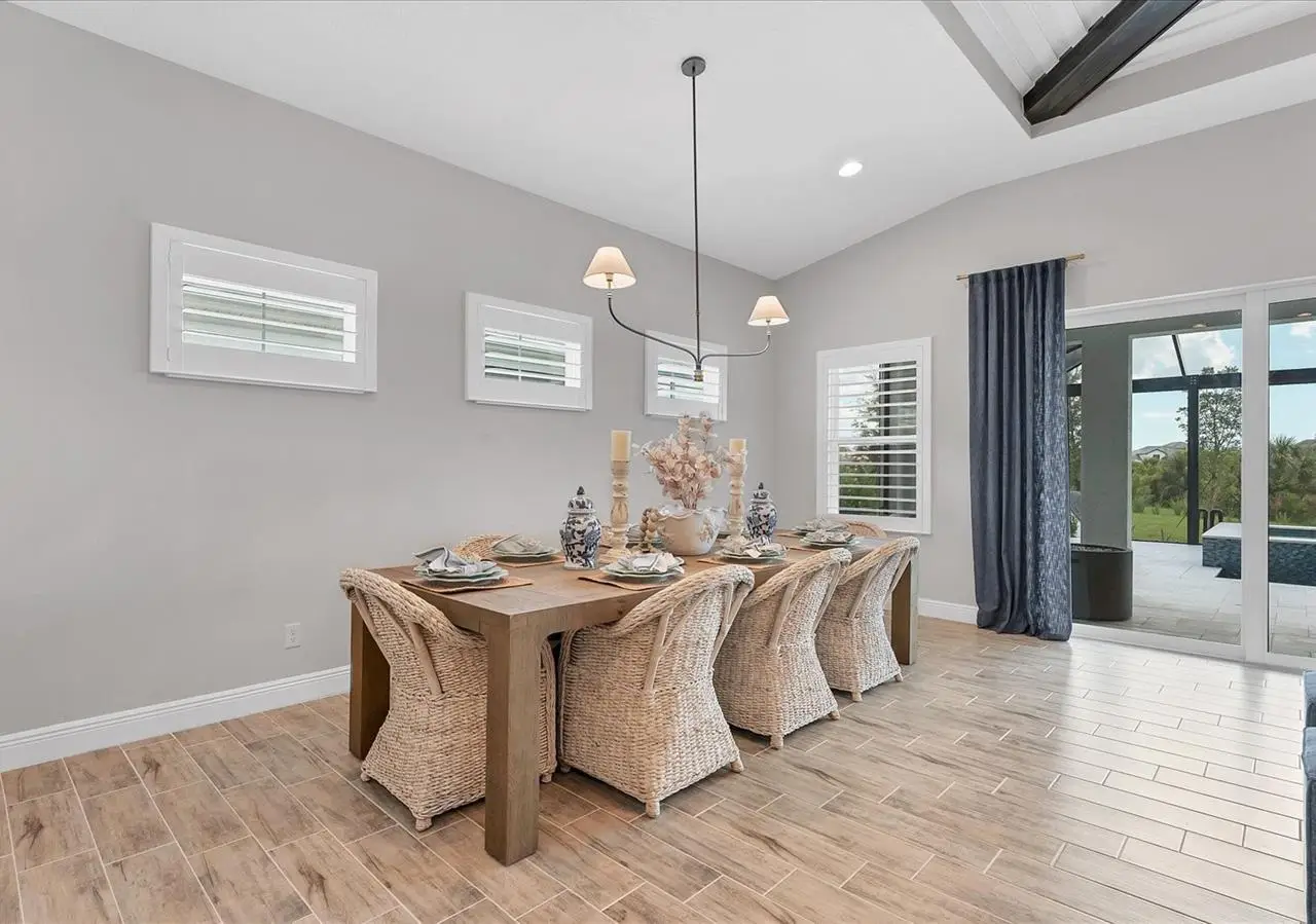 Experience luxury living within Wellen Park's Everly neighborhood, a private, amenity-rich, gated community designed for those who appreciate elegance, comfort, and connection. This exquisite residence embodies modern coastal living with over 3,600 square feet of refined interior space and an expansive outdoor entertaining retreat. Step outside to your custom-designed saltwater pool and spa, complete with a sun shelf and concrete sub-base deck - engineered to prevent settling and shifting of the main pool deck while providing easier long-term maintenance. The travertine tile lanai, generous covered spaces, and natural preserve backdrop create a peaceful and private oasis ideal for entertaining or relaxation. Inside, a soft neutral palette and designer-selected finishes create an atmosphere of warmth and sophistication. The gourmet kitchen is a chef's dream, featuring Monogram appliances, gas cooking, two spacious pantries, and a custom layout perfect for hosting and gathering. A dedicated den or office offers flexible space for working remotely or enjoying quiet retreat time. The primary suite serves as a luxurious sanctuary, with a soaking tub, rain shower, and elegant design touches throughout. Three additional bedrooms and baths provide comfort and privacy for family and guests alike. The second floor expands the home's versatility - offering a bedroom, full bath, and an open area ideal for a media room, gaming space, or children's retreat. Car enthusiasts and golf lovers will appreciate the three-car garage configuration, with a front-facing two-car garage and a side-entry single-car garage - perfect for a golf cart or extra storage. Residents of Everly enjoy access to premier community amenities, including a resort-style pool and spa, state-of-the-art fitness center, pickleball courts, and an elegant clubhouse - all designed to complement the vibrant, active lifestyle that defines Wellen Park. Conveniently located and just a golf cart ride to downtown Wellen Park, near local beaches, Venice shopping and dining, Atlanta Braves Spring Training Facility, I-75, and area airports. Every inch of this home showcases impeccable craftsmanship and bespoke design, creating a residence that is as breathtaking as it is functional. Designed for both beauty and function, the home features impact-rated windows for weather protection, energy efficiency, and peace of mind. Every detail from the coastal-inspired lighting to the thoughtful architectural flow - reflects a level of craftsmanship and design unique to Everly living. Whether entertaining by the pool, relaxing in the spa, or gathering in the heart of the home, this property offers an elevated coastal lifestyle in one of Wellen Park's most prestigious neighborhoods. No waiting to build this winter- this extraordinary home is complete and ready to welcome you home.