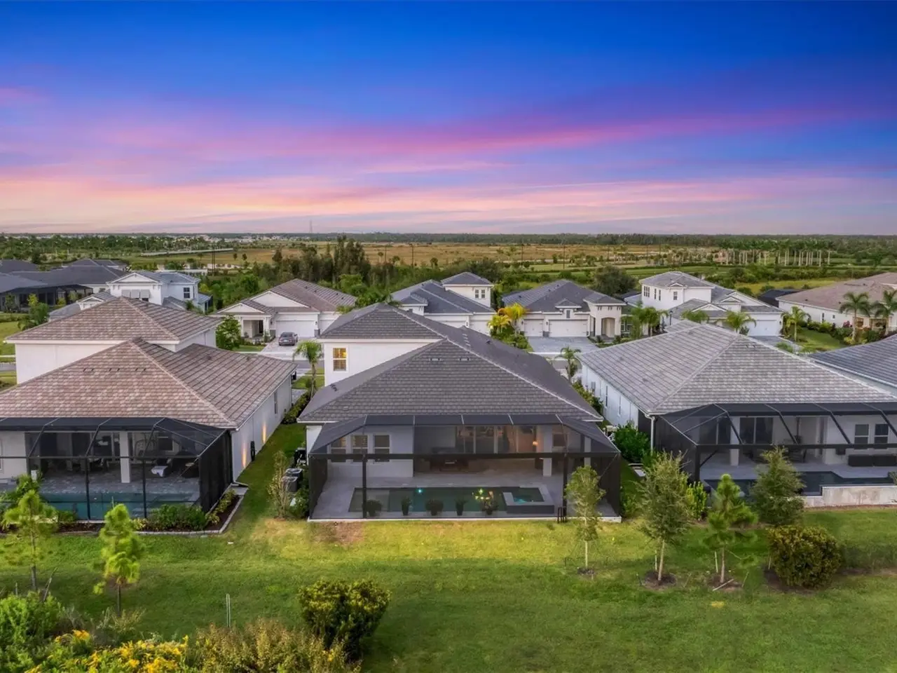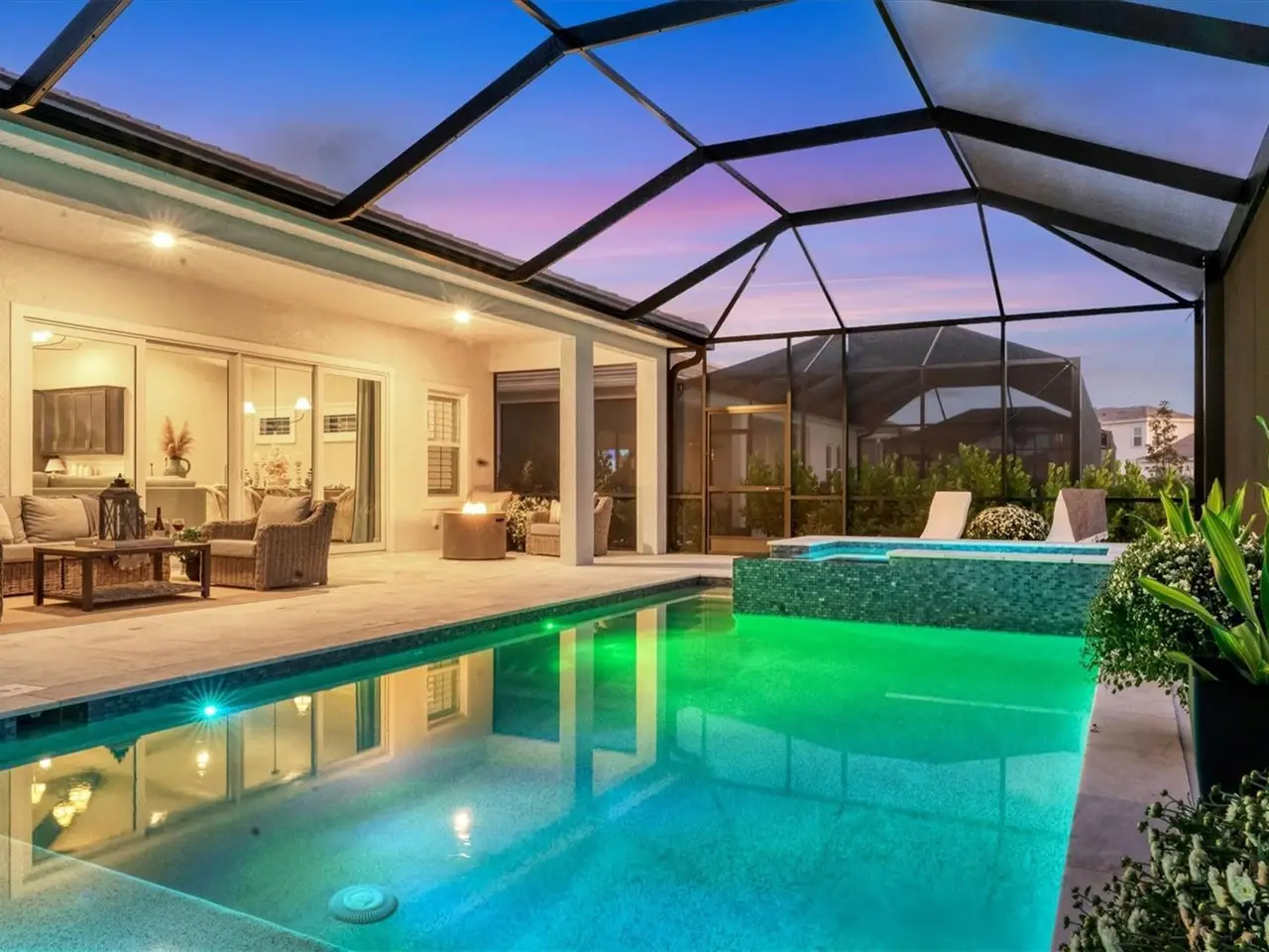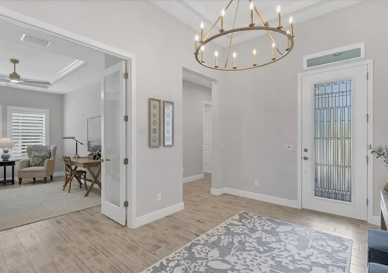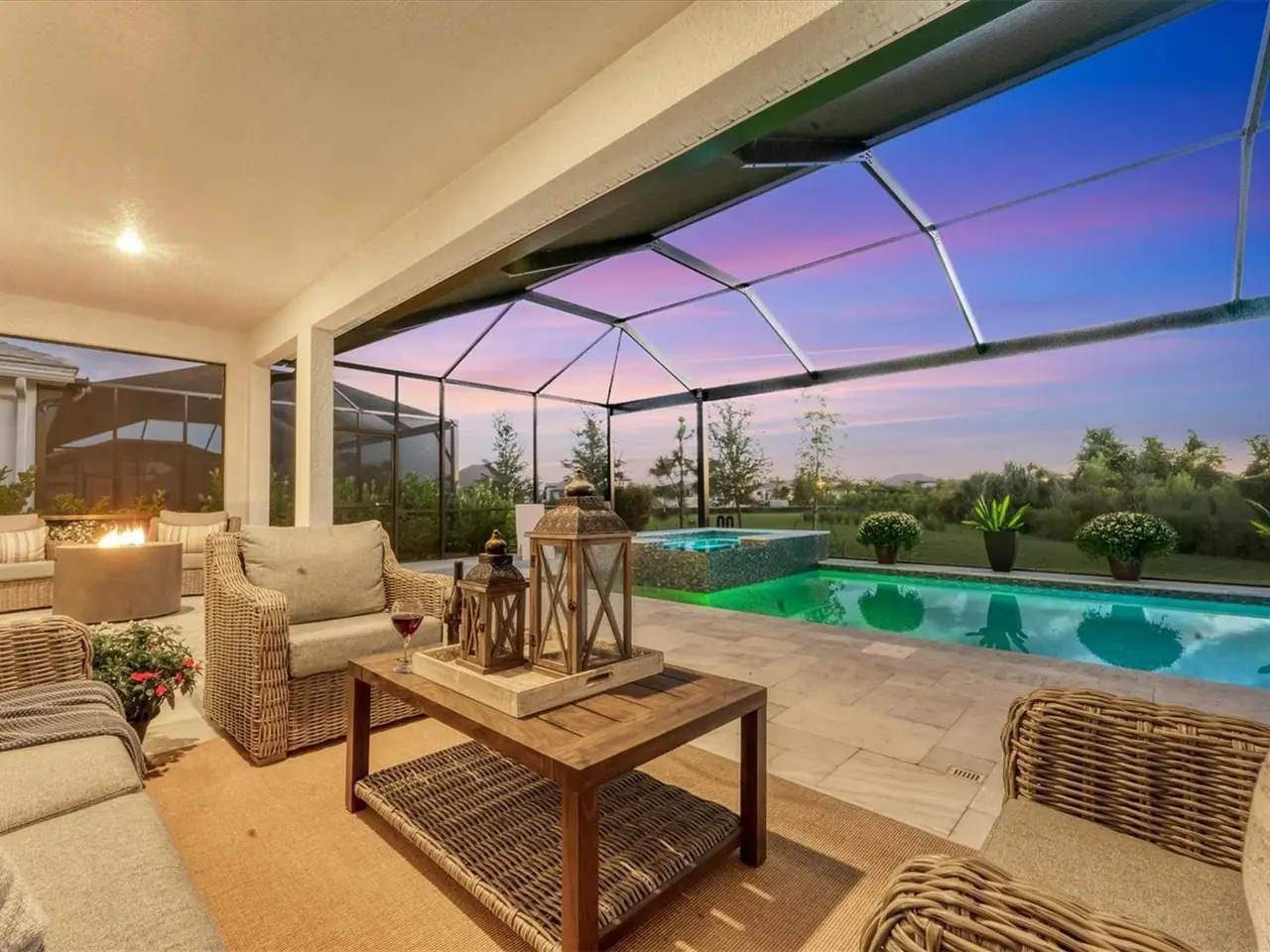 Experience luxury living within Wellen Park's Everly neighborhood, a private, amenity-rich, gated community designed for those who appreciate elegance, comfort, and connection. This exquisite residence embodies modern coastal living with over 3,600 square feet of refined interior space and an expansive outdoor entertaining retreat. Step outside to your custom-designed saltwater pool and spa, complete with a sun shelf and concrete sub-base deck - engineered to prevent settling and shifting of the main pool deck while providing easier long-term maintenance. The travertine tile lanai, generous covered spaces, and natural preserve backdrop create a peaceful and private oasis ideal for entertaining or relaxation. Inside, a soft neutral palette and designer-selected finishes create an atmosphere of warmth and sophistication. The gourmet kitchen is a chef's dream, featuring Monogram appliances, gas cooking, two spacious pantries, and a custom layout perfect for hosting and gathering. A dedicated den or office offers flexible space for working remotely or enjoying quiet retreat time. The primary suite serves as a luxurious sanctuary, with a soaking tub, rain shower, and elegant design touches throughout. Three additional bedrooms and baths provide comfort and privacy for family and guests alike. The second floor expands the home's versatility - offering a bedroom, full bath, and an open area ideal for a media room, gaming space, or children's retreat. Car enthusiasts and golf lovers will appreciate the three-car garage configuration, with a front-facing two-car garage and a side-entry single-car garage - perfect for a golf cart or extra storage. Residents of Everly enjoy access to premier community amenities, including a resort-style pool and spa, state-of-the-art fitness center, pickleball courts, and an elegant clubhouse - all designed to complement the vibrant, active lifestyle that defines Wellen Park. Conveniently located and just a golf cart ride to downtown Wellen Park, near local beaches, Venice shopping and dining, Atlanta Braves Spring Training Facility, I-75, and area airports. Every inch of this home showcases impeccable craftsmanship and bespoke design, creating a residence that is as breathtaking as it is functional. Designed for both beauty and function, the home features impact-rated windows for weather protection, energy efficiency, and peace of mind. Every detail from the coastal-inspired lighting to the thoughtful architectural flow - reflects a level of craftsmanship and design unique to Everly living. Whether entertaining by the pool, relaxing in the spa, or gathering in the heart of the home, this property offers an elevated coastal lifestyle in one of Wellen Park's most prestigious neighborhoods. No waiting to build this winter- this extraordinary home is complete and ready to welcome you home.