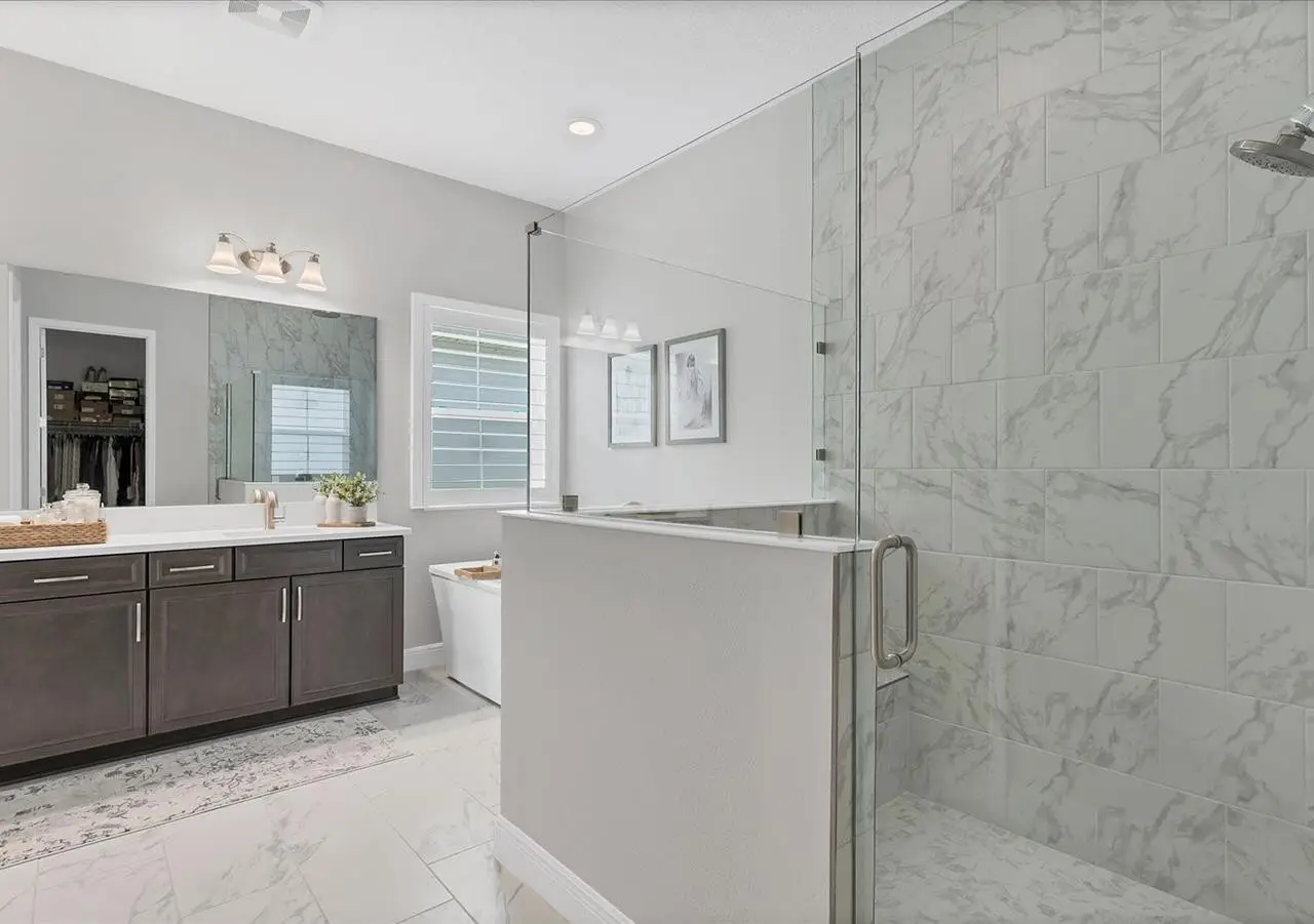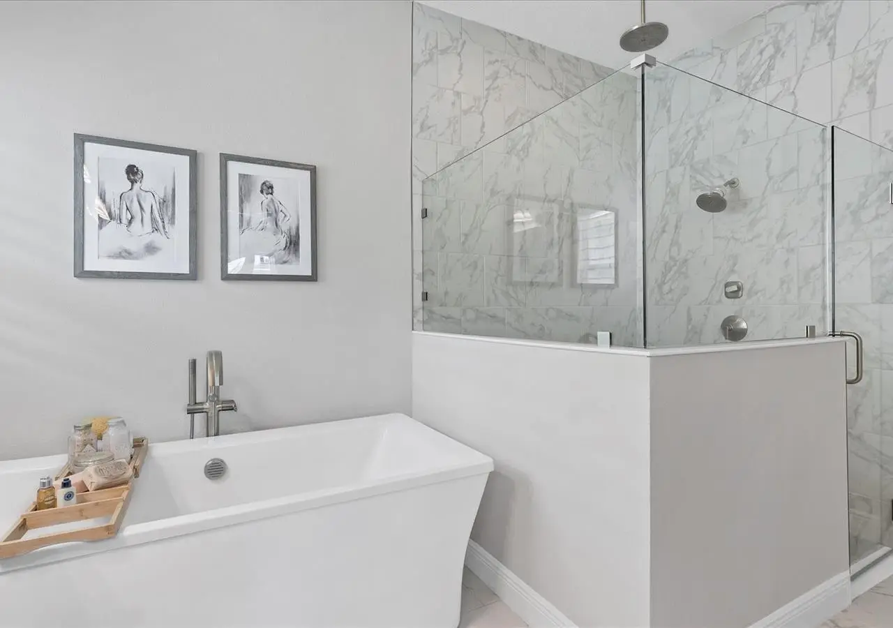 Primary suite with soaking tub and rain shower