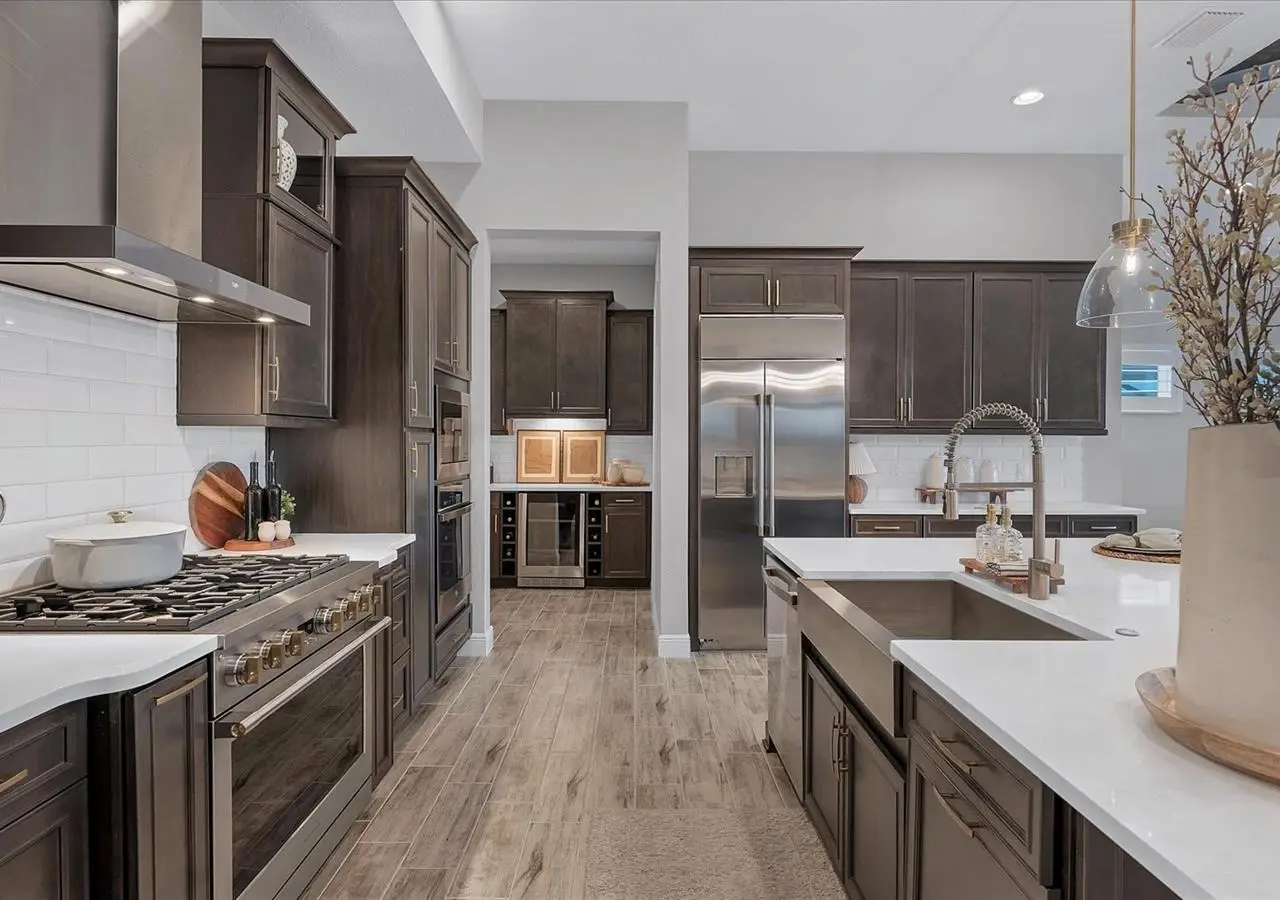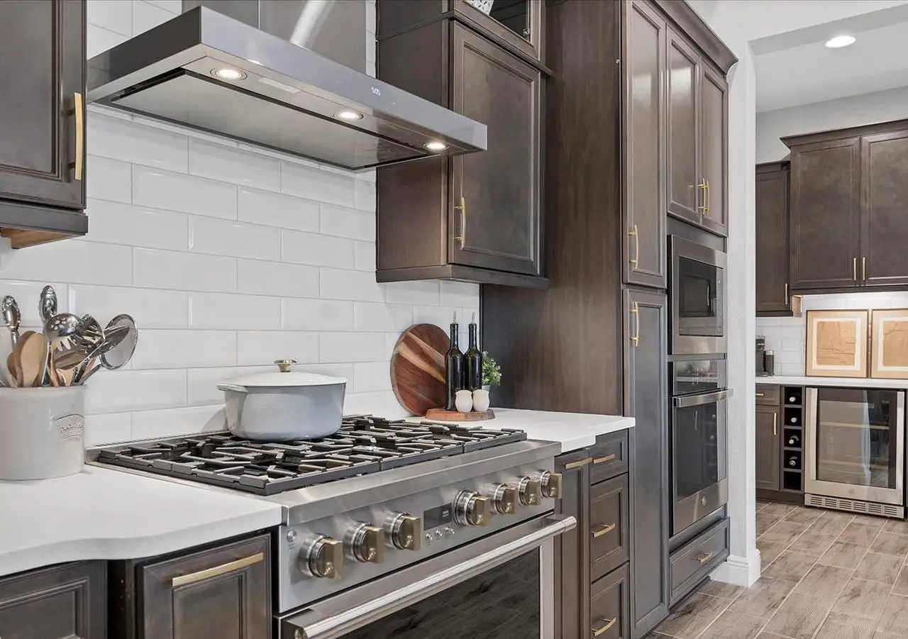 Gourmet kitchen with Monogram appliances and gas cooking