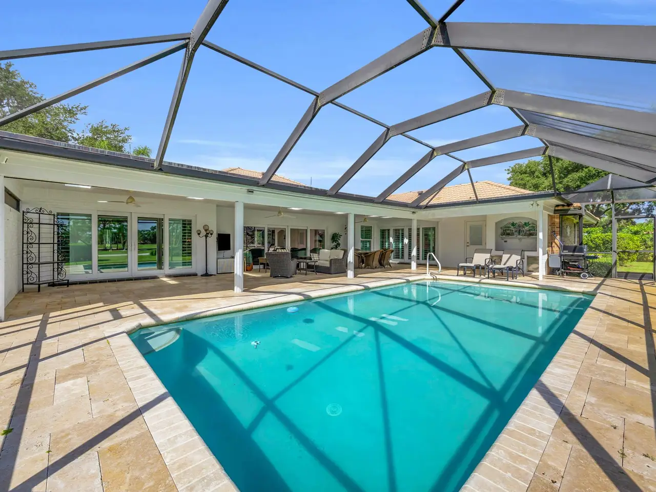 Spacious 3 bed, 3 full bath estate style home with a large family room, private pool and golf course view from your backyard in Turtle Creek Golf Club Community. This property includes a beautifully updated kitchen, travertine and porcelain tile floors, a large screened lanai with storm impact motorized screens, impact windows and doors, and a whole house generator too. Schedule your private showing today!