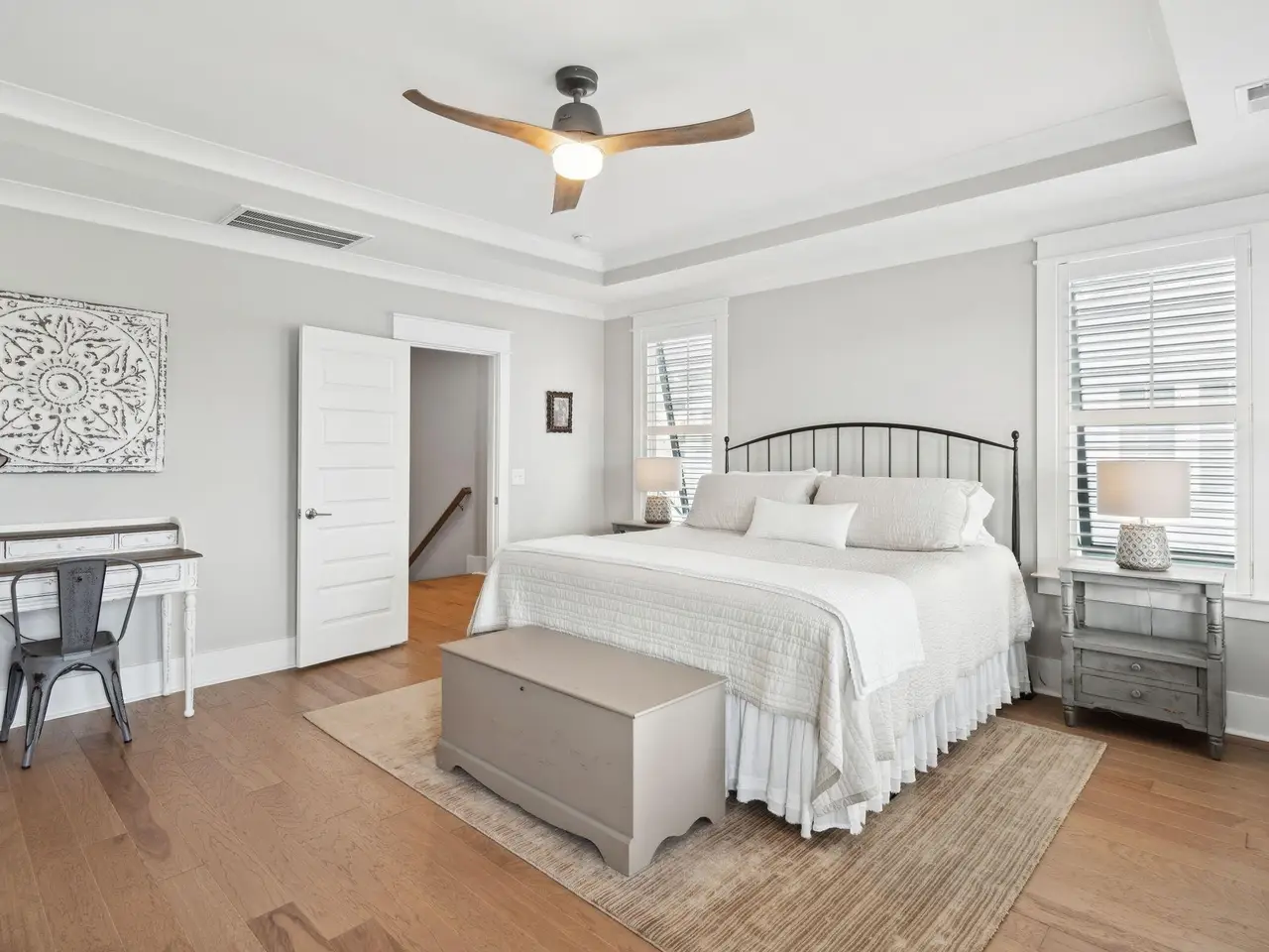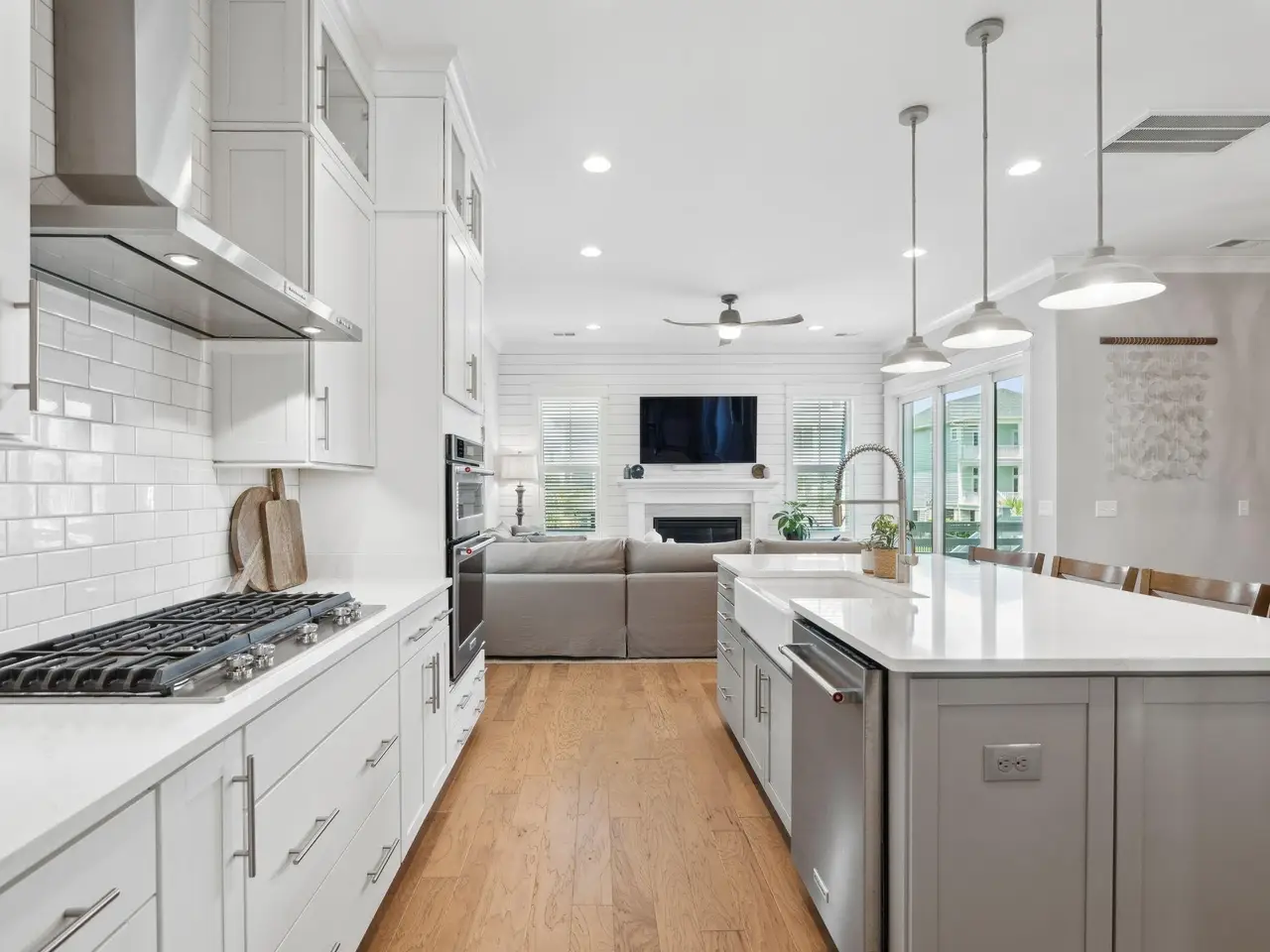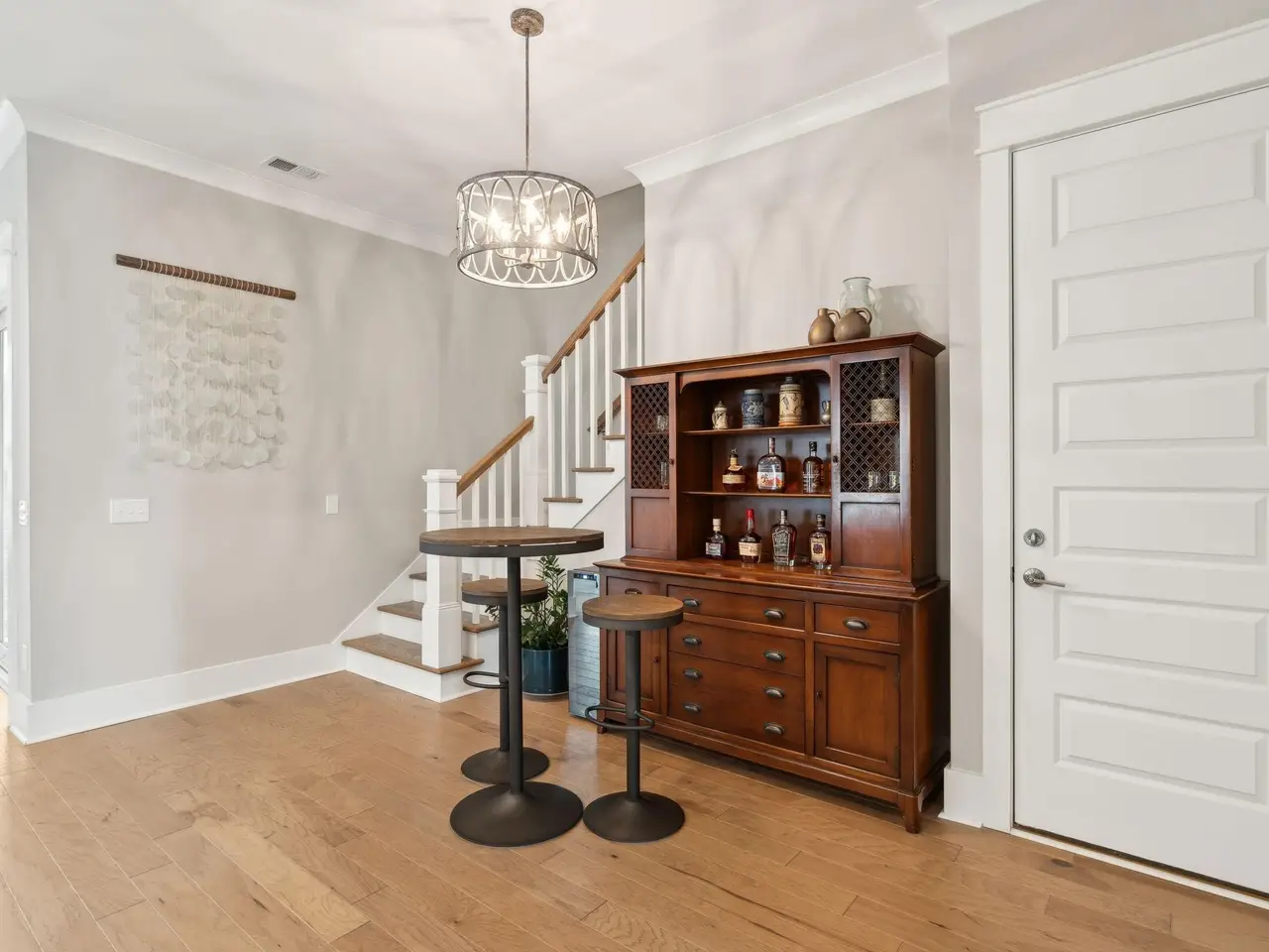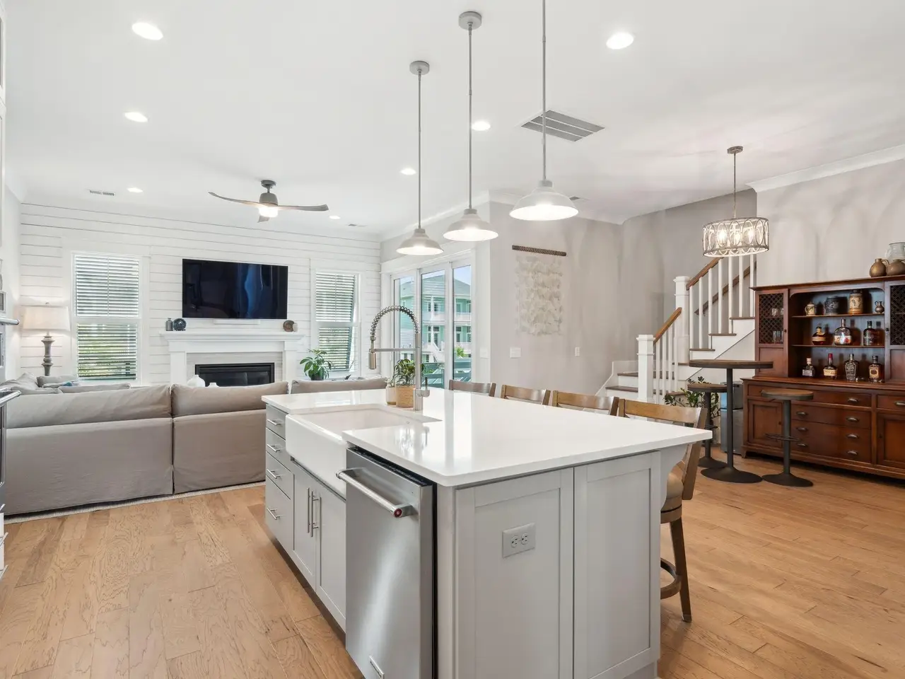 Beautifully upgraded John Wieland-built drive-under home in the coveted Riverview section of Dunes West, showcasing scenic Wando River views and resort-style living! This elevated Marigold floor plan features 4 bedrooms, 3 full baths, and an open-concept design perfect for everyday living and entertaining. The gourmet kitchen includes quartz countertops, a cast iron farmhouse sink, Shaker-style cabinets with glass uppers, Jenn Air refrigerator, and Kitchen Aid oven, microwave, and gas cooktop. The spacious great room with a gas fireplace opens to a screened porch via oversized triple sliding glass doors, overlooking the fully fenced backyard. A main-floor guest suite and formal dining room offer privacy and flexibility.Upstairs, the luxurious owner's suite boasts a spa-like bath with walk-in shower, high-end finishes, and a private balcony. Two additional bedrooms, a full bath, and a loft provide ample space for guests or home office needs. Thoughtful upgrades throughout include hardwood floors, porcelain tile in baths, indoor plantation shutters, custom lighting and fans, outdoor hurricane shutters, epoxied garage floor, landscape lighting, and rain-sensor irrigation. Walk to the neighborhood dock, pavilion, playground, and more. Optional Dunes West Golf & River Club membership offers golf, tennis, pools, fitness center, and a full-service clubhouse.