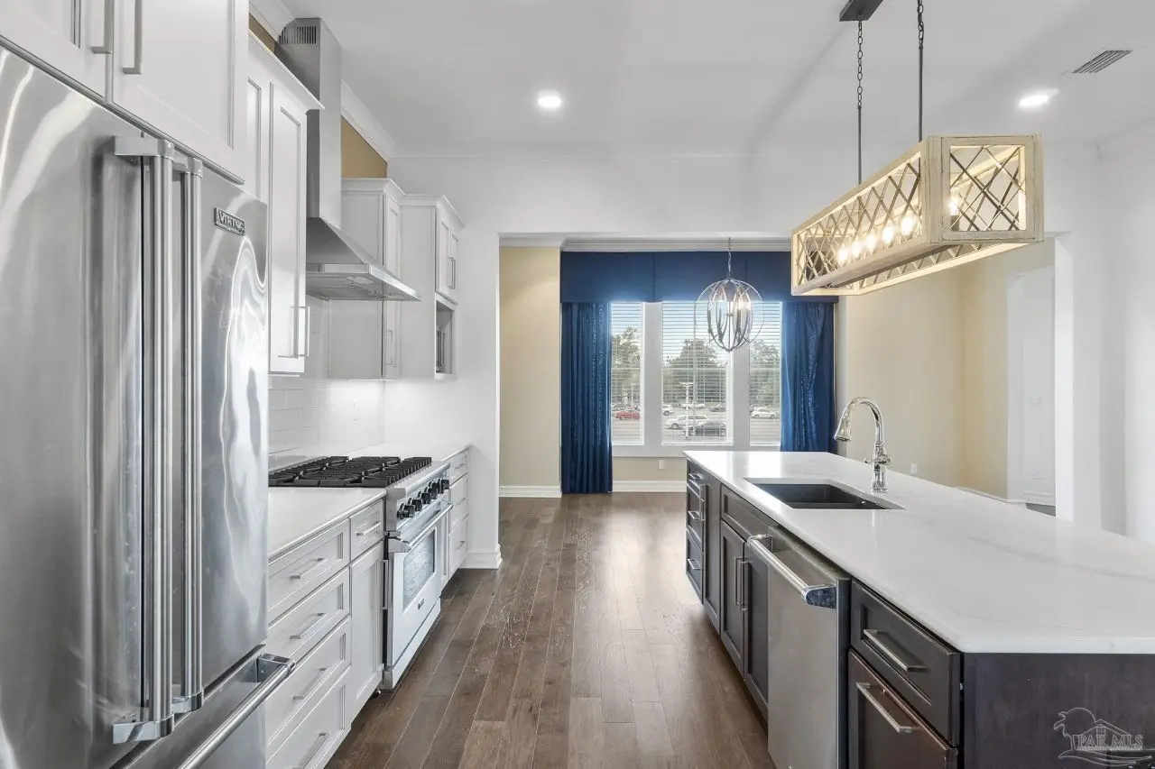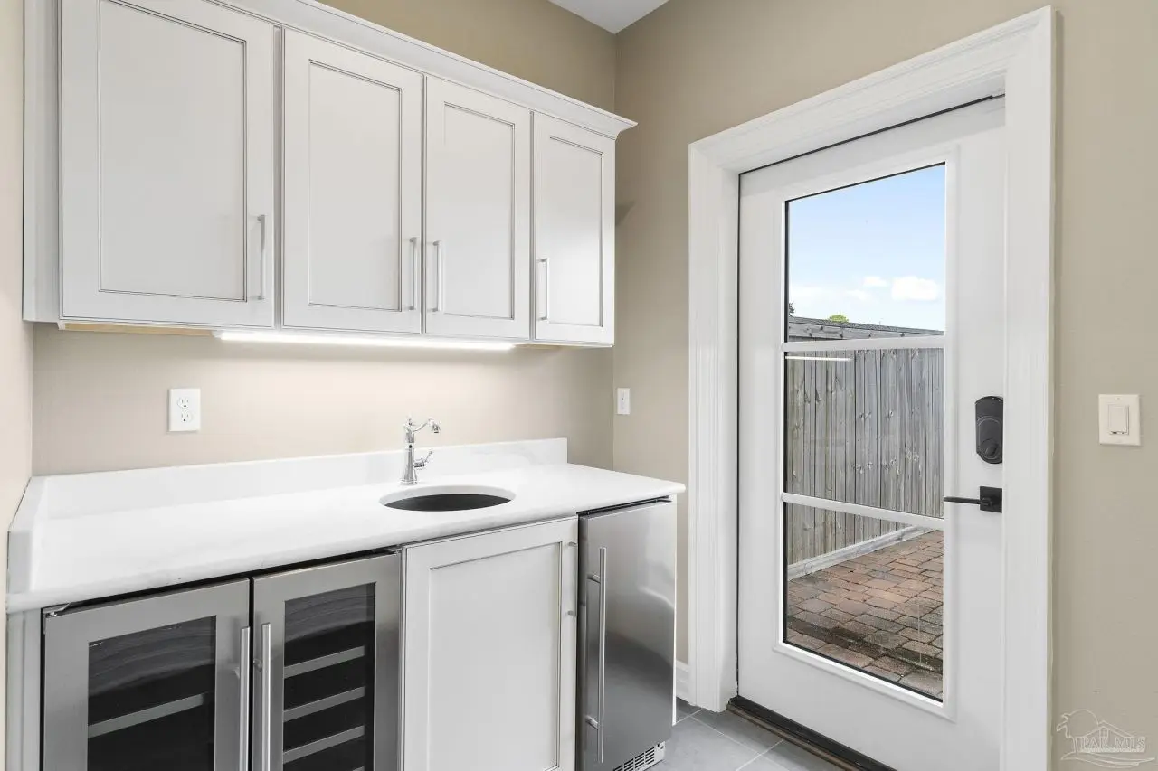 Located in the heart of downtown Pensacola, this beautifully updated three-story residence offers walkable access to the city's best dining, boutiques, bars, and local markets. Designed for both comfort and convenience, the home showcases refined finishes and intentional design. The first floor opens to a spacious living area that connects to a large enclosed patio, perfect for entertaining or relaxing year-round, with a wet bar that makes indoor-outdoor hosting effortless. On the second floor, the kitchen serves as the centerpiece of the home with a large island that doubles as a breakfast bar. It also includes a gas range and a versatile wine or coffee bar area. Custom shelving in the walk-in pantry provides exceptional storage, while a half bath, dining area, and an additional living space with access to two balconies bring both function and charm to this level. The top floor hosts the primary suite, complete with a custom walk-in closet and a light-filled bathroom featuring dual separated vanities and abundant counter space. Two additional bedrooms on the same level are spacious, each with custom closets and their own access to full baths. The home also offers an elevator, custom window treatments, and decorative lighting throughout, ensuring both comfort and style. A large two-car garage with extra storage adds practicality to this move-in-ready home. Blending modern design with an unbeatable location, 316 W Romana St embodies the best of downtown Pensacola living.