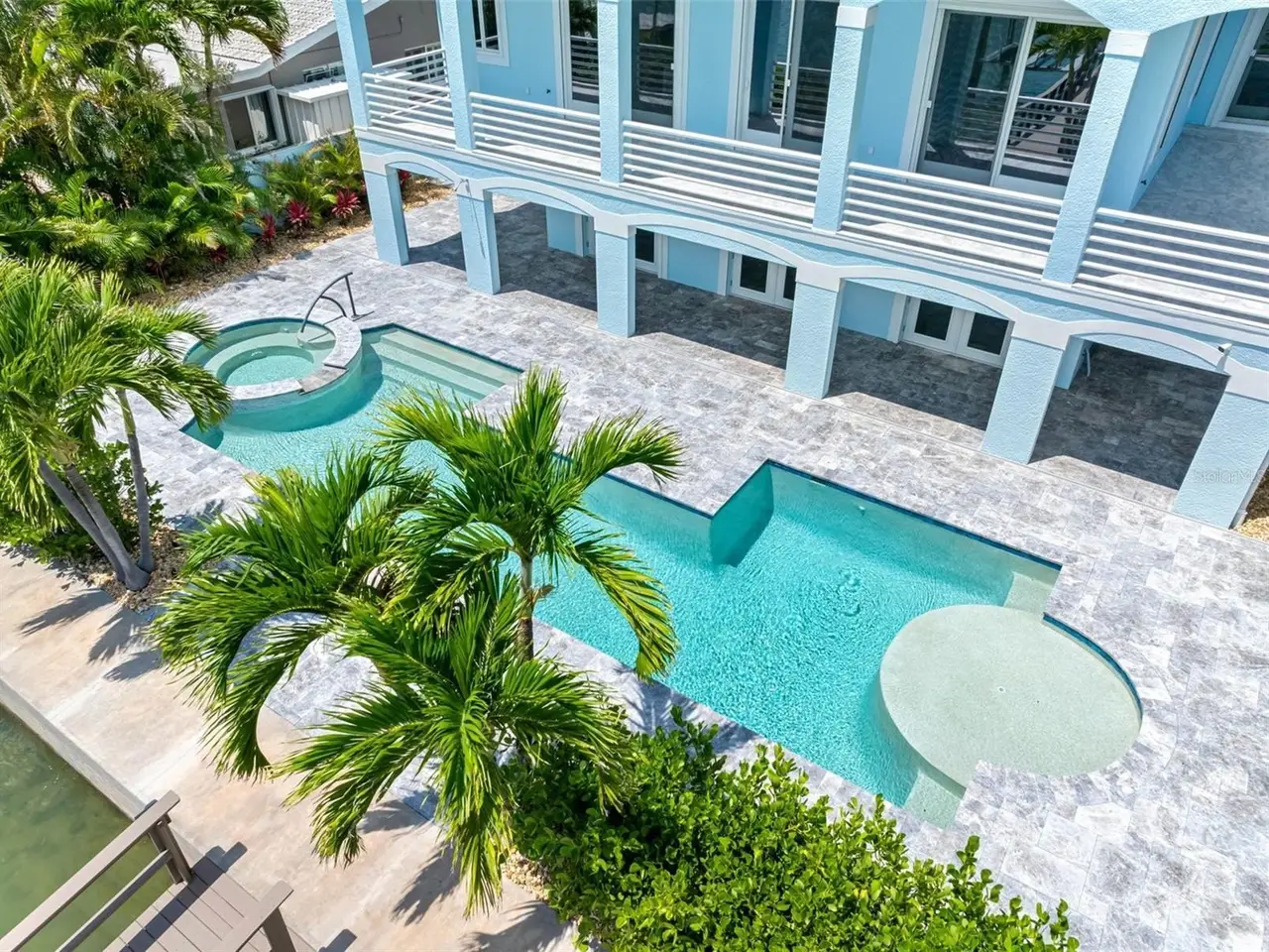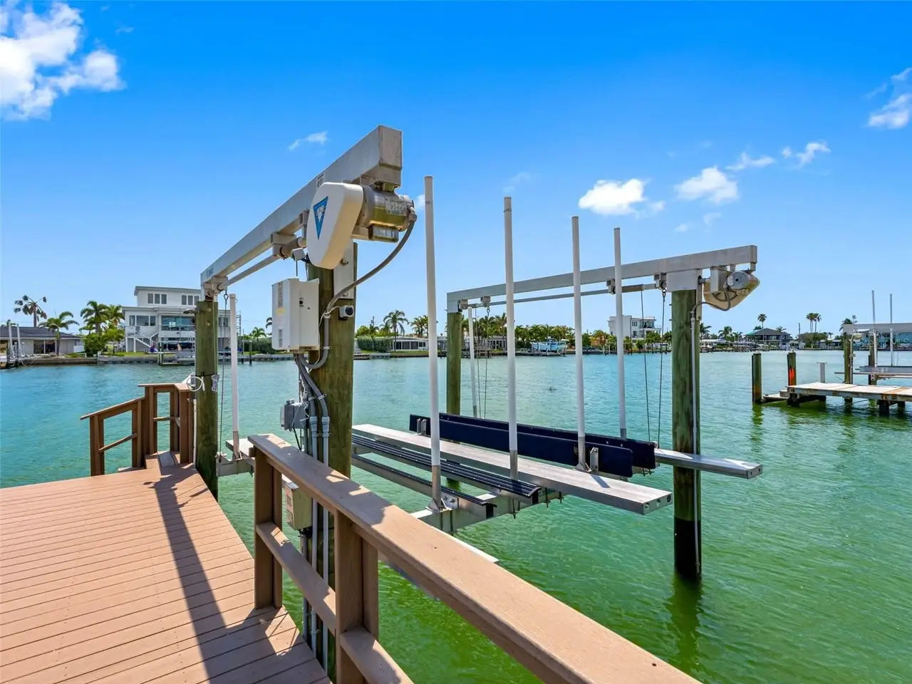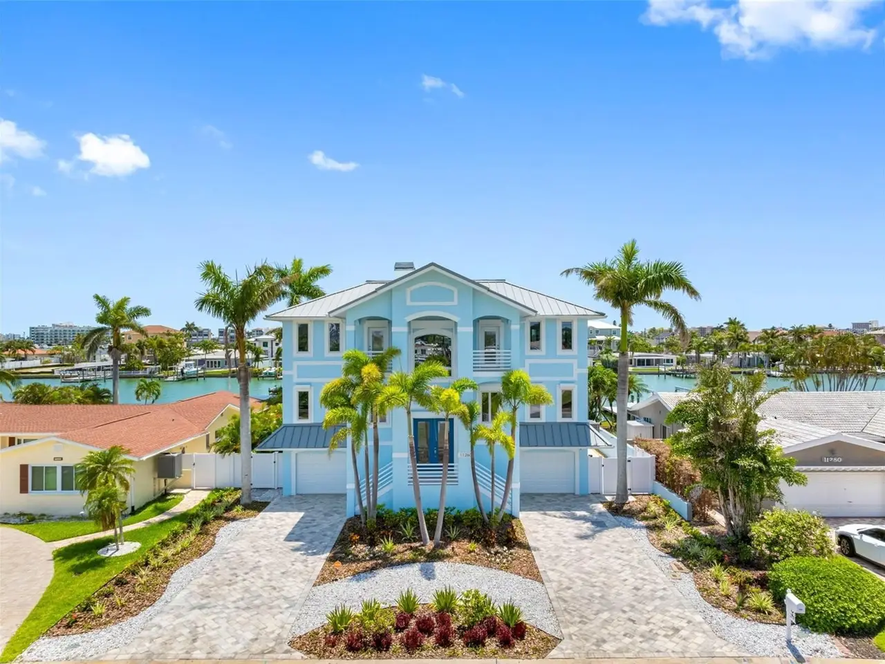 Exceptional Waterfront Retreat with Every Upgrade Imaginable — Treasure Island. This is one you must see in person to fully appreciate. From the moment you arrive, you’ll sense the care and craftsmanship that have gone into every inch of this extraordinary waterfront home. Rarely does a property come to market with such meticulous attention to detail—inside and out. This home gleams and shines everywhere you look. Impeccably landscaped grounds surround a lush backyard oasis anchored by an oversized, covered lanai, newly resurfaced pool, and heated spa. Travertine pavers guide you to your private composite dock, equipped with a 10,000-pound boat lift that holds two jet skis plus a second jet ski lift. With no fixed bridges between you and the Gulf of Mexico, your water-bound adventures—from offshore fishing to dock-and-dine outings—are just minutes away. Facing west, the home offers front-row seats to breathtaking sunsets each evening—enjoy them from your dock, or from one of two expansive, covered balconies. Step inside to find panoramic water views that immediately draw the eye. The open-concept main level is ideal for entertaining, featuring a massive chef’s kitchen that flows seamlessly into the light-filled living and dining areas. Two bedrooms and a spacious laundry room complete this level. Upstairs, the private primary suite is your personal sanctuary, complete with two walk-in closets, a spa-like ensuite bath, and access to a wide balcony overlooking the Intracoastal—perfect for peaceful mornings with coffee in hand. Two additional oversized bedrooms, each with their own ensuite baths and walk-in closets, round out the upper level. Additional highlights include: a brand new metal roof, hurricane-impact windows and storm shutters, a whole-house sprinkler system, an elevator servicing all three floors, Hardie board interior construction on the lower level, three-car garage plus a bonus room overlooking the lanai -- just for starters. This home truly has more square footage and amenities than any comparable property on the beaches. Located in the heart of friendly, vibrant Treasure Island—famous for its wide sandy beaches, beach festivals, local seafood restaurants, and laid-back charm—you’ll quickly see why island life here is something special. Kick off your shoes. You’ve found your paradise.