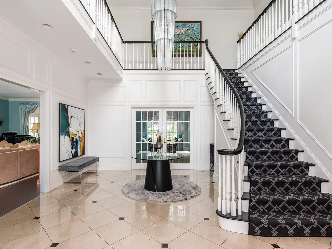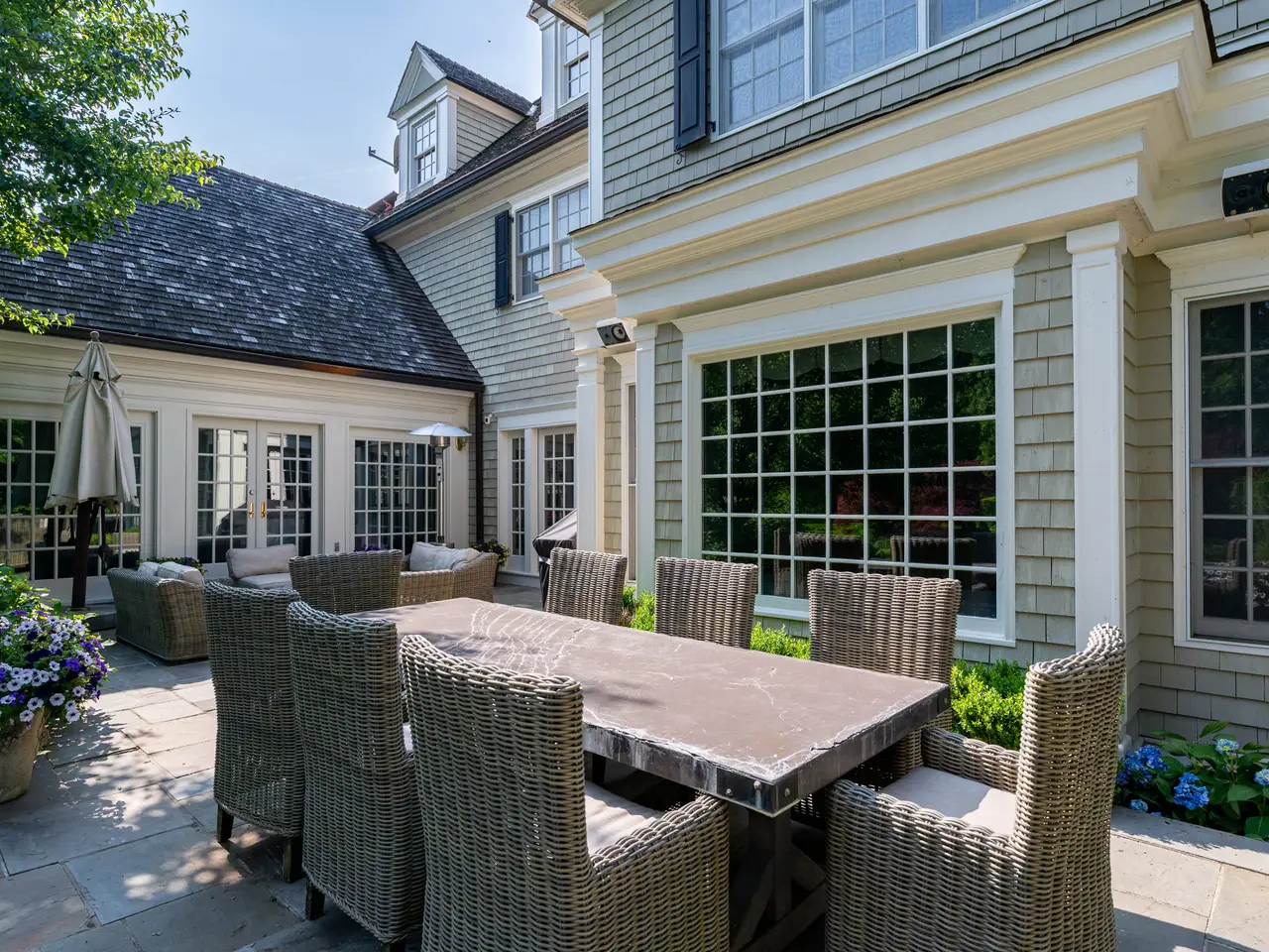 The pinnacle of Modern Colonial elegance in Pound Ridge: timeless classicism elevated to a grand scale, featuring spacious rooms, prestige amenities and luxury finishes crafted for contemporary comfort. Set on 3.7 acres on exclusive Great Hill Farms Road, its minutes from both Bedford Village and Stamford and an hour to Manhattan. Sunlight streams through the double-height entry, illuminating marble floors, custom paneling, and striking contemporary chandelier. The formal living room with wood-burning fireplace, exquisite millwork and French doors to a terrace opens to a sunroom wrapped in windows. A large dinging room also offers French doors to the private patio. The chef's kitchen dazzles with dramatic lighting, custom banquette and top-tier Wolf range and Thermador refrigerator, which is open to the family room with a beautiful stone fireplace. Upstairs, the luxurious primary suite boasts twin sets of French doors leading to a balcony, two spa-quality baths, and dual custom dressing rooms. Two additional ensuite bedrooms and two other bedrooms that share a bath complete the upper level The lower level offers everything for full-on recreation: a glass-enclosed gym, cinema room, family room, guest suite, wine cellar and full bar. Outside is a resort style escape offering spectacular landscaping, inviting pool and charming pool house and bocce court offering relaxation and recreation. This Pound Ridge paradise, with easy access to the Merritt and 684, is a rare fusion of heritage home and private luxury resort.