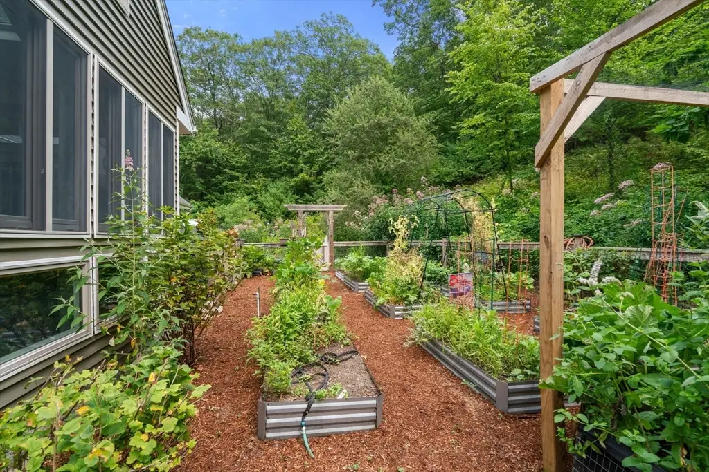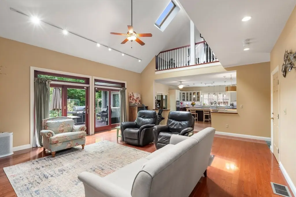 Tucked away in a stunning natural setting, steps from trails & Hopkinton State Park, this beautiful sun-splashed home impresses with thoughtful design throughout. The gorgeous chef's kitchen with a fabulous walk-in pantry flows seamlessly into a cathedral-ceiling family room and a spectacular four-season sunroom filled with natural light & picturesque views. Incredible office with built-ins provides the perfect work-from-home setup. The first-floor primary suite has soaring ceilings, walk-in closets, and an enchanting spa-like bath with radiant heat. Upstairs, you'll find a two spacious bedrooms, one with an ensuite bath. A large bonus room, a den/potential fourth bedroom and an additional bath complete this level. This property is an outdoor lover's dream with impressive gardens, mature plantings, chicken coop and a spectacular four-car heated barn with 14-ft ceilings and loft. Enjoy ultimate privacy, yet be just a short walk to the South Boro train, a commuter's dream. Don't miss this one-of-a-kind opportunity!