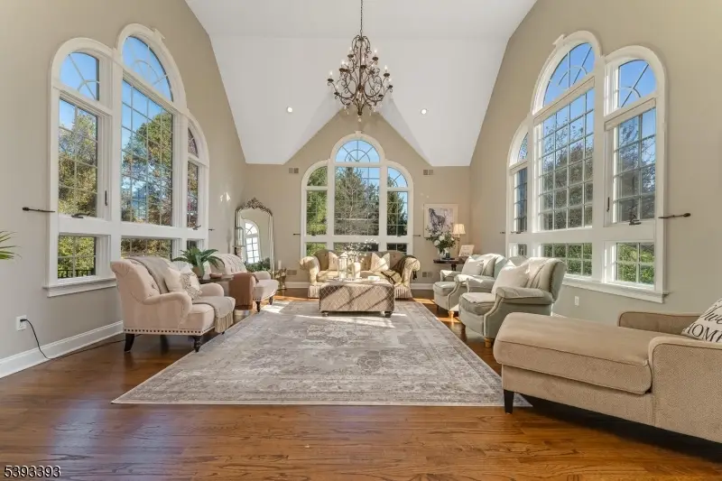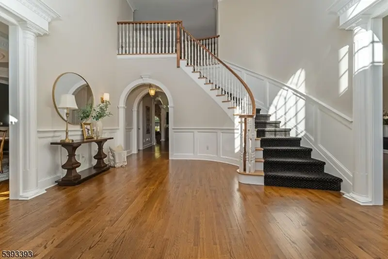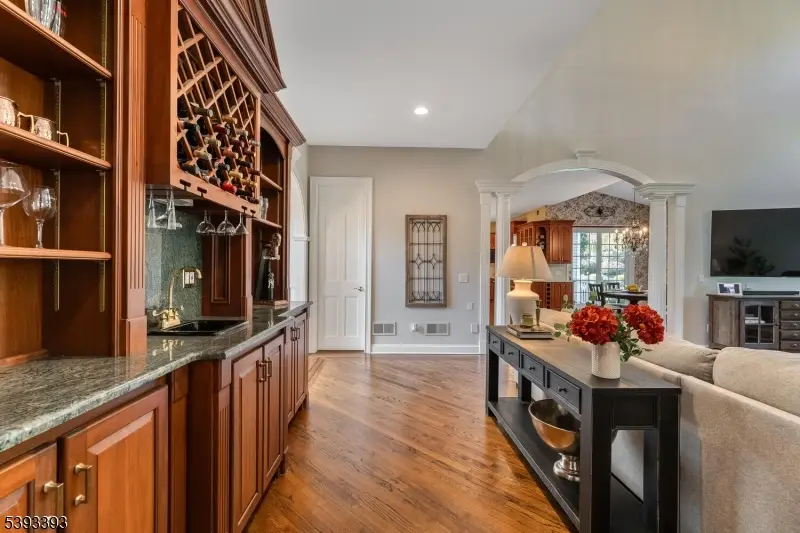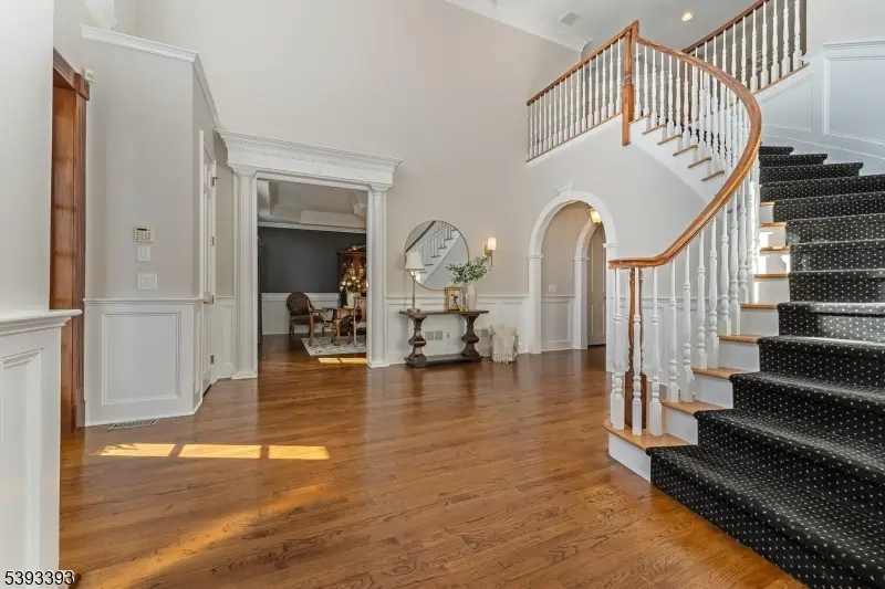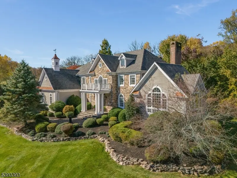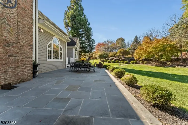 This superbly maintained and sparkling clean 5,262 sq. ft. custom colonial offers 4 bedrooms and 4½ baths on a beautifully landscaped 3.64-acre lot in a private, park-like setting. Located on a quiet cul-de-sac just minutes from Oldwick, this home is a perfect blend of luxury, comfort, and timeless design. Step inside to a light-filled, airy interior featuring: Gourmet Kitchen: 27x19 center-isle kitchen with new quartzite countertops, custom cherry cabinetry, upgraded stainless steel appliances, two dishwashers, and a new Wolf range with pot-filler. Two-Story Great Room: Expansive space with floor-to-ceiling stone fireplace and wet bar. Sunroom: 20x15 cathedral ceiling sunroom with three walls of windows. Private Office: Wood-paneled with coffered ceiling and its own fireplace. Dining Room: 18x16 tray-ceiling dining room, beautifully trimmed for formal entertaining. Foyer: Extra-wide entrance with a curved staircase, welcoming guests with elegance. The second floor features: Master Suite: Expansive cathedral ceiling, sitting room with gas fireplace and wet bar, enormous his-and-hers walk-in closets, and luxurious bath with steam shower and private commode. Additional Bedrooms: A second en-suite bedroom with Brazilian cherry floors and beautifully tiled shower, plus a pair of oversized Jack-and-Jill bedrooms sharing an adjacent bath. Other highlights include extensive millwork, hardwood floors throughout, custom built-ins, Palladian windows, a geometrically-patterned paver parking area, a huge bluestone patio, and an in-ground heated pool—perfect for entertaining and enjoying the outdoors. This home combines classic elegance with modern amenities in a truly breathtaking setting.