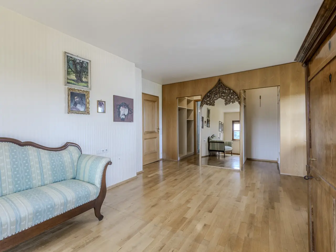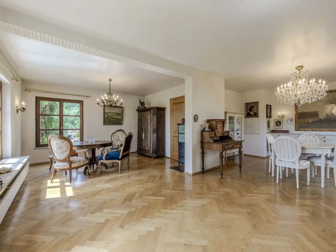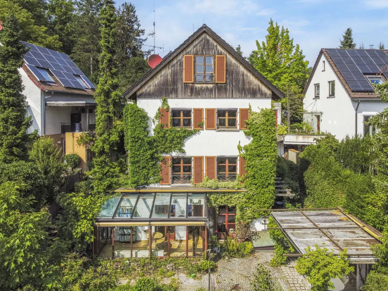In a sought-after, absolutely peaceful elevated location in Stuttgart-Frauenkopf, this detached single-family home is a real gem for nature lovers and families who demand space, atmosphere and quality of life. The house is idyllically nestled on an enchanted, lovingly grown-in plot that guarantees privacy and relaxation. Surrounded by mature trees, flowering shrubs and overgrown garden paths and ponds, the property offers a very special oasis of retreat - almost like a little paradise in the middle of the countryside. The property impresses with its charming character, generous room layout and well thought-out furnishings. You can park your car conveniently in or in front of the double garage and reach the entrance to the house via a few steps. On the first floor there is a light-flooded living and dining room, which was open-plan in the course of a complete renovation in the mid-1980s. A beautiful parquet floor adorns the room and, together with a stylish wood-burning stove, creates a cozy atmosphere. The hallway leads to the utility and hobby room and the rear exit. On the garden level, you will find a lovingly furnished eat-in kitchen with direct access to the conservatory, which offers a wonderful view of the greenery all year round. Whether it's sunny breakfasts or cozy evenings with the family - living here is a pleasure. There is also a (guest) bathroom with a floor-level shower, which is particularly practical if you have visitors. The conservatory gives you access to the terrace or your private recreation area. With a total of three children's bedrooms, a spacious master bedroom, hobby room, outdoor pool and three fully equipped bathrooms, the house offers plenty of space for family life, individual development or working from home. The room layout is flexible and ideally suited to the needs of families. The bedrooms and children's rooms are spread over the upper floor and attic and offer attractive, usable space and a wonderful view of the countryside. One of the bathrooms is accessible - en suite - via the walk-in dressing room in the master bedroom. The property is in a well-kept, partly modernized condition. During the renovation in 1986/1987, the house was insulated and basic installations such as heating and electrics were renewed. At the same time, it offers potential for individual design and further development - whether stylish modernization or careful renovation in keeping with the unique character of the house. The property itself is an absolute rarity in this location: quiet, green, barely visible and yet excellently connected - an ideal place for families, those seeking peace and quiet or people with a sense for something special. The garden area extends over a meadow orchard and allows you and your children to discover nature in your own home.