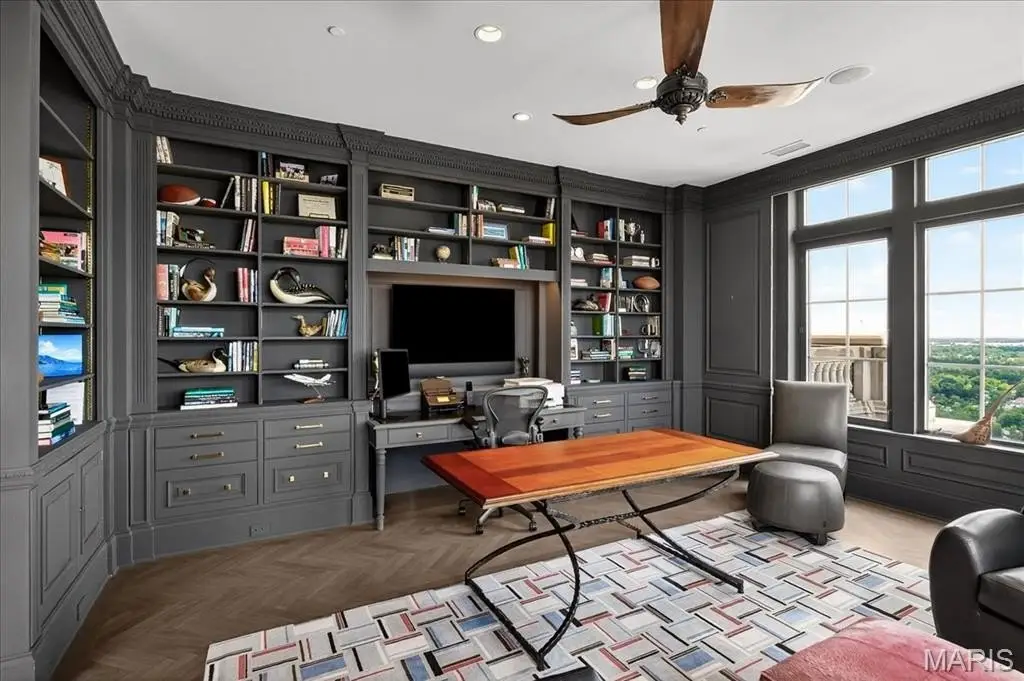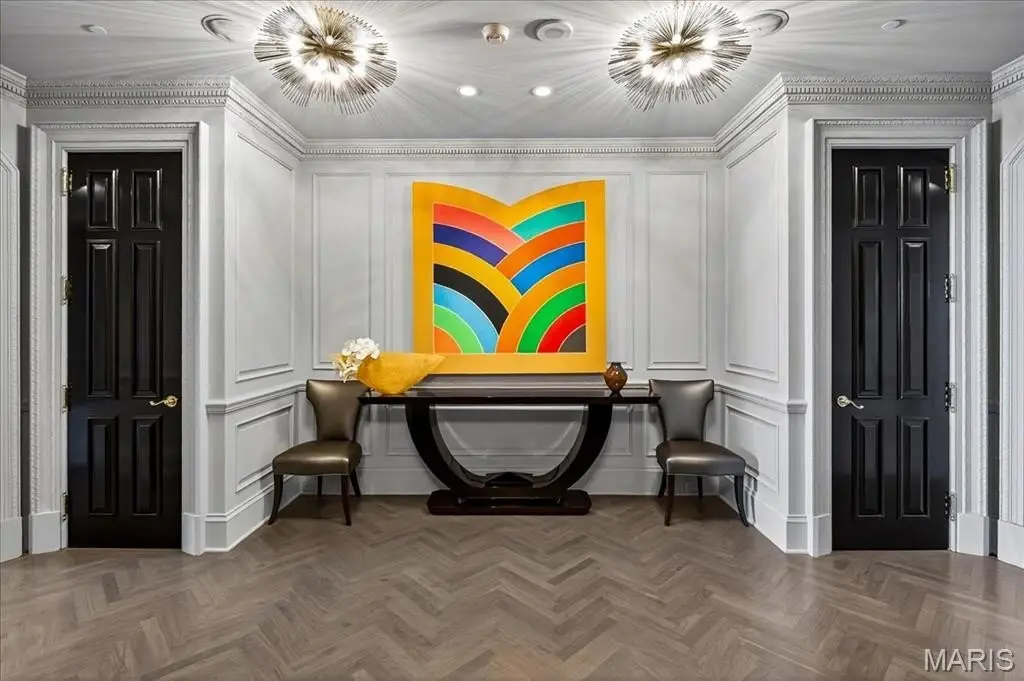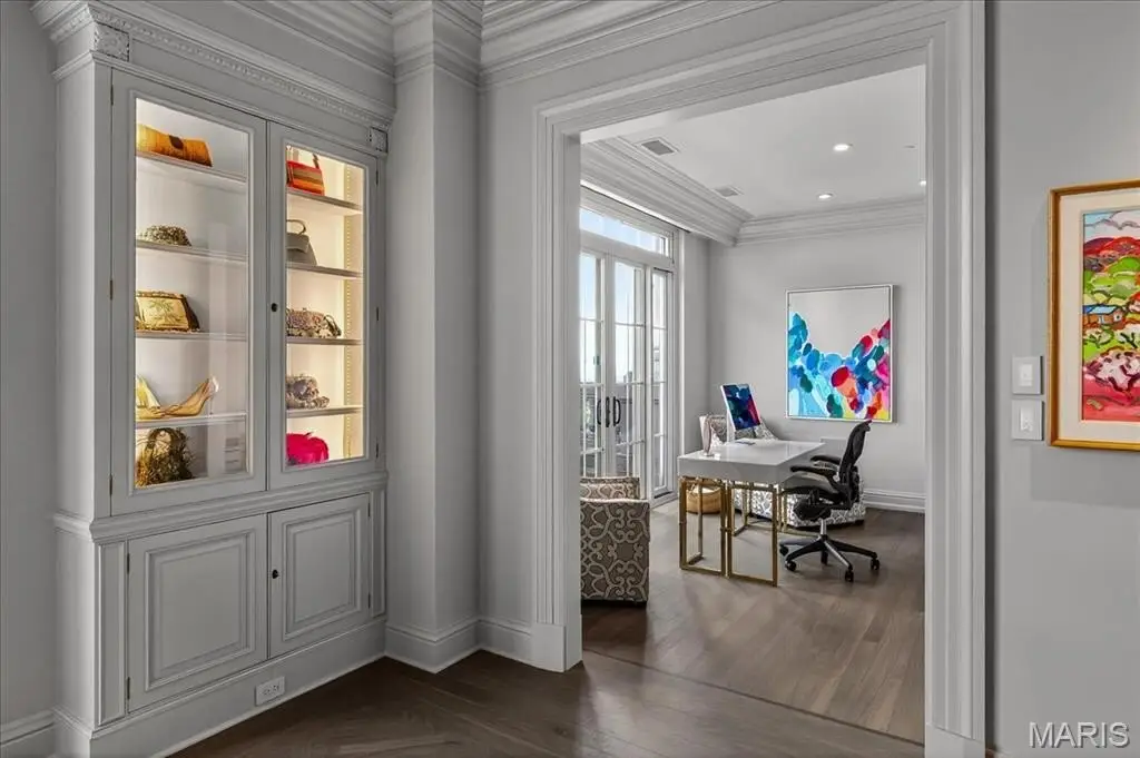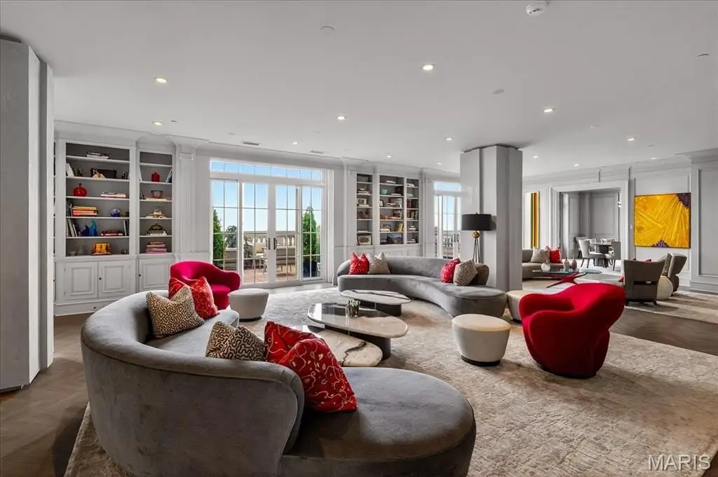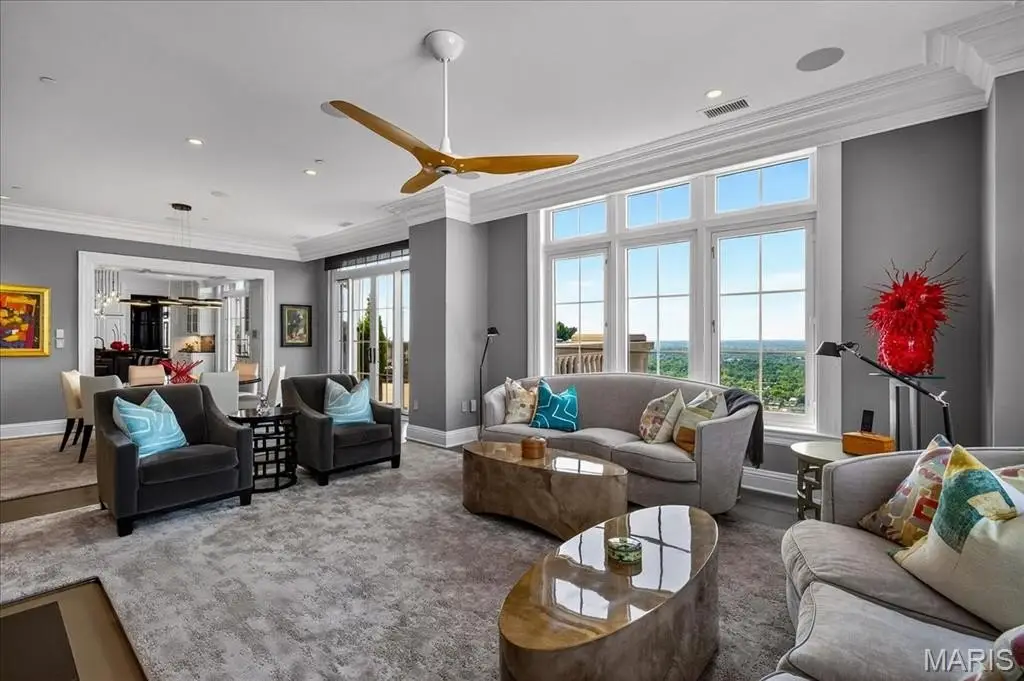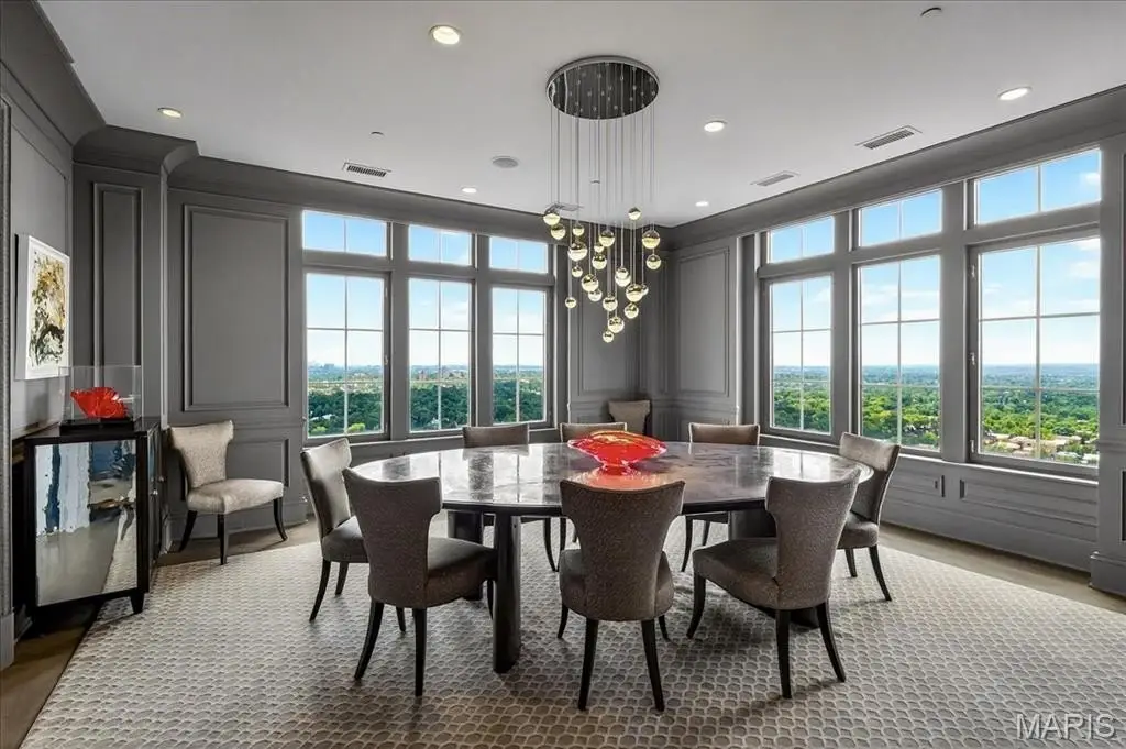Welcome to the crown jewel of luxury living: this full-floor penthouse features 2800 square feet of outdoor living space across four expansive terraces with panoramic views in every direction. From your private elevator foyer, enter a residence of timeless architecture and refined design, showcasing exceptional millwork and custom walnut and ebony inlaid chevron floors. The Venetian-plastered living room serves as the elegant centerpiece, flanked by a formal dining room and a handsomely paneled library. Designed for entertaining and daily living, the kitchen boasts bold black-and-white marble floors, Wolf and Sub-Zero appliances, a large center island, and flows into the breakfast and family rooms. A lacquered Butler’s Pantry and Bar provides added serving space, while the 500-bottle wine room is ideal for collectors and hosts alike. The primary suite offers spectacular northern views, a sitting area, an office, and three oversized walk-in closets. The ensuite bath features dual water closets, a soaking tub, and a walk-in shower, creating a tranquil escape. Two additional bedroom suites provide comfort for family or guests, while a large laundry room with custom cabinetry and a full bath (formerly a fourth bedroom suite) adds flexibility. This extraordinary lifestyle includes 24-hour concierge service, valet parking, pool, fitness center, dog park, and four parking spaces, with Clayton’s finest eateries and boutiques just moments from your doorstep.