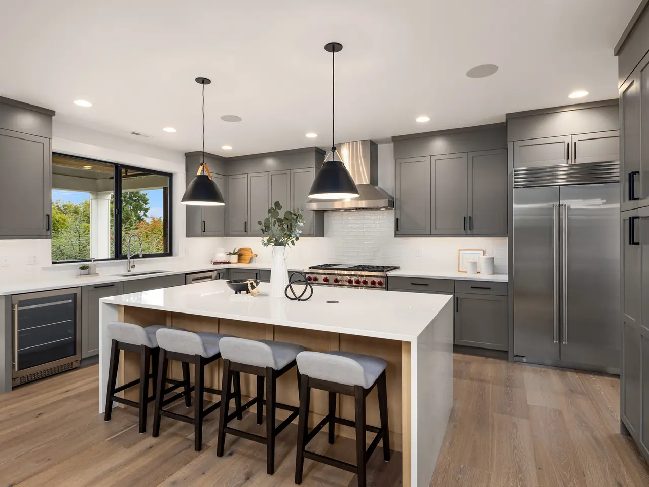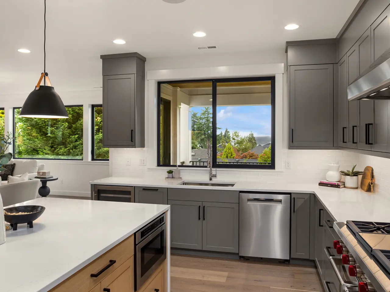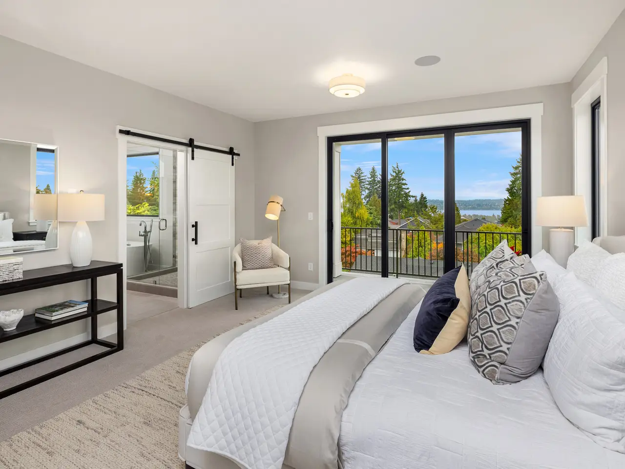 Presenting this new modern farmhouse home by Winfield Homes in the heart of View Ridge offering lake & mountain views. The spacious great room with fireplace, built-ins, wide plank hardwood floors and a gourmet kitchen featuring a quartz waterfall island, Wolf 48 range & Sub-Zero refrigerator, is a chef's dream! Entertain with ease from the outdoor covered deck w/ patio heater for year-round comfort. Upper floor primary suite with view deck and 5-piece spa bath with heated floors. The lower level offers a family room, 2 bedrooms, 3/4 bath & 2nd kitchen - ideal for multi-generational living or guest suite. A fully fenced backyard and a 2-car garage completes this beautiful home.