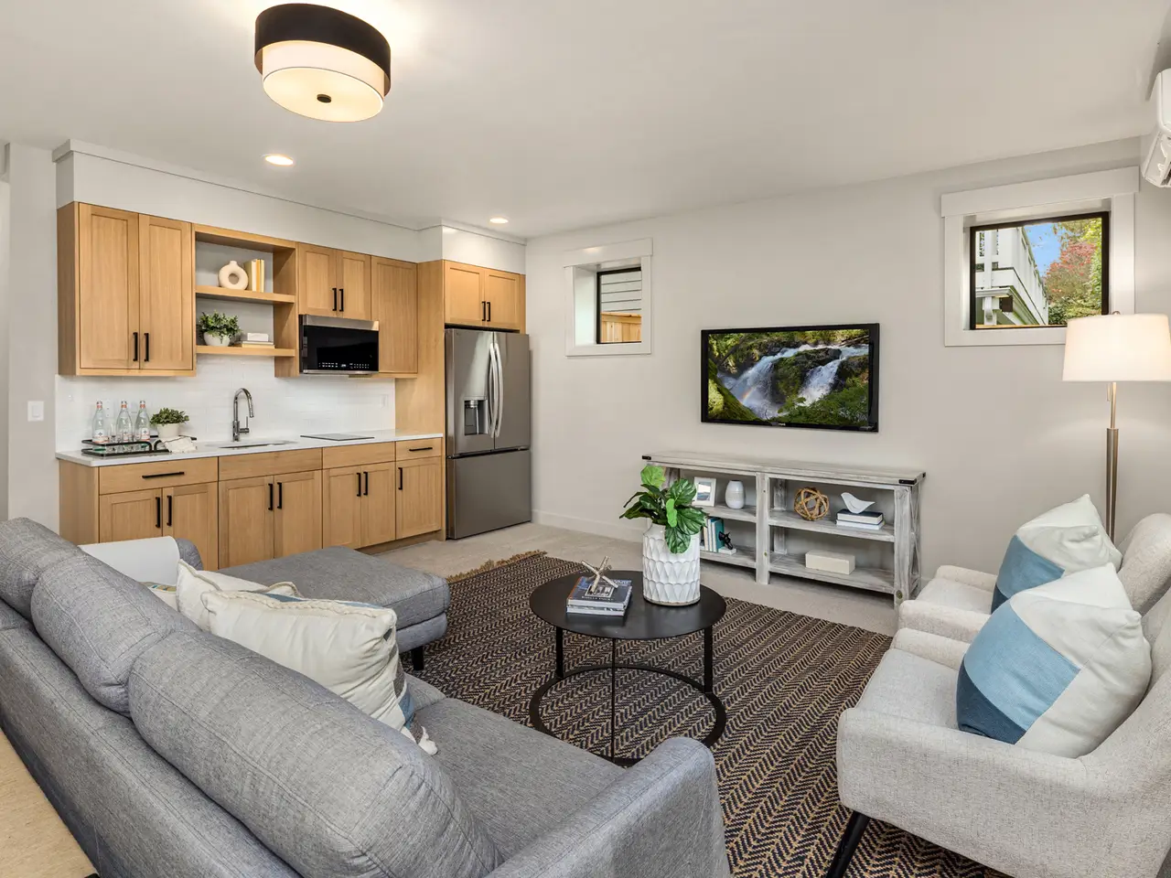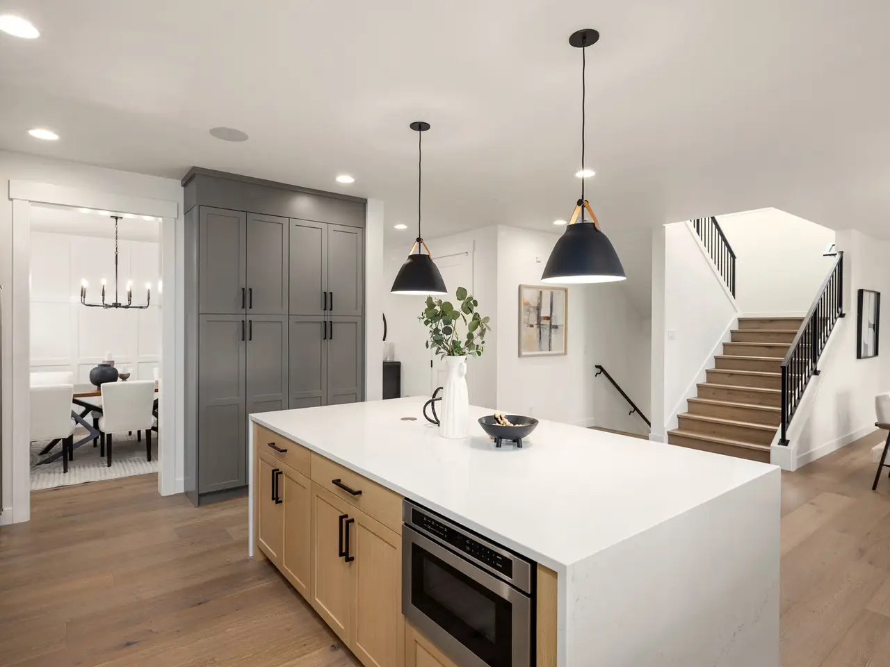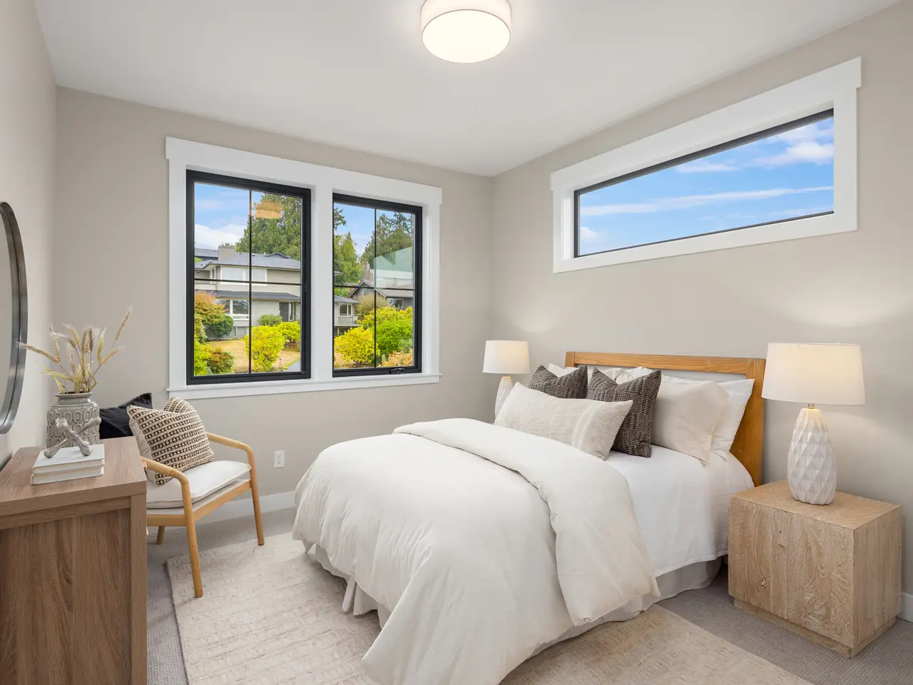 Presenting this new modern farmhouse home by Winfield Homes in the heart of View Ridge offering lake & mountain views. The spacious great room with fireplace, built-ins, wide plank hardwood floors and a gourmet kitchen featuring a quartz waterfall island, Wolf 48 range & Sub-Zero refrigerator, is a chef's dream! Entertain with ease from the outdoor covered deck w/ patio heater for year-round comfort. Upper floor primary suite with view deck and 5-piece spa bath with heated floors. The lower level offers a family room, 2 bedrooms, 3/4 bath & 2nd kitchen - ideal for multi-generational living or guest suite. A fully fenced backyard and a 2-car garage completes this beautiful home.