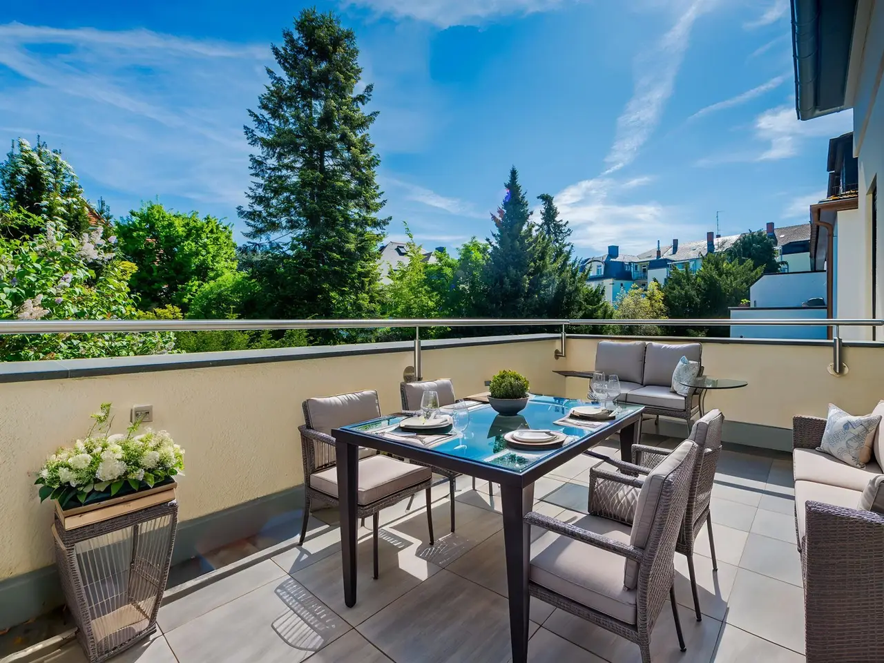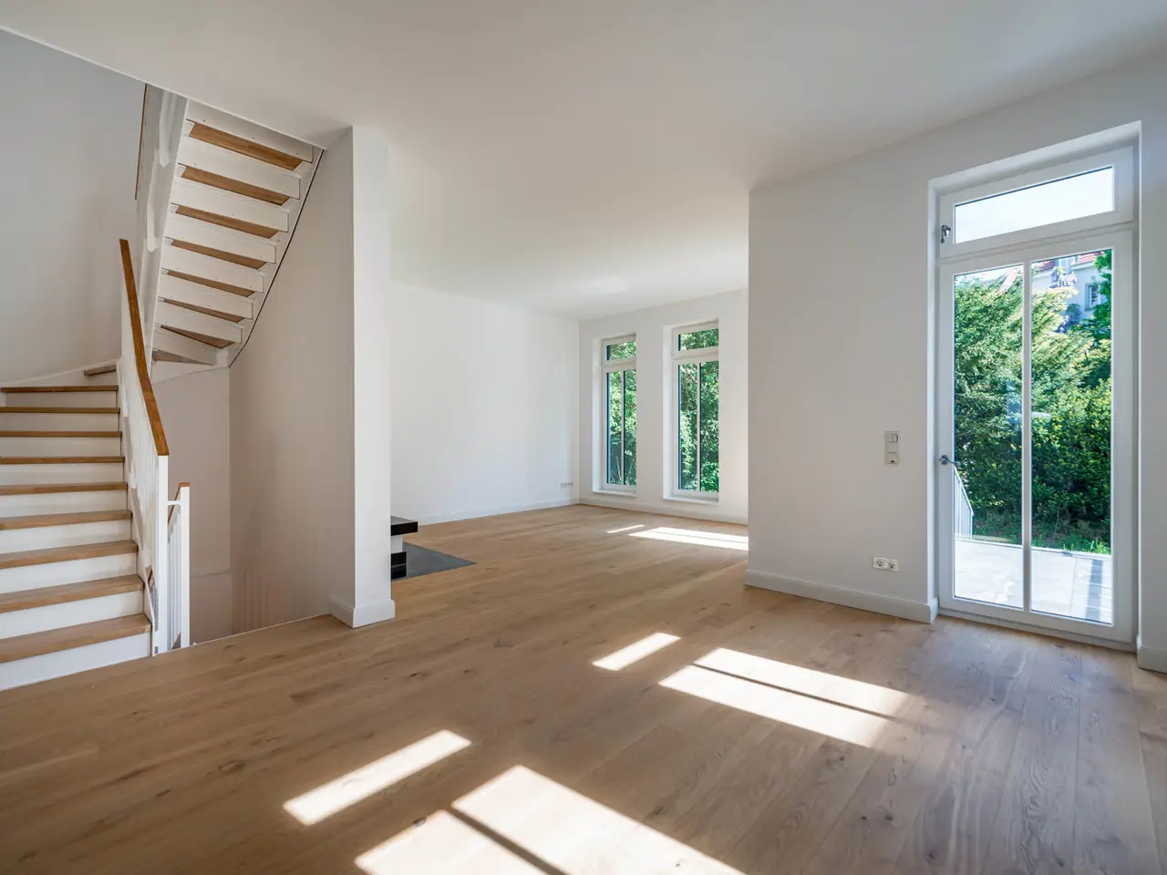 In an exclusive villa location in the sought-after Dichterviertel district, this stylish detached to semi-detached house was completed in 2024 and offers modern living comfort on first occupancy. The property boasts classic architecture combined with contemporary technology and high-quality fixtures and fittings. Generous living space extends over four floors, complemented by an elegant, barrier-free elevator that conveniently connects all levels. The house has a converted basement of around 53 m² and an attic studio of around 21 m² - both areas have high-quality fittings, heating and parquet flooring and are ideal for offices, hobbies, fitness or wellness. The division into two residential units allows for flexible use - whether as a spacious family home for a large family, as a multi-generational home or for a combination of living and renting. The furnishings leave nothing to be desired: Fine materials such as marble, porcelain stoneware and real wood parquet create an elegant ambience. Designer bathrooms, triple-glazed wooden windows, a fireplace and spacious terraces underline the high-quality character of the property. In terms of technology, the house boasts a smart home system, underfloor heating, an energy-efficient heat pump and an A+ energy rating. The charming mansard roof with natural slate and dormers is not only visually appealing, but also excellently insulated. The garden borders on the well-tended green spaces of neighboring city villas and offers a peaceful, green oasis for families, children or guests. The large terrace on the second floor offers a beautiful view of the greenery. A garage with electric door and an outdoor parking space offer additional convenience. This property is ideal for families, couples or senior citizens looking for a high-quality, ready-to-occupy new-build property with a garden in a quiet yet central location - both for owner-occupation and as a future-proof investment with rental potential.