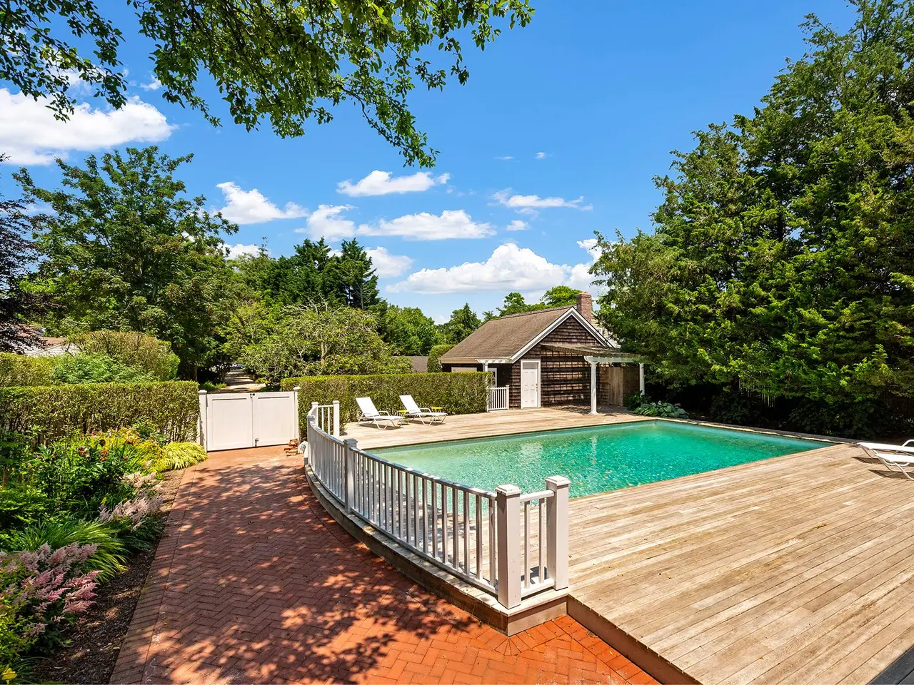 Perfectly positioned between the Amagansett Square and cherished Farmer's Market there exists a magical property, hidden south of the highway, just off Main Street. Down a long driveway and behind mature privet is where to discover this sweet retreat. You are greeted with bursts of color courtesy of robust Hydrangea, mature perennial gardens, and the cooling shade from a mature cherry tree; affording a calming prelude as you approach the front door. Inside, this Carriage house offers effortless one story living with 1717 sq. ft. of interior living space affording 2 large en suite bedrooms, a grand open main gathering room w/ fireplace, kitchen with pantry, laundry room and a half bath for guests. Outside on this stunning .75-acre parcel enjoy a spacious lawn, mature trees providing shaded areas, lush landscaping, the large sunbathed deck surrounding a gunite pool, a detached garage and a tool shed. Did I mention the location is ideal? You name it...it's a moment away. This is 256 Main Street in Amagansett, NY. Welcome home.