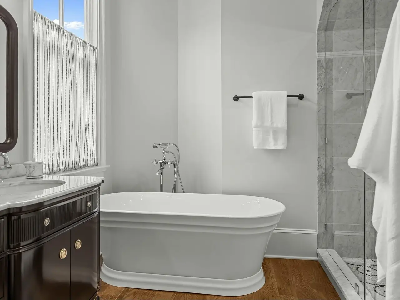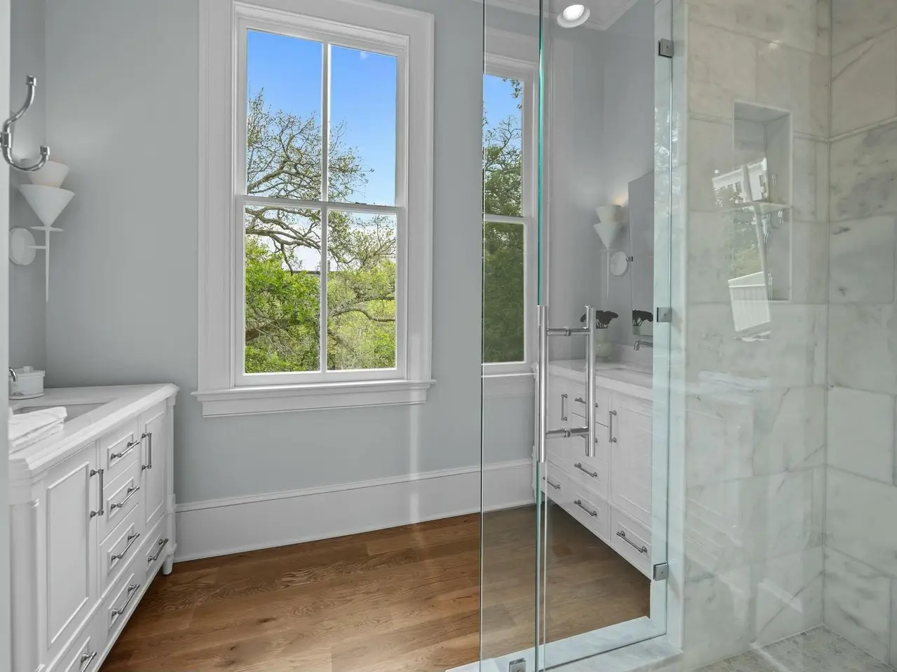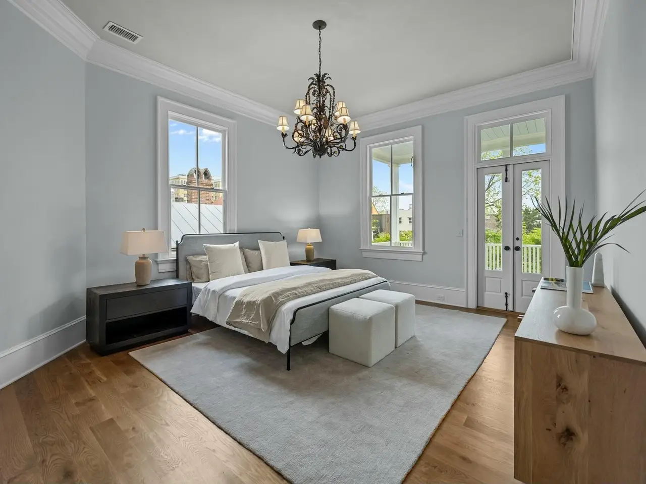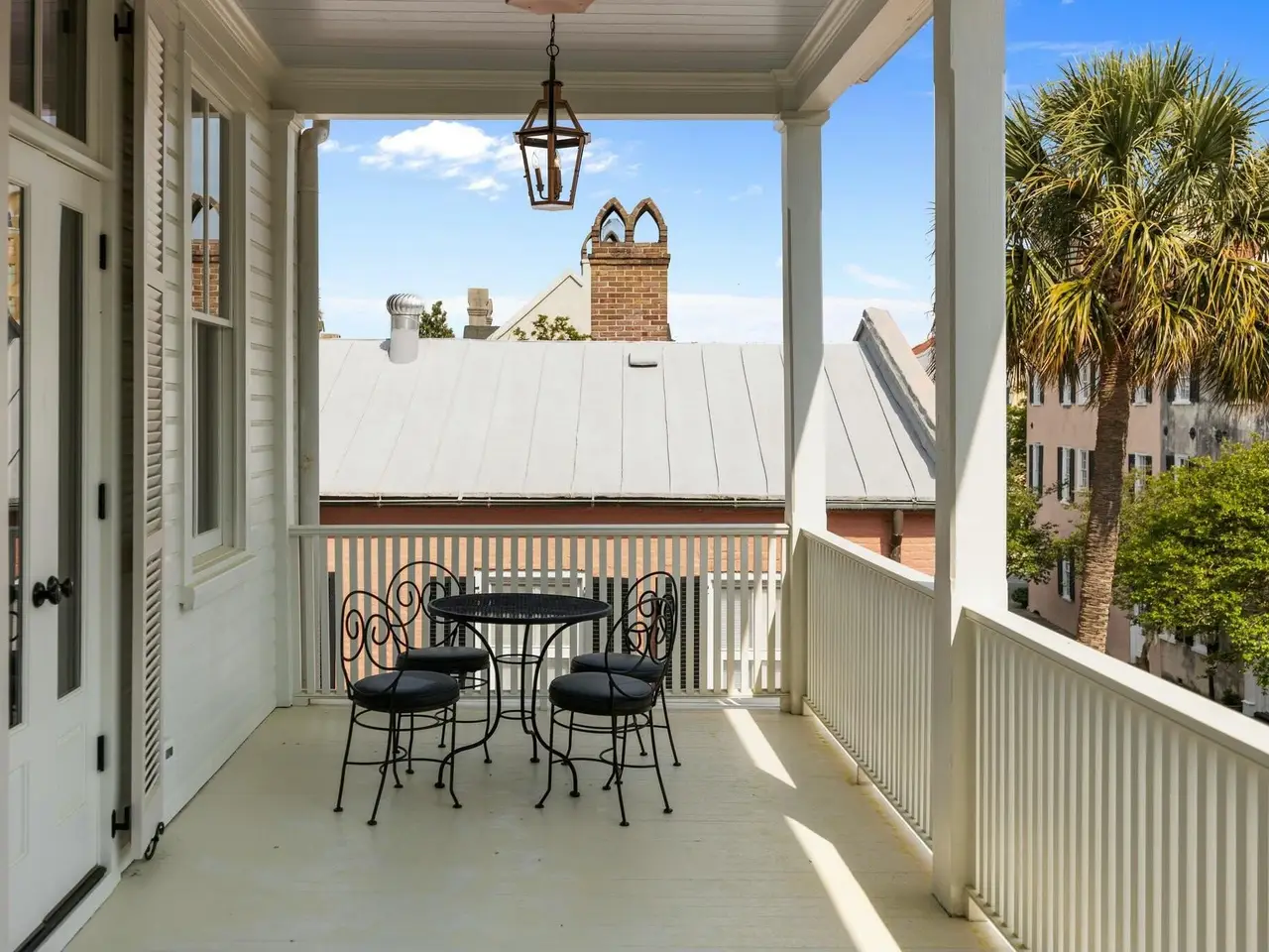 Welcome to La Belle Maison. Completely and thoughtfully renovated, this gracious home, sited on high ground (X Zone) within the original Walled City on Charleston's longest cobblestone street, is turn-key and move-in ready. 24 Chalmers boasts unusual wide, front to back views, from the sunny south-facing piazza, through parlors and dining room, to the gourmet kitchen with La Cornue range and Calacatta marble cladding. Four gas fireplaces throughout the home will make chilly nights cozy. There are primary suites on both the first and second floors. Each of the five ensuite bathrooms has access to private outdoor space which boast views of the many churches and landmarks in the French Quarter. The roof deck provides iconic views of St. Philip's Church, the Mills House, Circular Congregational Church, and the Dock Street Theatre. A secluded patio and garden lie behind secured gated parking for two cars. A spacious guest apartment is accessible at street level, with its own gated entrance and electric meter, perfect for visitors or a rental. Also at street level is a large family room/media room with a catering kitchen, bathroom, and elevator to make living easy. Main residence has 6 bedrooms, 6.5 baths and approximately 5300 SqFt. Guest suite/apartment has 2 bedrooms, 1 bath and approximately 1000 SqFt. 24 Chalmers will be featured as the 2025 Charleston Symphony Orchestra League showhouse.