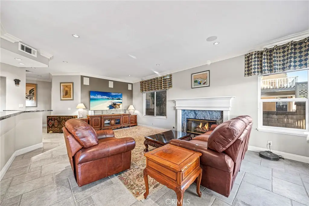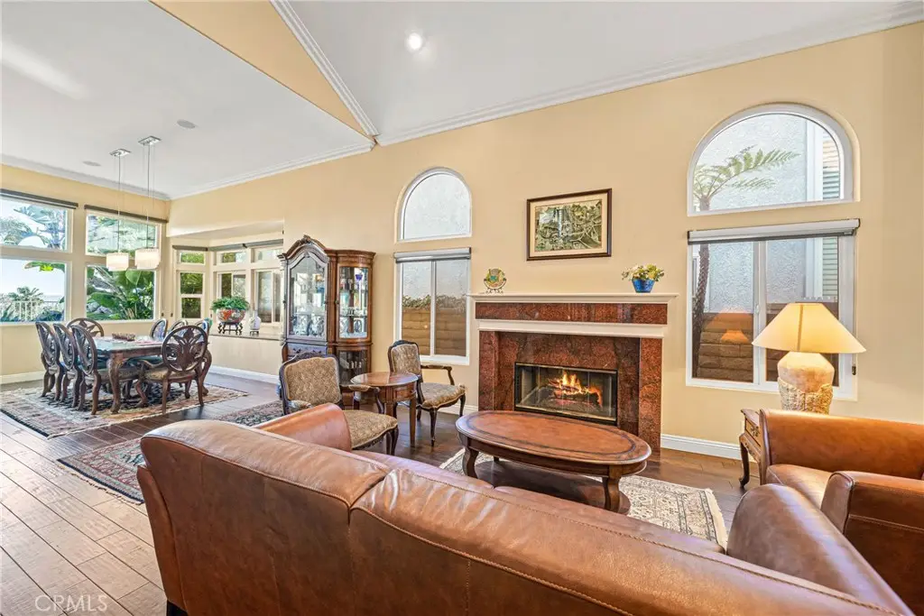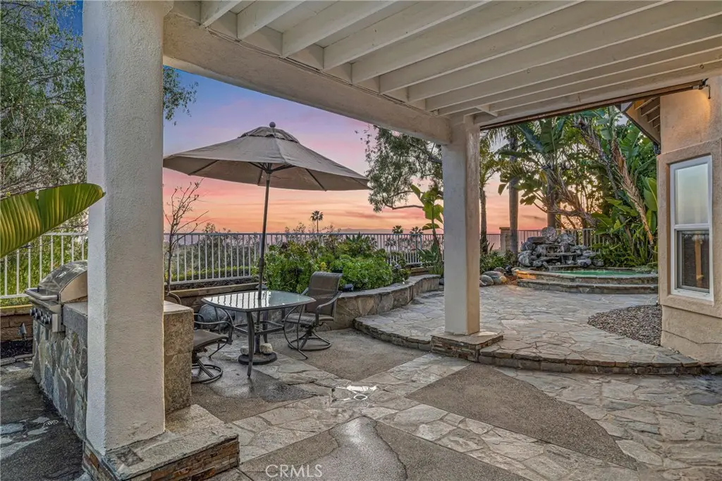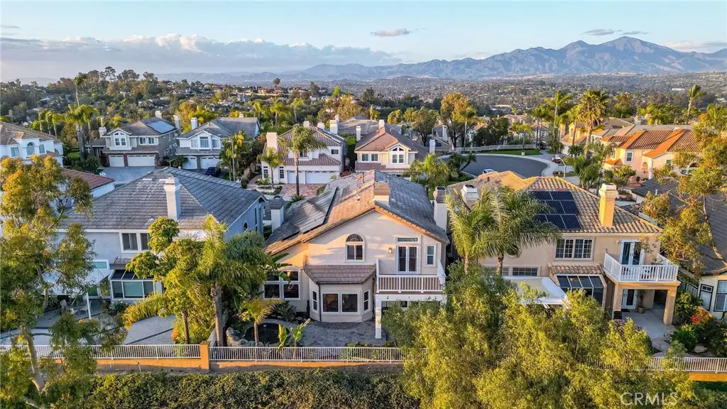 Showcasing unmatched luxury and sweeping bluff top views is this gorgeous residence which is situated at the heart of a quiet neighborhood cul-de-sac in the highly sought after hilltop enclave of Moulton Ranch in Laguna Hills. This is the one! With high-end finishes throughout, a downstairs ensuite bedroom, a custom hardscape view yard with an in-ground spa with waterfall and a truly enviable floor plan don't miss this chance. Starting with great curb appeal, including the custom stonework hardscape, mature planting beds and a grassy lawn enter through stunning custom French doors into a soaring vaulted ceilings foyer and formal living room. With great light from large yard view windows, a focal point fireplace - the first of three in the home - and ample space to spready out the formal living room is open to the formal dining room with large patio view windows which flood these formal spaces with a wealth of afternoon natural light. Off of the dining room is the chef's kitchen which has upgraded cabinetry, top-tier stainless steel appliances, a central island with possible bar seating and a dedicated task sink and a bar peninsula that extends all the way to an adjoining dry bar with stacked wine refrigerators. The kitchen also features a sizeable casual eat in area and view windows out to the patio. Sharing the great room vibe is an oversized family room which has an abundance of space, the second hearth, and is open to the dry bar making this the perfect place to entertain. With French doors out to the patio deck this space offers true indoor/outdoor living. A downstairs ensuite bedroom with step in shower, a guest half bath and an inside laundry room completes the lower level. Upstairs is a large second family room space and 3 additional bedrooms that start with the spacious primary suite which has a stunning spa like ensuite with a custom dolphin shower enclosure, granite counters, a privacy water closet door, a walk in closet and great light. A cozy third fireplace and a private panoramic view deck complete this must-see primary retreat. Two additional bedrooms and an updated guest bath complete the upper level. Featuring an attached 3 car garage, a 3 car driveway, and countless upgrades, make sure you see this home! Minutes from a local neighborhood park, great schools, shopping, dining and commuting options, the beach and everything South County has to offer don't miss this opportunity!