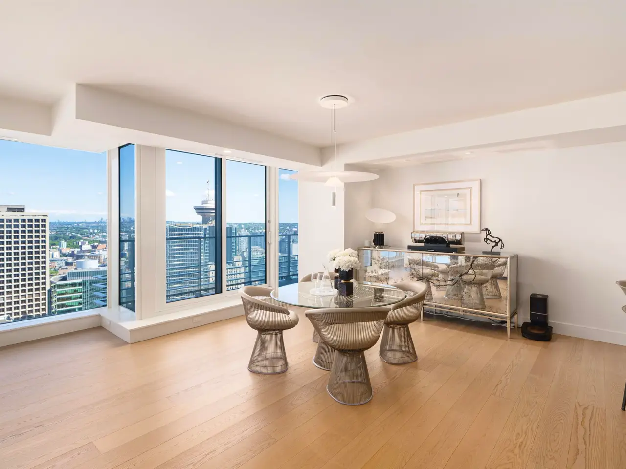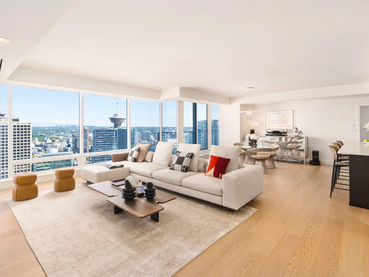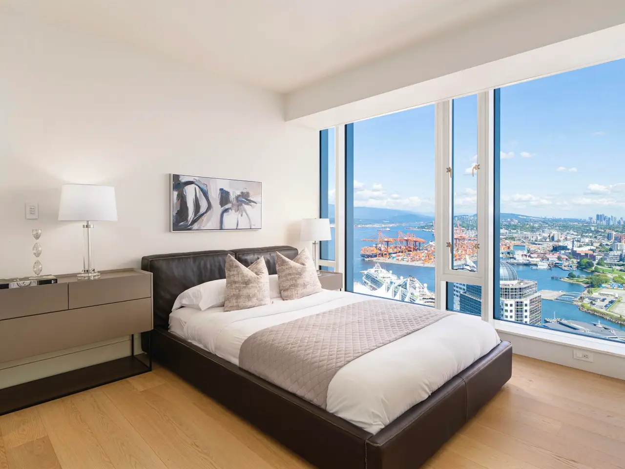 Rarely available, exquisite 02 home in the prestigious Fairmont Pacific Rim. Unobstructed, stunning views of ocean, harbour & northshore mountain from the 5th highest 02 plan. A remarkably expansive, light-filled living room that welcomes the morning sun and flows seamlessly into breathtaking panoramic views. Boasting luxury upgrades in 2020: solid hardwood floor, motorized blinds & blackout shades, marble countertop, the entire laundry room (Miele washer & dryer, countertop, cabinets, sink, faucet), Nest thermostats, all lighting fixtures, water filter, painting; dishwasher & hood fan upgraded in 2024. Boffi Italian kitchen, Miele & Sub-Zero appliances, spa ensuites. Meticulously maintained. Ready to move in. 2 parking.