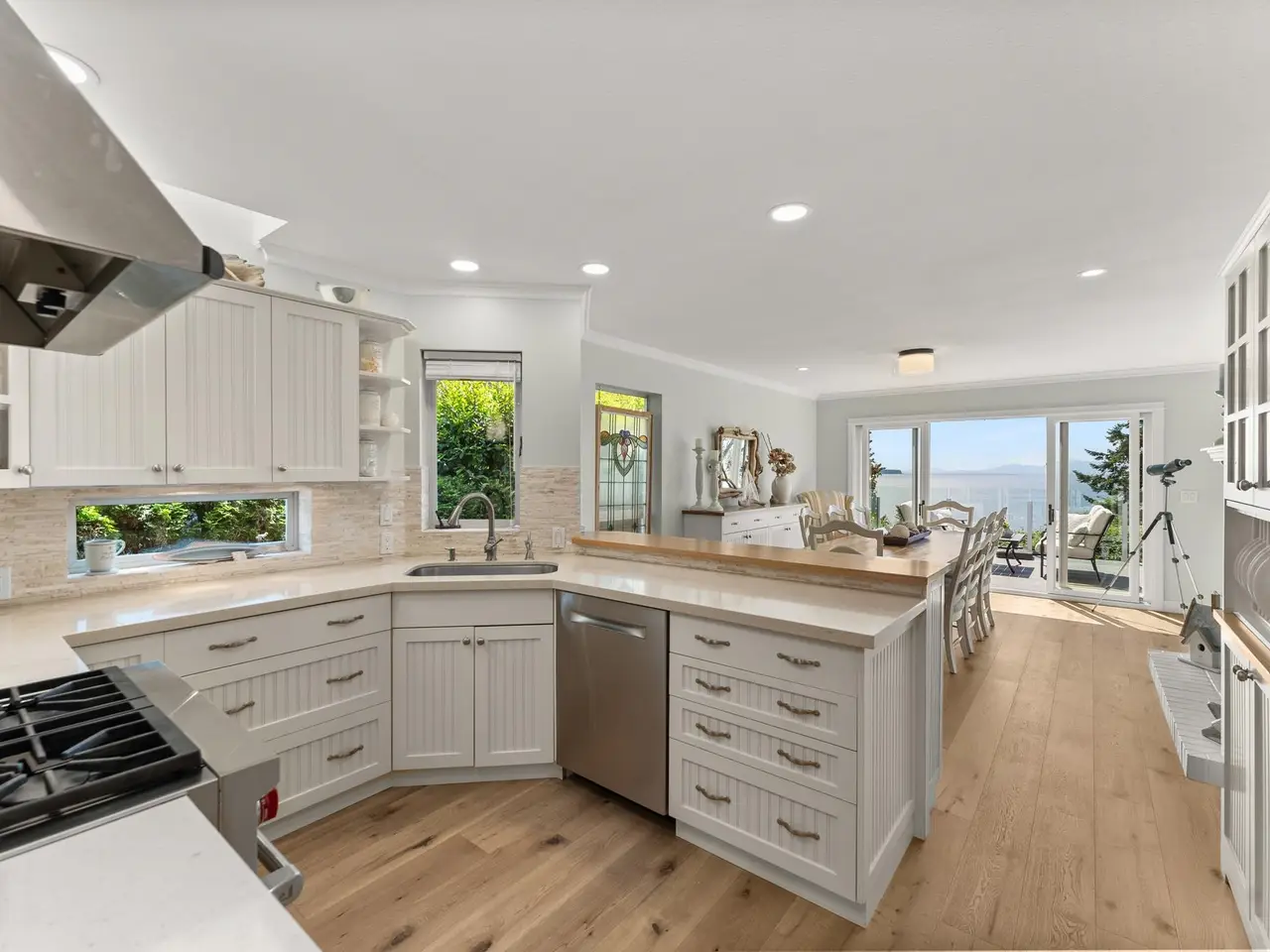 A rare opportunity to own on the bluff along a peaceful no-through road, where breathtaking ocean views and soaring eagles are part of everyday life. This impeccably maintained three bed, two-storey home with a full basement has been extensively renovated with quality craftsmanship and thoughtful design. All three levels provide vantage points to enjoy the stunning ocean scenery. Tastefully decorated in a coastal palette, the home blends elegance and warmth. The main floor offers bright, open living spaces designed for everyday comfort. Upstairs, the resort-style primary bedroom is a true retreat, complete with a private deck and ensuite. The basement includes a bedroom, large rec room, and wet bar. Surrounded by beautifully landscaped gardens, this home embodies the essence of coastal living.