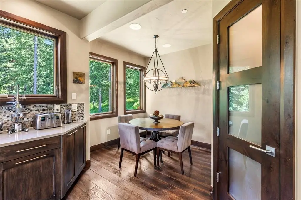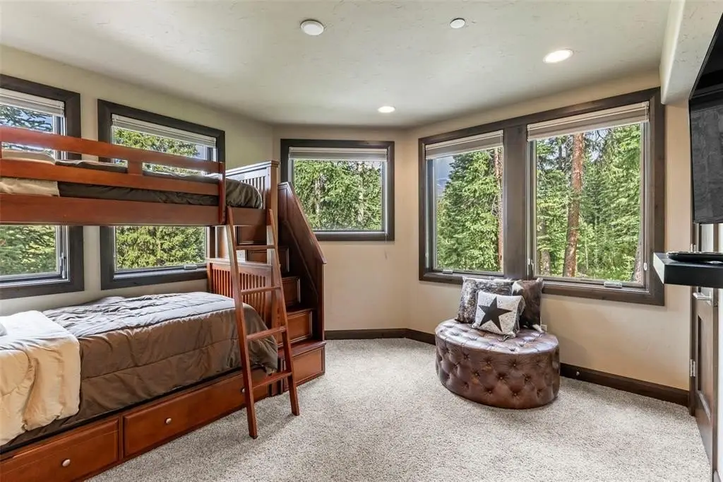 Just a 7-minute walk or ski to the base of Peak 9 and downtown Breckenridge, this stunning 6-bedroom, 8-bath, 6,043 sq ft mountain retreat is nestled on a large, wooded lot at the end of a quiet street in the exclusive Warriors Preserve neighborhood. A Parade of Homes winner, this custom-built residence earned 6 of 8 awards the year it was showcased — and it’s easy to see why. With an open, modern floor plan and abundant natural light, the home features soaring windows and multiple decks that showcase sweeping views of Baldy Mountain. Thoughtfully designed for luxury and function, it includes two expansive primary suites, a private nanny’s quarters with a separate entrance, and an elevator that services all levels of the home. Ideal for entertaining, the chef’s kitchen offers a generous breakfast nook, oversized bar area, and ample space for dining and gathering. The lower level includes a media room and pool table area — the perfect setting for après-ski relaxation or cozy nights in. After a day on the mountain, unwind in your private outdoor hot tub, surrounded by trees and alpine serenity. The home also features multiple gas fireplaces, a two-car attached garage with two additional covered parking spaces, and unmatched privacy, bordered by mature forest and steps from national trails. This is true luxury mountain living — where timeless design, premier location, and exceptional craftsmanship converge in a rare alpine offering.