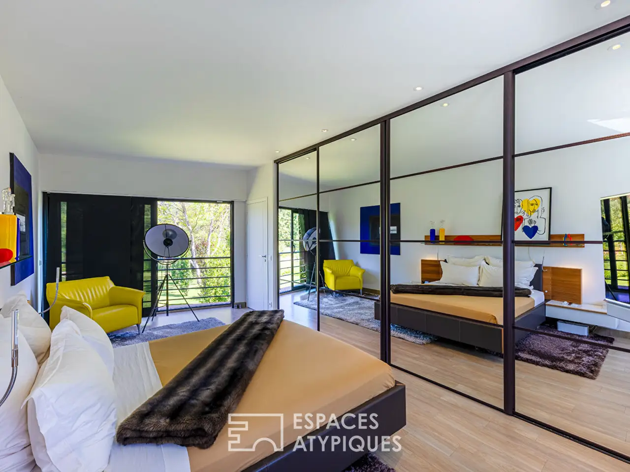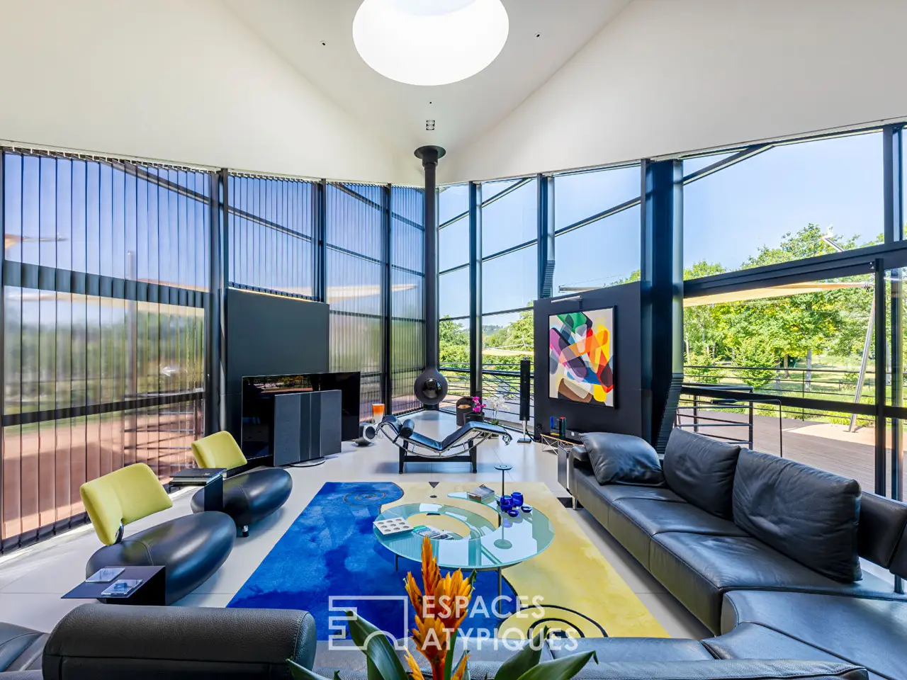 In the heart of the Boucles de Seine and its typical limestone cliffs, this architect's house is in symbiosis with the river landscape and its boats that run along the property. With its elongated shape, it captures the unique light of the place, the cradle of Impressionism. It frees itself from any visual border thanks to its curtain wall as well as its large windows and is resolutely turned towards the landscaped garden. Its four terraces reveal atmospheres all different from each other under the hospice of shade sails and bioclimatic pergola. Its swimming pool and boules pitch give it the look of a holiday home all year round, which the golf course and the leisure center in the village will not contradict, nor will the huge surrounding Natura 2000 classified forest. Nearby stands the Chateau de la Roche Guyon, which can be seen from the living room.The interior of the house can be discovered thanks to a 9 m long 'bridge' path, which allows you to admire, from the height, the landscaped garden, the swimming pool as well as the different levels of terraces.The entrance distributes all the living spaces: at the bow, you can discover the sublime cathedral lounge. The dining kitchen, with cellar, feels like the beating heart of the house and, above, the dining room dominates the premises and gives access to the solarium terrace, sheltered from view and from the wind. On the port side, the bedrooms are distributed, all benefiting from their private bathroom: a first of 17.40 sqm having the particularity of being connected with an office that can serve as an additional bedroom of 16.20 sqm.The second with its mezzanine of 33.60 sqm. The large master suite of 37.5 sqm with dressing room opening onto a magnificent bathroom with shower. The large bathtub acting as the stern of this magnificent liner! The house benefits from 569 sqm of terrace including 213 sqm covered on the ground floor, 174 sqm on the ground floor of the house and the swimming pool without forgetting the 56 sqm solarium.Outside, you can admire the landscape at the edge of a 5×10 m swimming pool, heated by heat pump and , and its shower. Shading of the pool and upper terraces is provided by 4 motorized shade sails. The 6797 sqm garden runs along the towpath on the banks of the Seine and includes a 185 sqm bowling green and swing, a 185 sqm Japanese garden and a 402 sqm flowered fallow. 3 robots maintain this garden and its lighting is managed by home automation.A garden shed with storage awning, a covered double garage and parking for 2 additional vehicles complete the numerous services of this exceptional property. Heating by heat pump- Elementary school in the village- Middle and high schools, private 20 mins away (Vernon and Mantes la Jolie);- Nearby: La Roche Guyon and Giverny- A13 motorway for access to A14 in 10 minutes by car- Line J Mantes la Jolie 9km away (TER to Paris St-Lazare in 40 minutes) -Arrival of the RER Eole at Mantes la Jolie in 2024 .(serving La Defense and Gare St Lazare).ENERGY CLASS: C / CLIMATE CLASS: A Estimated average amount of annual energy expenditure for standard use, based on energy prices for the year 2021: between EUR1,740 and EUR2,410 Contact: Julie 07 77 84 74 57REF. 10385Additional information* 7 rooms* 4 bedrooms* 1 bathroom* 3 shower rooms* Outdoor space : 6797 SQM* Property tax : 3 641 €Energy Performance CertificatePrimary energy consumptionc : 129 kWh/m2.yearHigh performance housing*A*B*129kWh/m2.year3*kg CO2/m2.yearC*D*E*F*GExtremely poor housing performance* Of which greenhouse gas emissionsa : 3 kg CO2/m2.yearLow CO2 emissions*3k