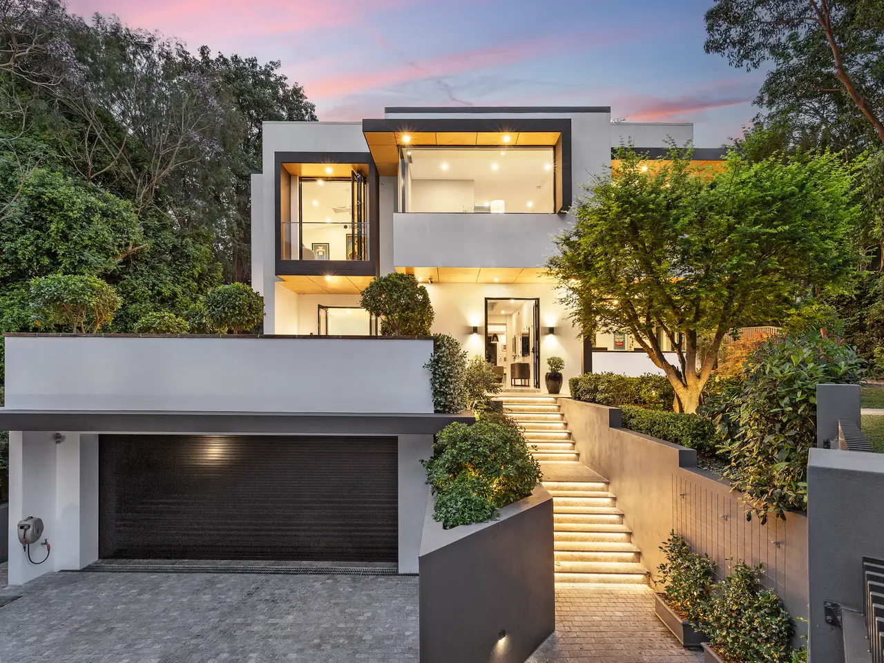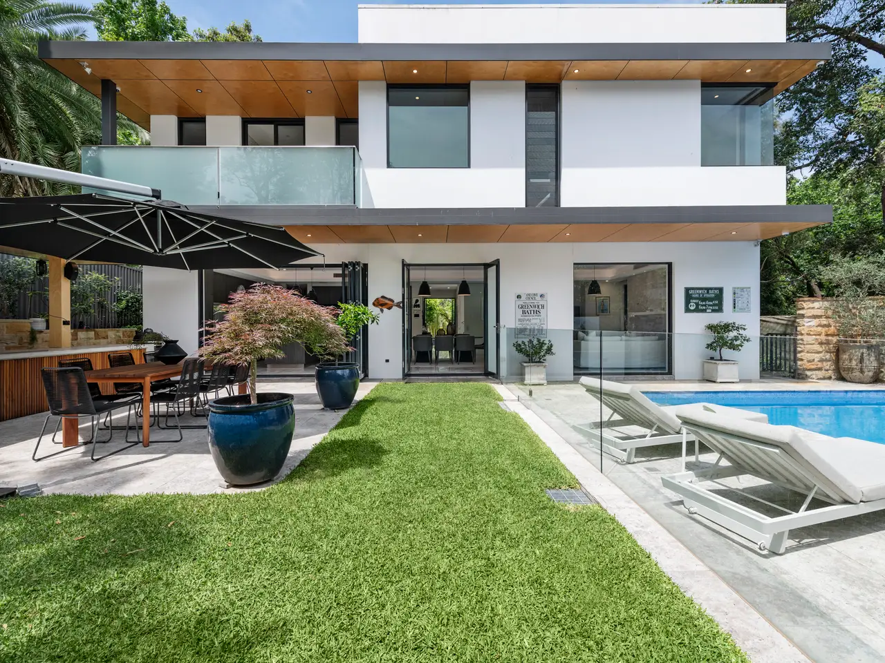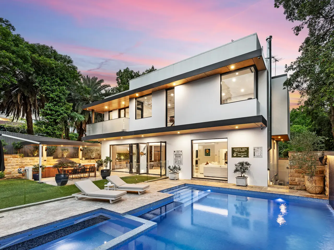 An executive triumph and a unique Greenwich opportunity, this grand offering boasts the sumptuous feel and boldness of vision found in only the very best residences. Embrace its timeless architectural flair and elevate your family lifestyle – with its luxurious comfort and tech features, fabulously flexible interiors and breathtaking outdoor entertaining spaces providing a home whose epic wow factor is equalled only by its premium convenience, approx. 450m from village cafes and the K-2 primary school and approx. 500m walk from Wollstonecraft station. - Proud and prominent approx. 651sqm corner block setting of leafy serenity - Tri-level layout plus rooftop BBQ terrace with scenic water & CBD view - Custom office, Daikin ducted air, 3 phase with garage EV outlet, lift access - Contemporary flow to travertine courtyard and poolside alfresco - Heated saltwater pool and spa, hardwired int/ext speakers with central control - Solid build with concrete walls, floors and Rockcote rendered finish, Hydronic heated floors throughout - Electric Blinds and louvers including rooftop access, fans in each bedroom - Chef's kitchen with two Neff ovens, butler's pantry and Zip tap