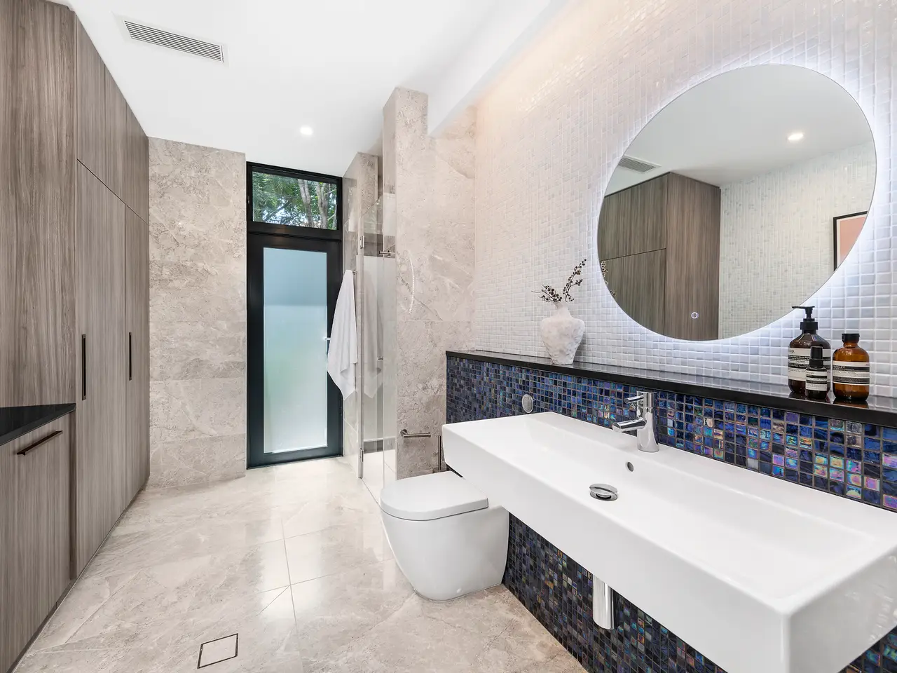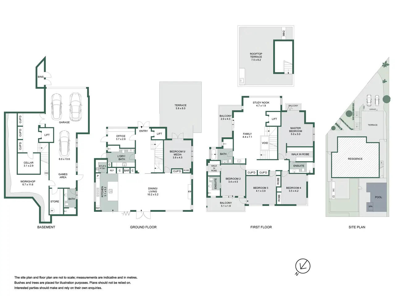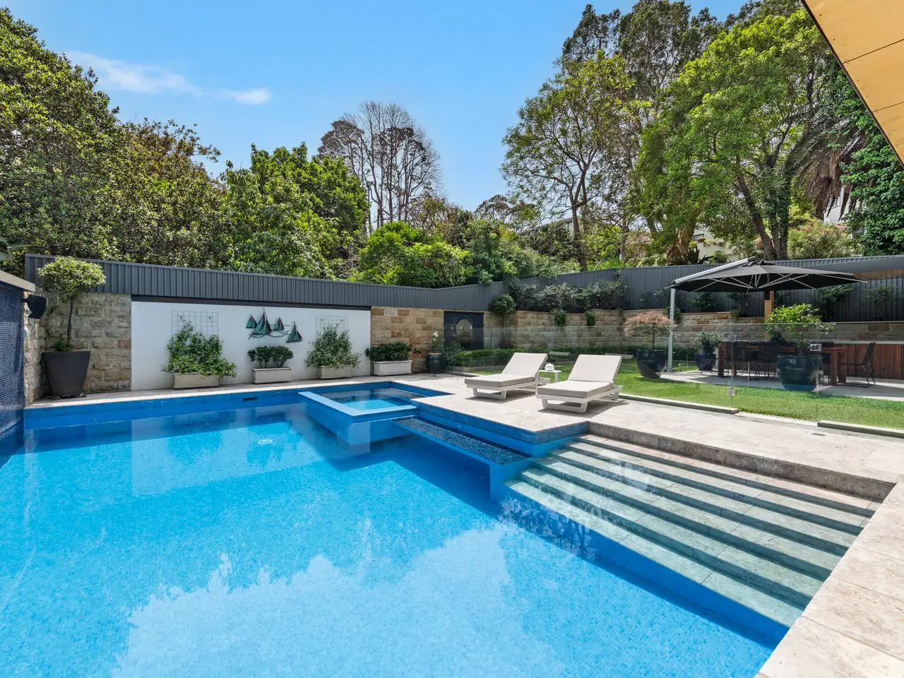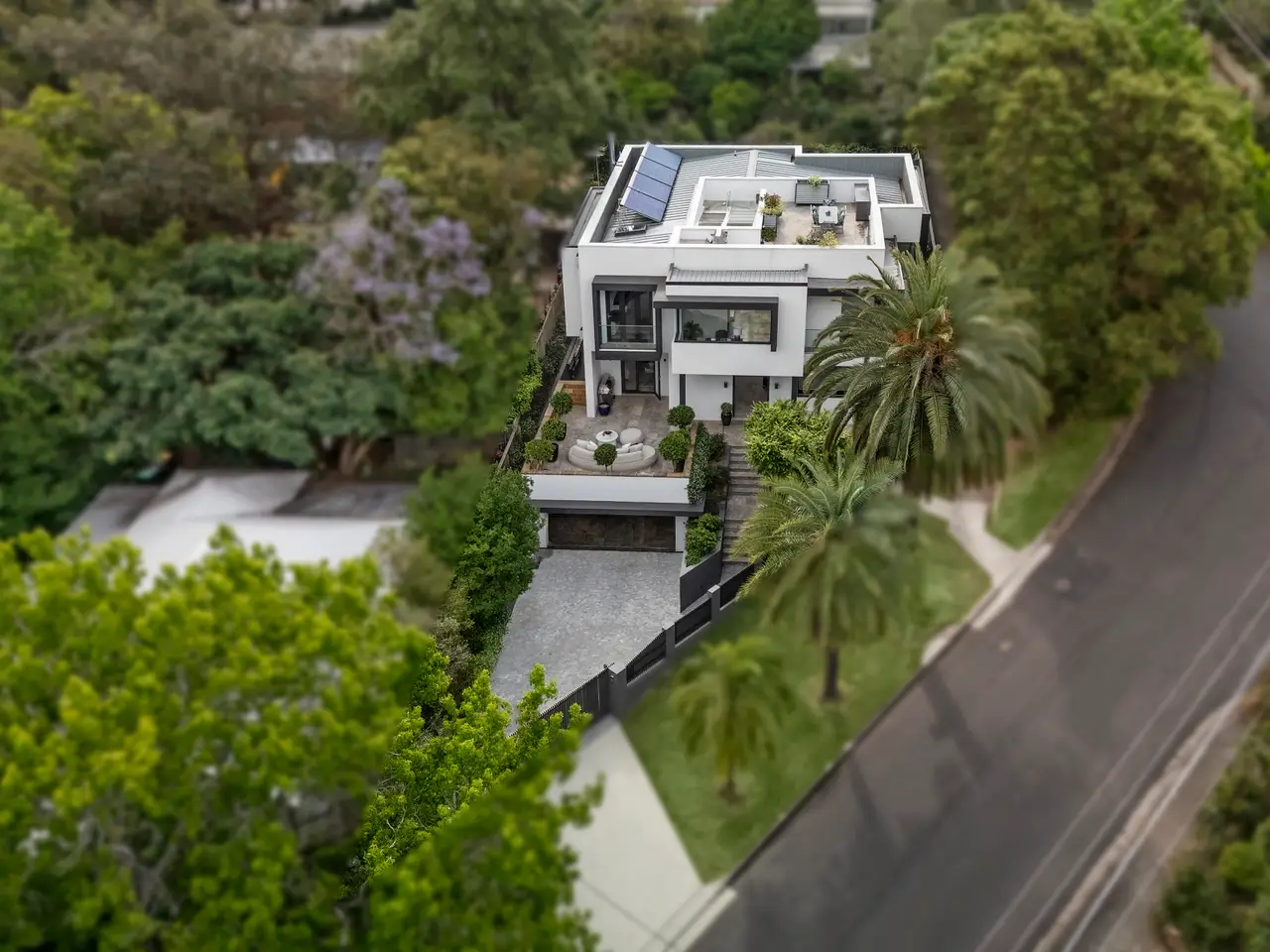 An executive triumph and a unique Greenwich opportunity, this grand offering boasts the sumptuous feel and boldness of vision found in only the very best residences. Embrace its timeless architectural flair and elevate your family lifestyle – with its luxurious comfort and tech features, fabulously flexible interiors and breathtaking outdoor entertaining spaces providing a home whose epic wow factor is equalled only by its premium convenience, approx. 450m from village cafes and the K-2 primary school and approx. 500m walk from Wollstonecraft station. - Proud and prominent approx. 651sqm corner block setting of leafy serenity - Tri-level layout plus rooftop BBQ terrace with scenic water & CBD view - Custom office, Daikin ducted air, 3 phase with garage EV outlet, lift access - Contemporary flow to travertine courtyard and poolside alfresco - Heated saltwater pool and spa, hardwired int/ext speakers with central control - Solid build with concrete walls, floors and Rockcote rendered finish, Hydronic heated floors throughout - Electric Blinds and louvers including rooftop access, fans in each bedroom - Chef's kitchen with two Neff ovens, butler's pantry and Zip tap