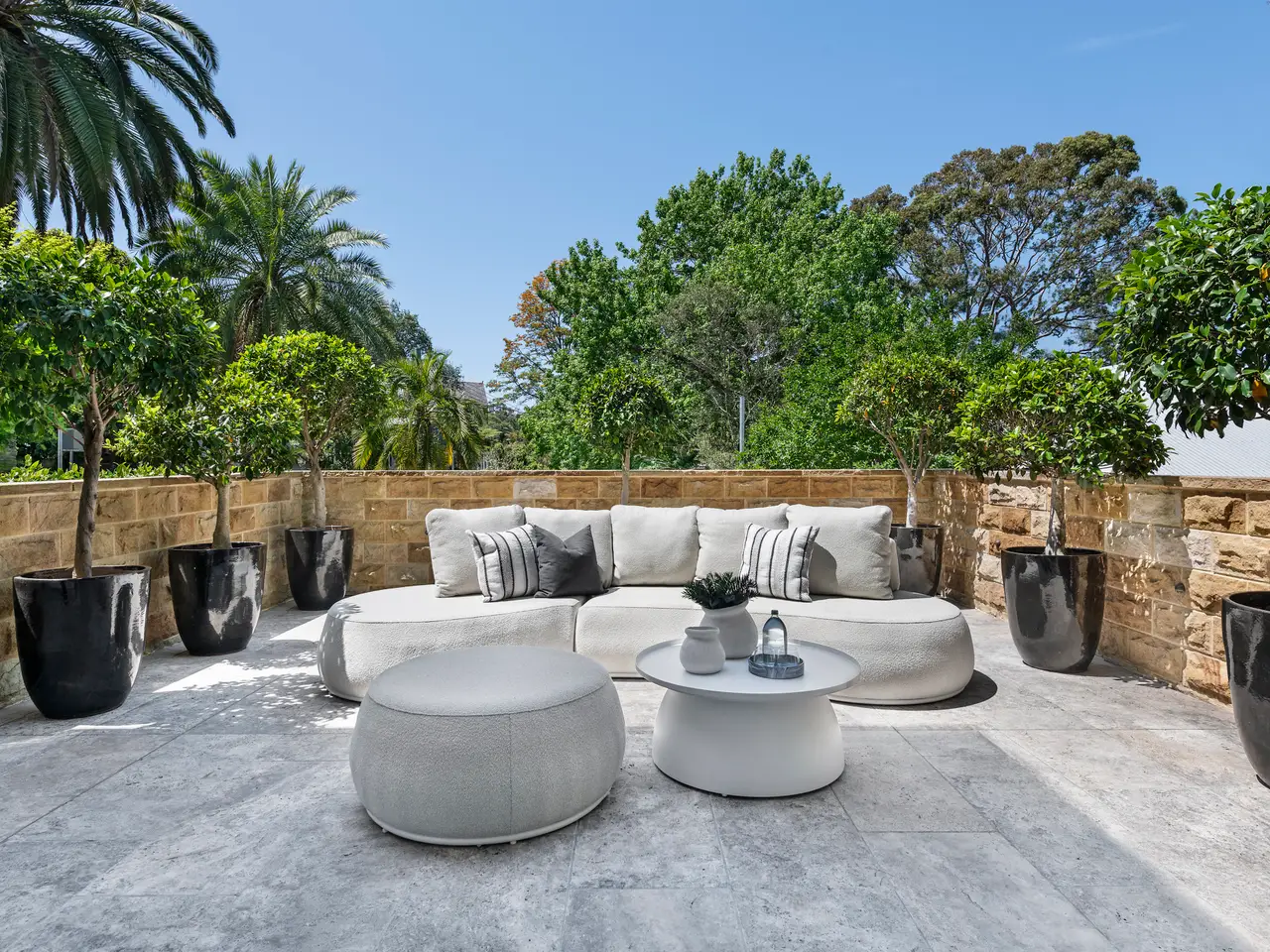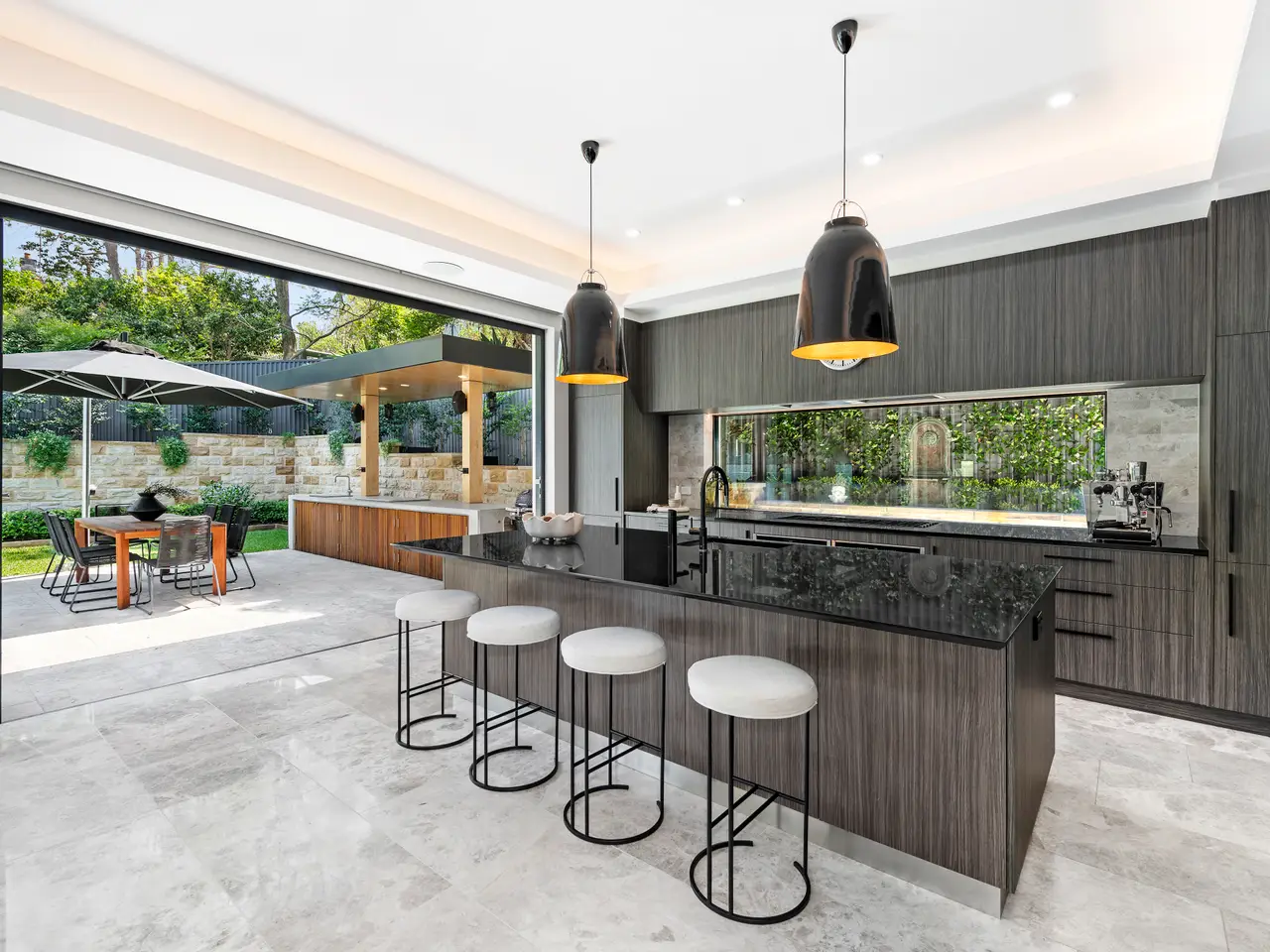 • Travertine courtyard and poolside alfresco