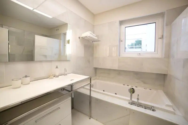 Designed by the prestigious architect Manuel Portaceli, the property has a magnificent style of construction with straight lines and large windows with views, as well as direct access to the sea The two-storey villa has a total area of 719m2 and sits on a spacious plot of 2.893 m2. The ground floor is distributed in a spacious entrance hall, living room with beautiful marble fireplace, large panoramic windows with access to the terrace and garden. It also includes a dining room in the upper part of the living room, a fully equipped design kitchen, a large pantry, a refrigerator, a laundry area with a bathroom and an additional design bathroom. The rest area is on the upper floor to which you can access through a fabulous wooden staircase or the lift. On this floor there are four double bedrooms, all with large windows overlooking the sea and two full bathrooms. The master bedroom includes an en suite bathroom with hot tub and dressing area. Next to the large pool is located the gym and changing rooms with shower. In the front you will find the garden with access to the beach. The villa has marble floors, underfloor heating and air conditioning. In addition, it is completely fenced and has access through electric door with plenty of space to park both in the garage and in the covered parking area. The villa has a privileged location and has been built with high quality materials.