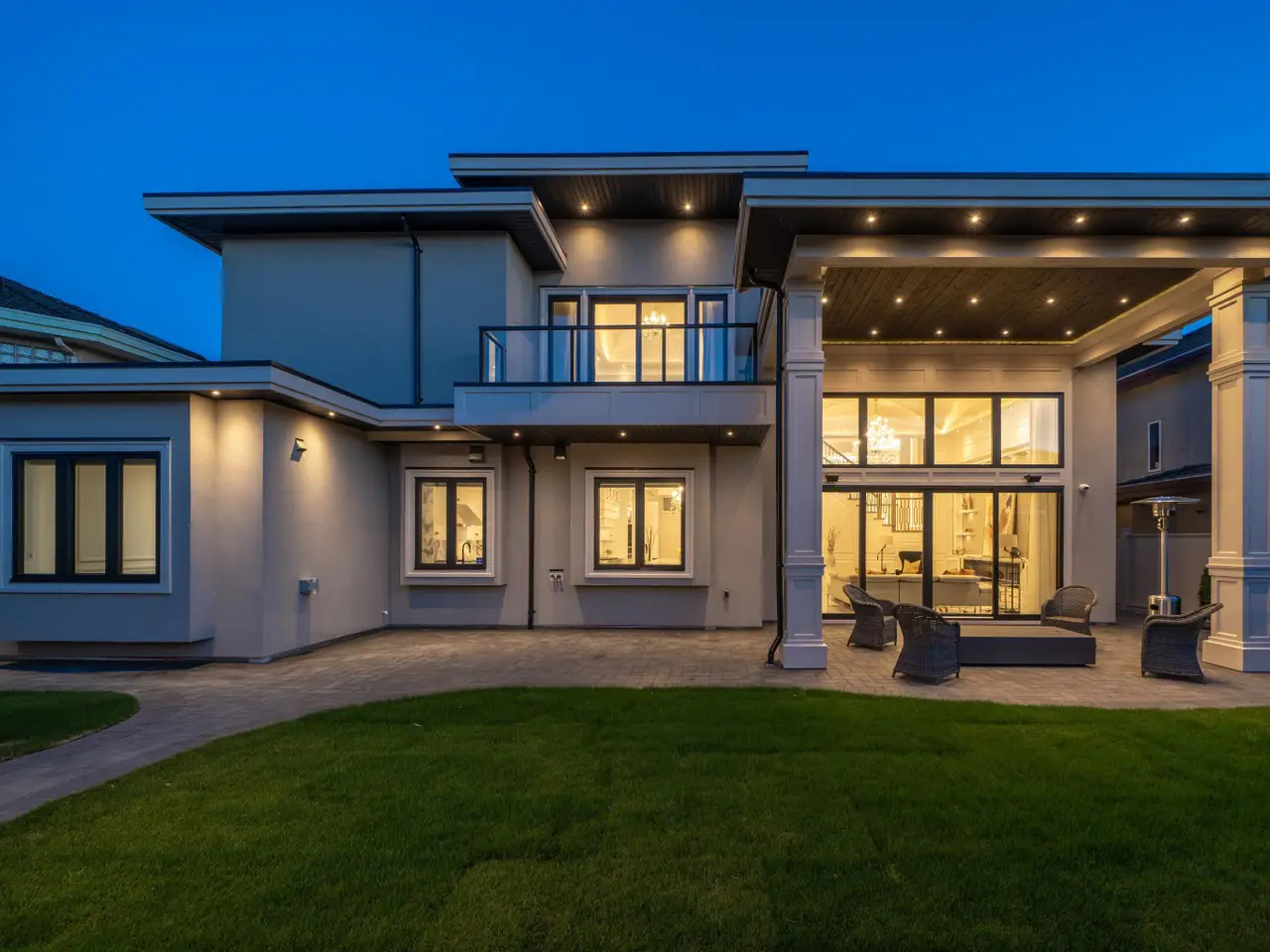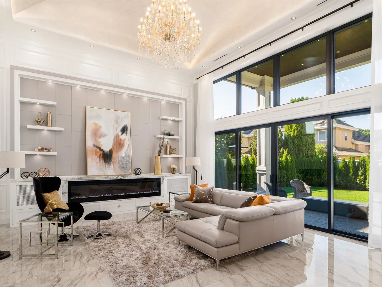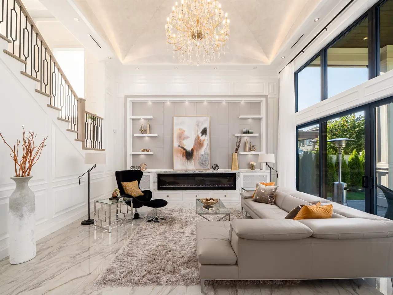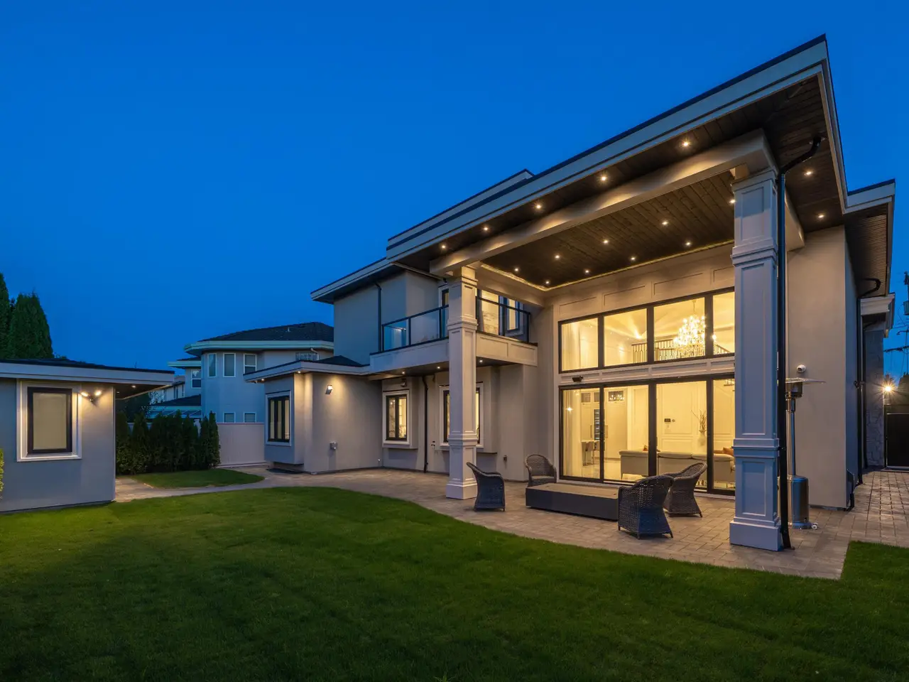 Elegant and luxurious custom home in the prestigious Granville area! North–South facing with a grand foyer featuring a stunning circular ceiling design and artistic wall accents. Italian marble flooring throughout, adorned with dazzling chandeliers. Spacious family room boasts a soaring vaulted ceiling, custom marble wall panel, and a warm fireplace. Gourmet kitchen with European marble countertops, top–tier Miele appliances, and premium cabinetry. Two master bedrooms, one with an expansive sundeck; all four upstairs bedrooms include walk-in closets. Legal suite below. Smart home system with motorized curtains, A/C, HRV, Hikvision intercom. Enjoy a fully equipped media room with wet bar, plus a private sauna. A true masterpiece for the discerning buyer!