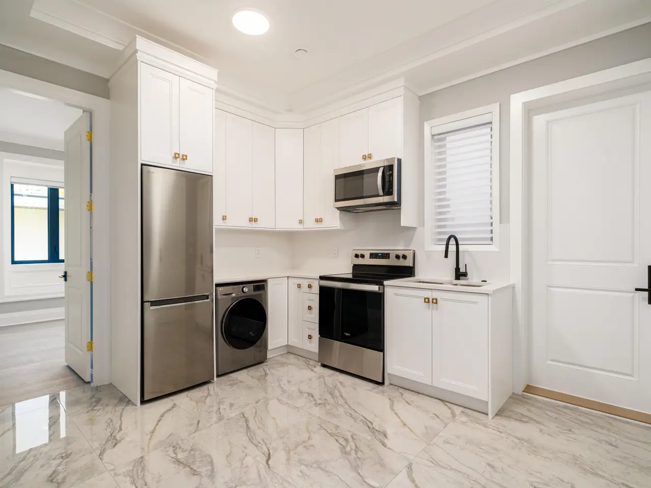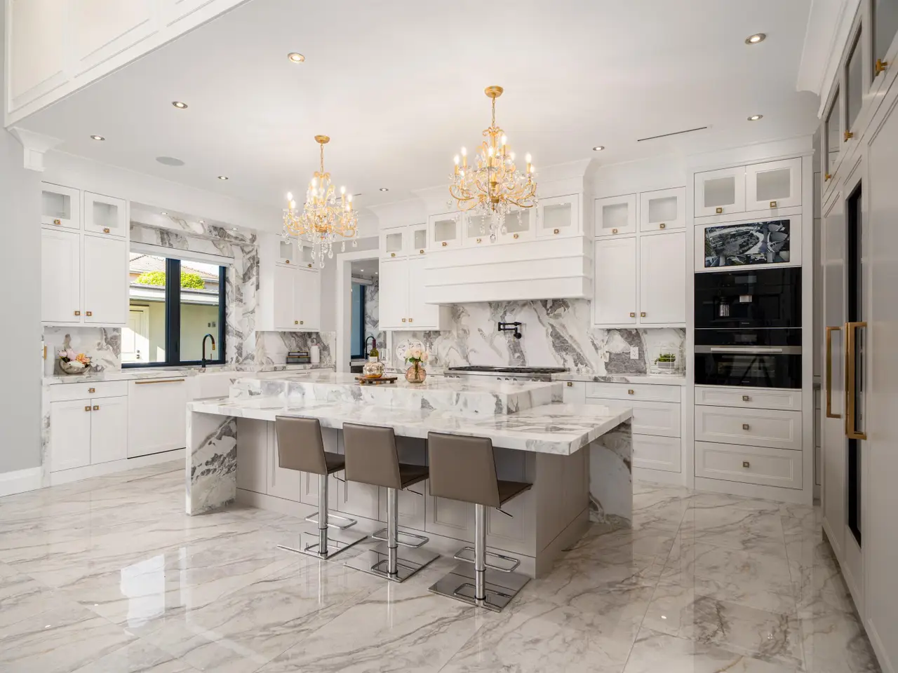 • Gourmet kitchen with European marble countertops