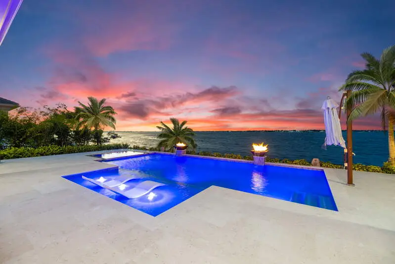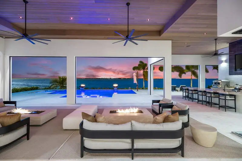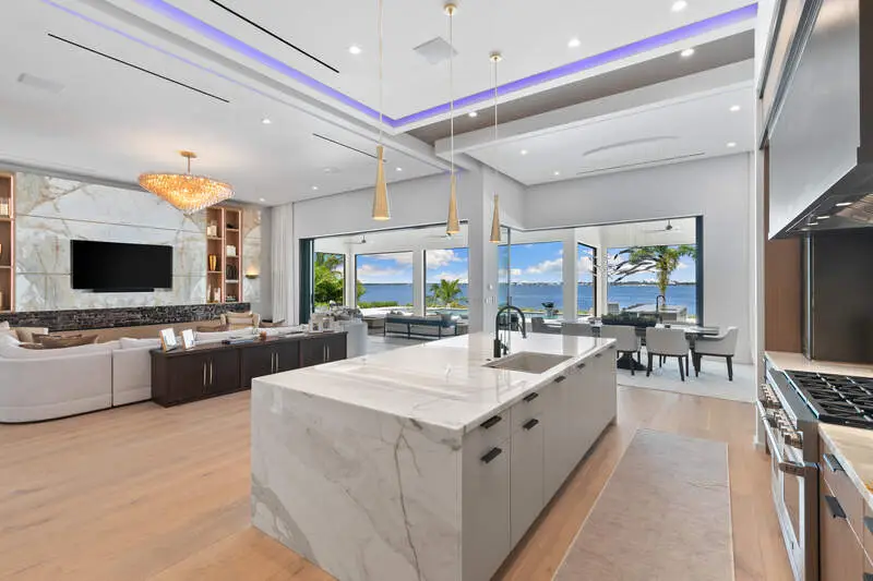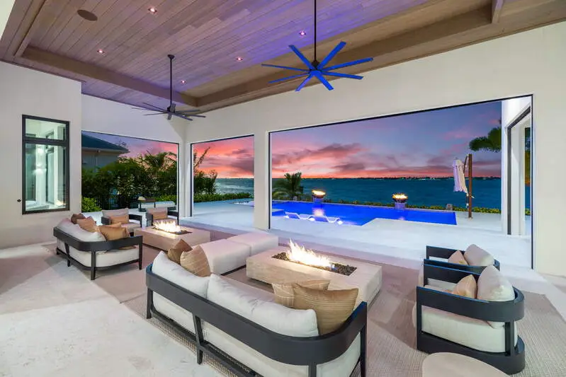 Gulf Harbour | Edgewater on Longwater Chase Court Turnkey Offering - Includes Sports Membership, 50' Boat Slip (D-21), and Custom Designer Furnishings Experience the pinnacle of waterfront luxury in this extraordinary Gulf Harbour residence, perfectly positioned in the prestigious Edgewater subdivision on Longwater Chase Court. Built by Frank Jenkins Custom Homes, this estate combines timeless elegance with modern technology for a lifestyle unlike any other. Step inside to find wide-plank White Oak floors and grand living spaces accented with Italian marble and custom finishes. The great room is a true showpiece, featuring a built-in backlit Onyx bar, dual Sub-Zero wine storage systems, and a dramatic 12-foot water vapor fireplace beneath a hand-blown Restoration Hardware chandelier. The chef's kitchen is a culinary dream, appointed with Wolf, Sub-Zero, and True appliances and complemented by a marble butler's pantry with coffee station, dual lazy Susans, second dishwasher, microwave, and Franke sink system. The private primary suite offers panoramic water views and a spa-inspired bath. Three ensuite guest rooms plus a spacious bonus room with water views provide flexible accommodations for family and guests. Seamlessly integrated smart home technology includes Loxone-powered Ketra lighting, Bowers & Wilkins ceiling speakers with Sonos Amps, and full control of lighting, climate, and security. Outdoors, the resort lifestyle continues with 110 feet of private white sand beach, 1,400 sq. ft. of covered lanai, and a saltwater pool with spa, sun shelf, fire features, and lush landscaping. Perfect for boating and golf enthusiasts, Gulf Harbour offers a world-class marina with access to destinations from Sarasota to Marco Island, plus an impeccably maintained golf course with memberships available immediately. This residence is offered as a complete turnkey package-a rare chance to step directly into the ultimate Southwest Florida lifestyle. Don't miss the breathtaking walk-through videos.