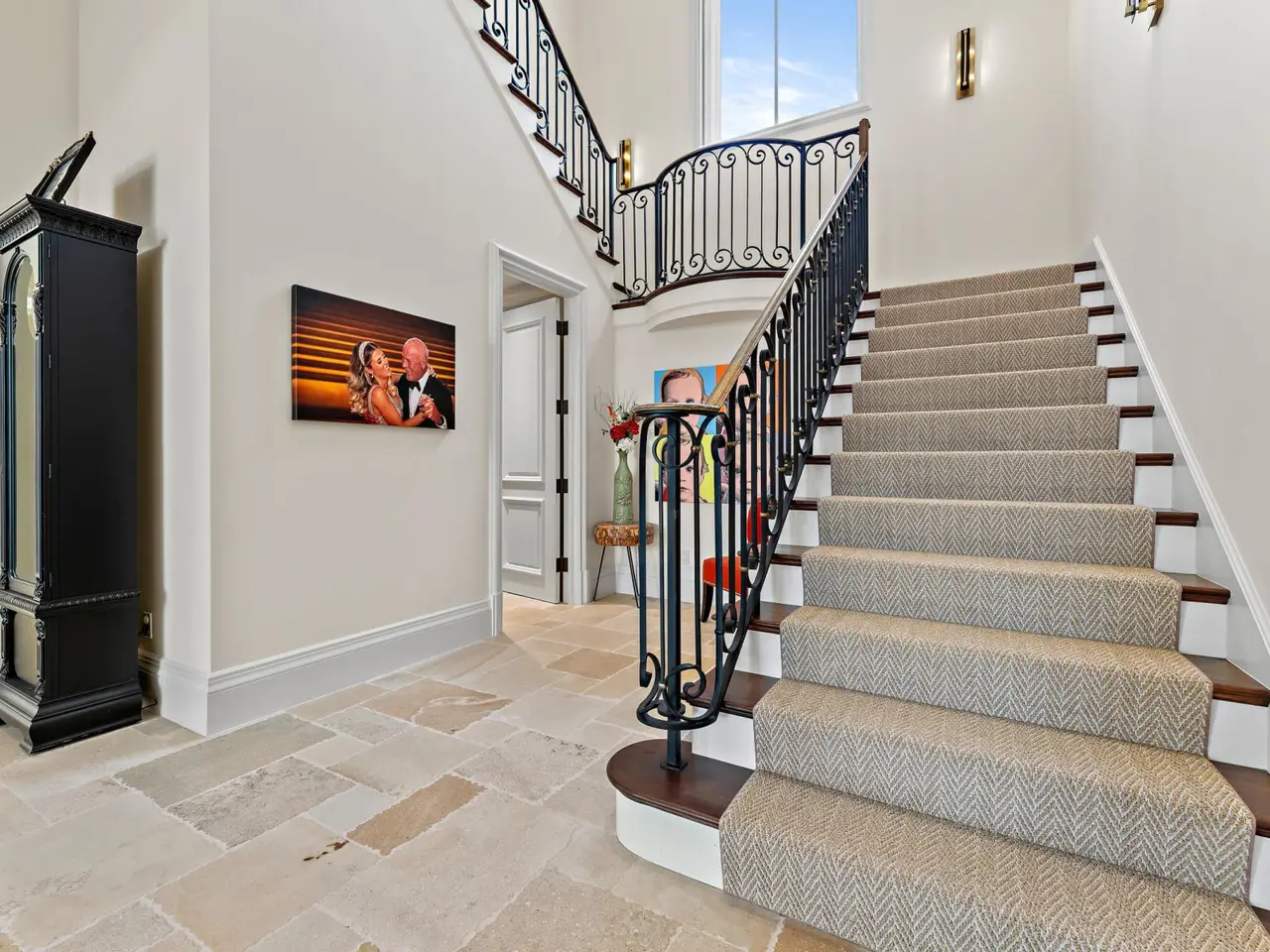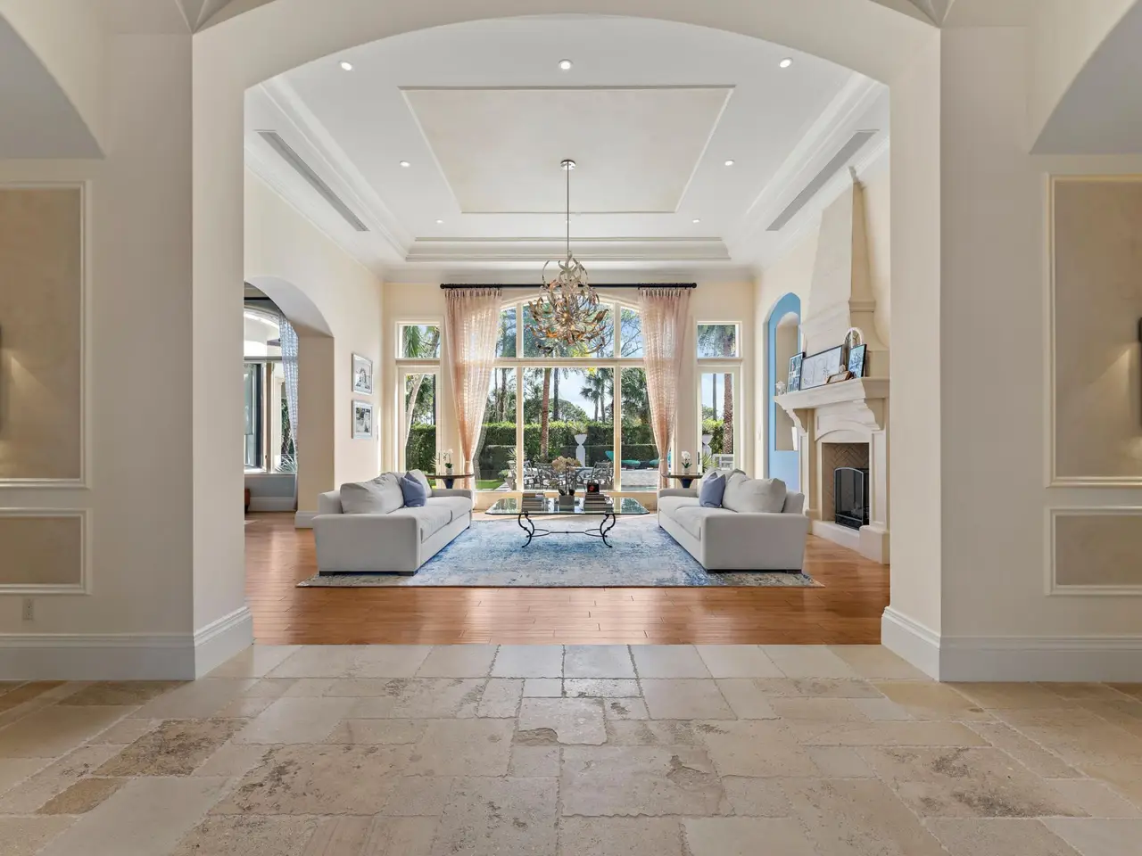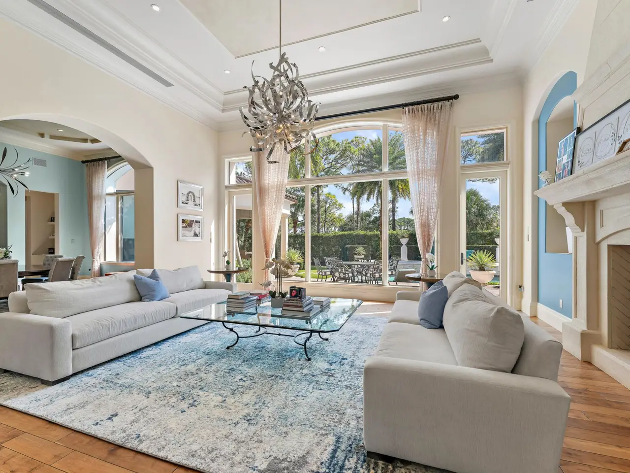 Enjoy the elegance of this custom, over 9,000 square ft estate located in the exclusive Bears Club in Palm Beach Gardens. Featuring five bedrooms, 7.2 bathrooms, 2 - 2 car garages. This spectacular home is situated on a beautiful lot with privacy and a resort-style backyard with outdoor loggia and a fireplace. Recently renovated and new roof. Additional luxuries include a first-floor master suite, 2 magnificent marble master bathrooms, a guest suite, a media room, a club room, a chefs kitchen, a wine bar with a built-in wine fridge, soaring ceilings, impact glass, an elevator, and much more! Beautifully appointed with amenities too numerous to list and ready for the most discerning buyer