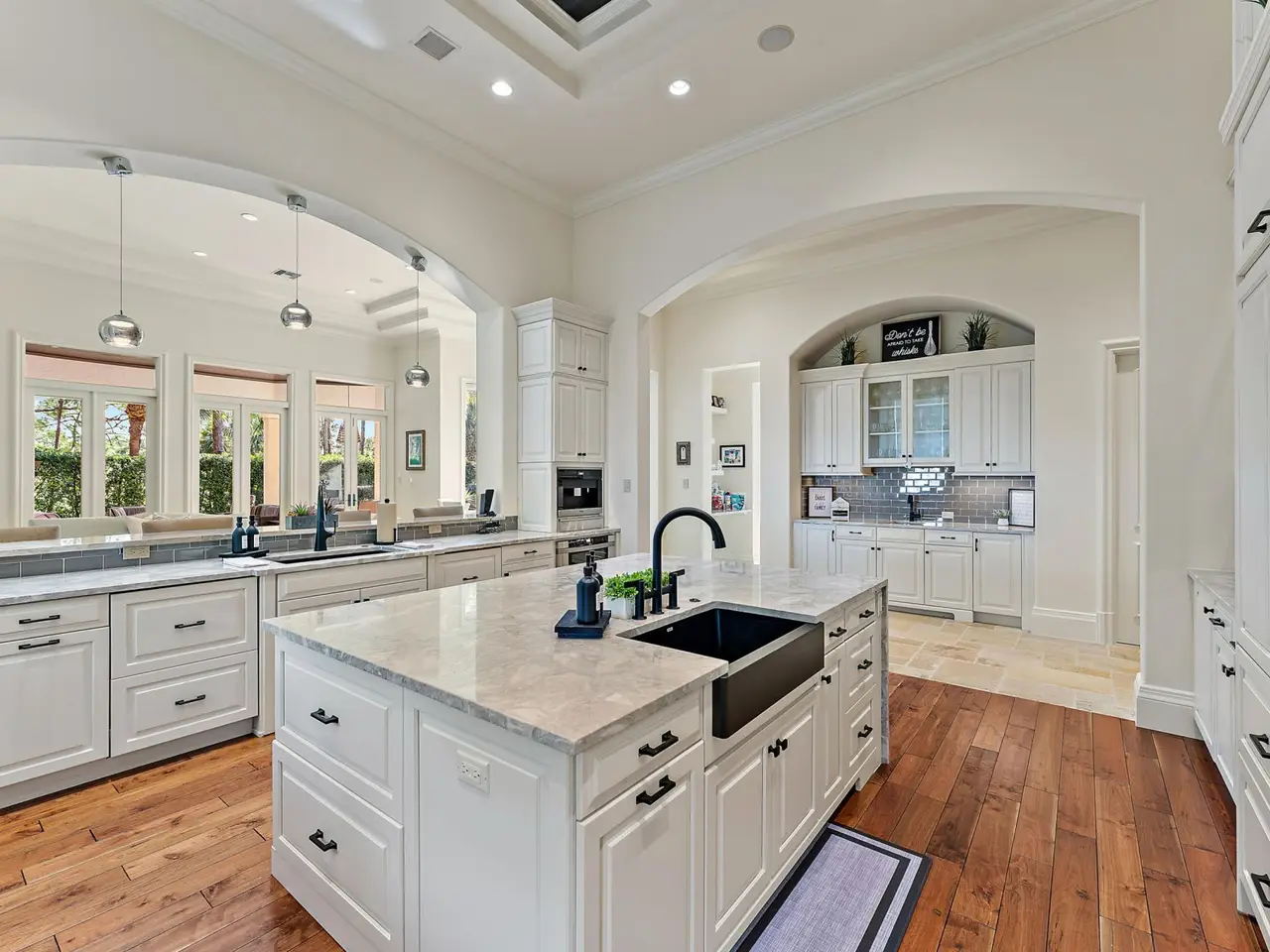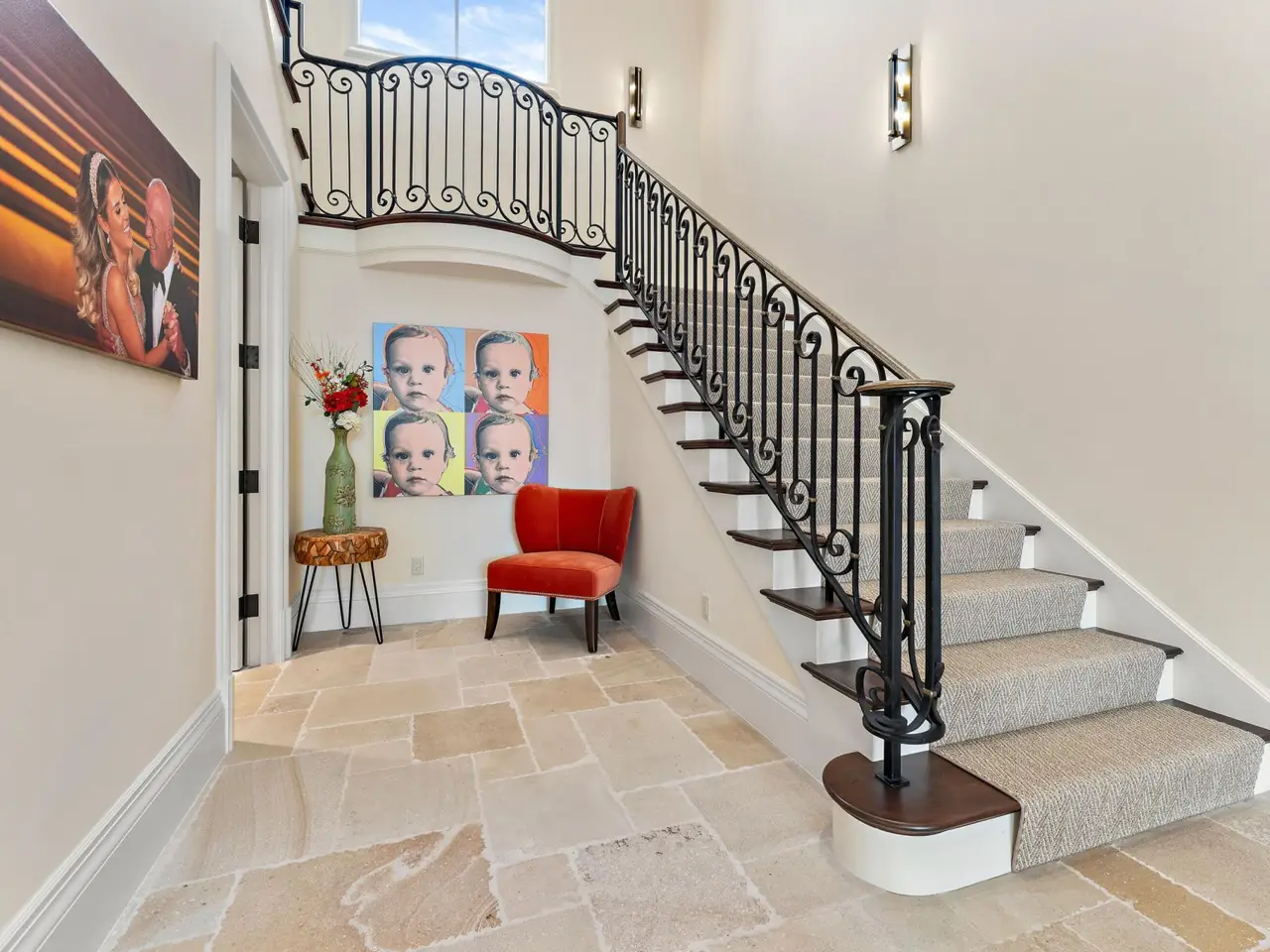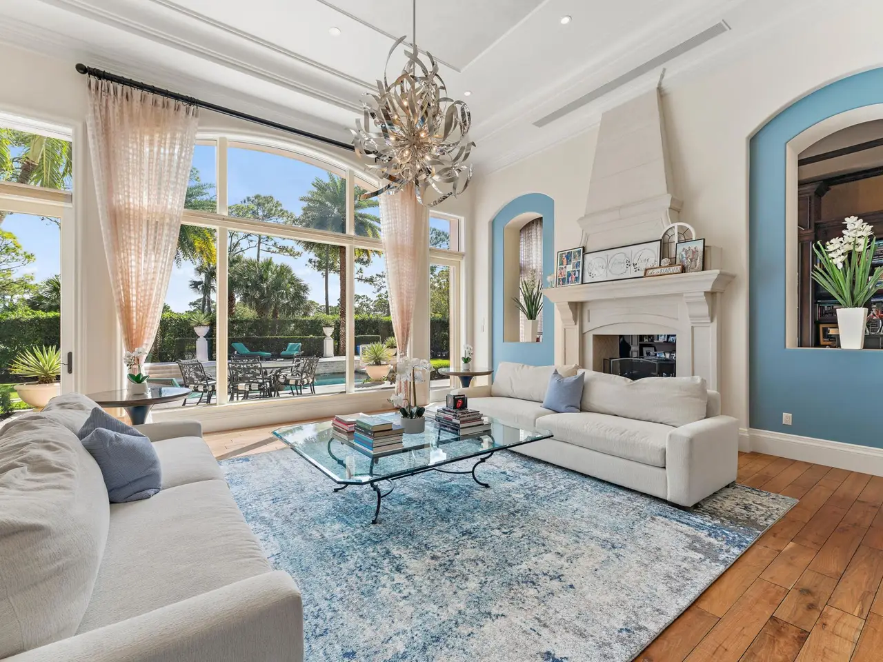 Enjoy the elegance of this custom, over 9,000 square ft estate located in the exclusive Bears Club in Palm Beach Gardens. Featuring five bedrooms, 7.2 bathrooms, 2 - 2 car garages. This spectacular home is situated on a beautiful lot with privacy and a resort-style backyard with outdoor loggia and a fireplace. Recently renovated and new roof. Additional luxuries include a first-floor master suite, 2 magnificent marble master bathrooms, a guest suite, a media room, a club room, a chefs kitchen, a wine bar with a built-in wine fridge, soaring ceilings, impact glass, an elevator, and much more! Beautifully appointed with amenities too numerous to list and ready for the most discerning buyer