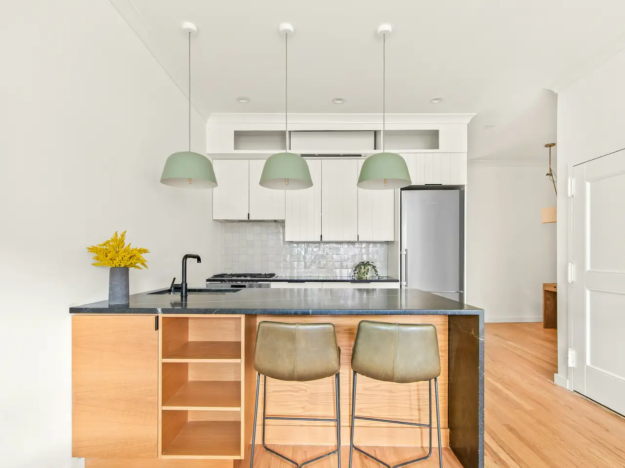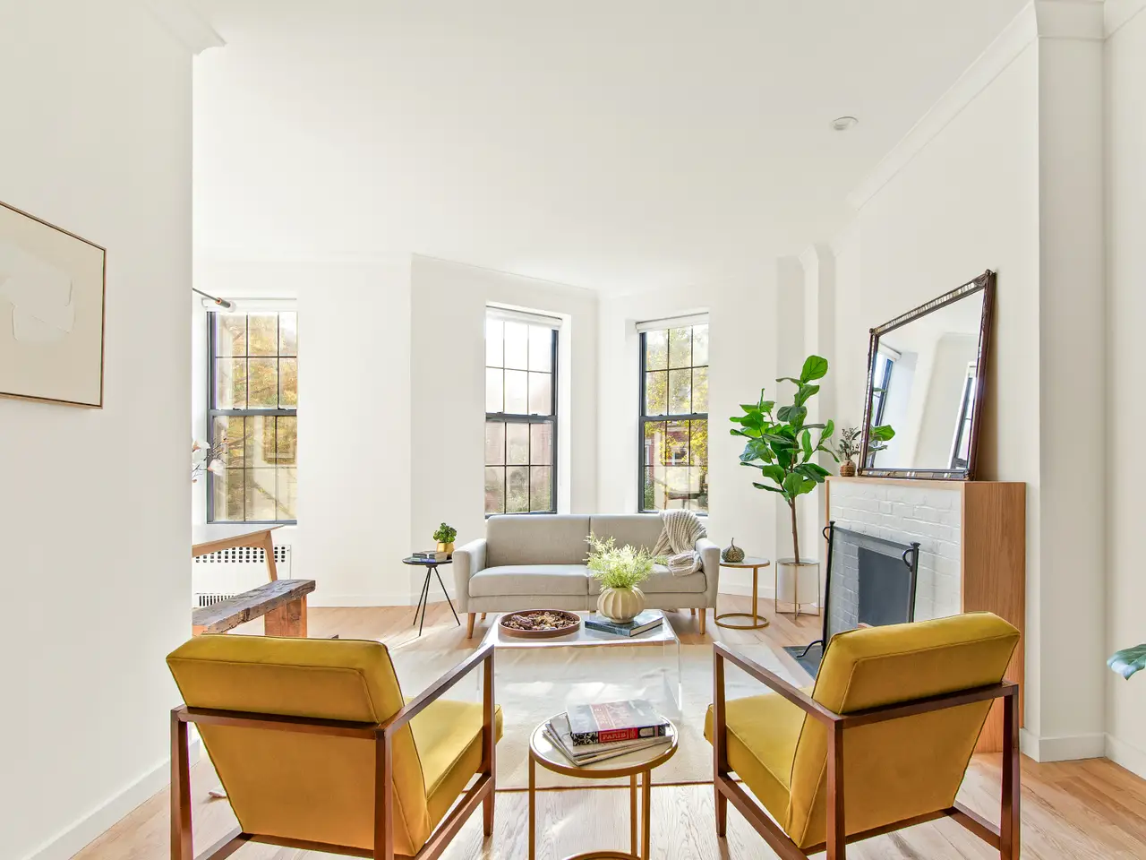 Spread out in this lovely two bedroom, two bath condo off 5th Avenue in prime Park Slope with prewar details and craftsman finishes. Just one flight up to the second floor where, as soon as you enter, you see bright southern light streaming in through mullioned bay windows onto the newly refinished white oak hardwoods. Entertain in the open concept layout showcasing high ceilings, a cozy wood burning fireplace, and a modern kitchen with striking Vermont Soapstone countertops. The separate windowed dining L and sizable office nook are bonus areas that add convenience and truly define this special space. Retreat to the primary bedroom with a beautifully designed ensuite marble bath with a modern shower stall. Exit out onto the bedroom balcony to take in the view of the garden with a cup of coffee. This stunning home is complete with the second bathroom with a bathtub and a second bedroom that easily accommodates guests as well as an additional workspace. Other modern perks include an in-unit washer/dryer, ample closet spaces outfitted by Elfa and a new HVAC split system. 667 Degraw Street, a charming pet friendly boutique 3-unit pre-war condominium, is self-managed and offers spacious apartments within a fiscally responsible community. Enjoy the quintessential Park Slope experience, with seamless access to the lush greenery of Prospect Park and a lively array of dining and shopping options on 5th and 7th Avenues and Union Street. Transit is a cinch with the nearby access to 2/3/4/5/B/Q/R trains and the LIRR at Atlantic station. For health and well-being, there are many local gyms, a lovely community garden just a block away and Union Market and the Food Coop just two short blocks away! This enchanting home is ready to welcome its new owners. Don't miss the chance to make it your own-schedule a showing today and explore all that this exceptional property has to offer in one of Brooklyn's most sought-after neighborhoods!