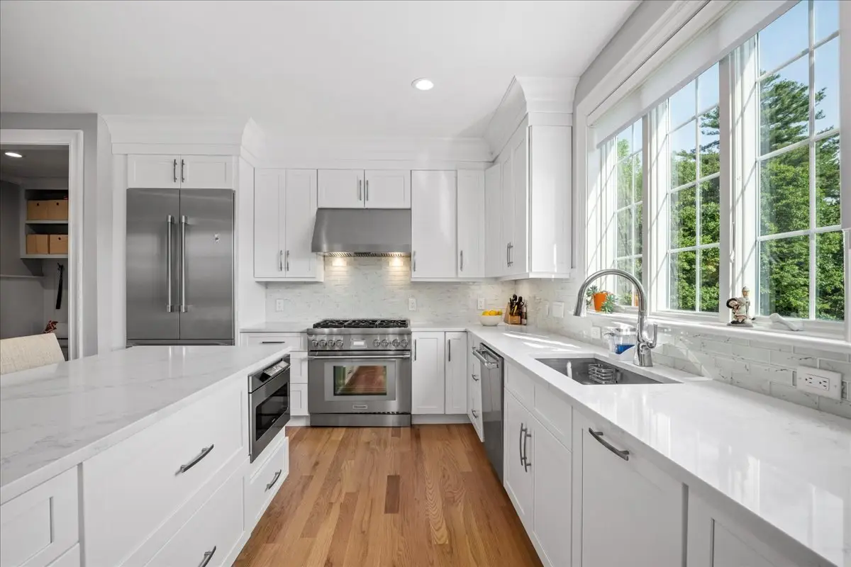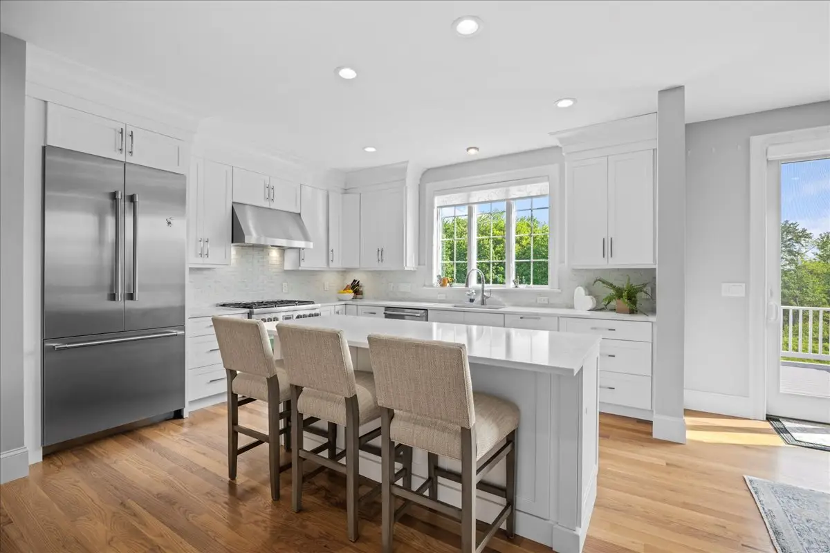 Refined living in this better than new mint, custom, transitional colonial boasting all the luxe finishes you’ve been dreaming of. Beautifully situated in one of the area’s most desirable & upscale neighborhoods. Quality built for maximum efficiency. Sun-splashed rooms with high-end finishes & modern amenities thru-out. Step into the inviting open Foyer setting the stage for excitement. Open flow is key! Impressive white Shaker-style Kitchen with gleaming Quartz & upscale Thermador stainless appliances, walk-in pantry & gorgeous island. Family Room with gas firerplace & coffered ceiling. 1st floor guest or Living Rm with access to full bath. Formal Dining Room with deluxe tray ceiling. Sundrenched 1st floor Office. Terrific mudroom. 2nd floor offers large bedrooms. Jack & Jill Suite with shared bath with huge vanity. 4th Bedroom with en-suite bath. Romantic Primary Suite with 2 large walk-in closets. Primary bath with tiled shower + gorgeous vanity. Rich hardwood flooring & tile thru-out. Oversized composite deck & balustrade. Oversized 3-car garage. Absolute perfection & loads of upgrades over original purchase price.