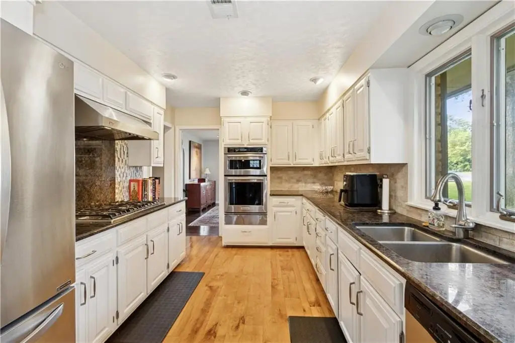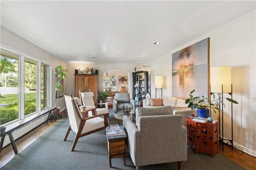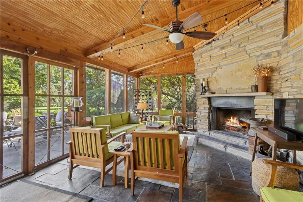 This beautiful mid-century home features twice cut random uncoursed sandstone masonry on the exterior and through the home. This rambling ranch is a tribute to Frank Lloyd Wright and an eye catcher as you enter Mission Hills. This home sits on .8 acre with beautiful mature trees. The Chef's kitchen opens to a large vaulted family room with a sandstone gas insert fireplace. Off of the kitchen is an entry to a massive sandstone screened porch featuring a wood burning fireplace and a slate radiant heated floor. From the porch you can open French doors into the office/library, which features a sandstone gas-insert fireplace and wet bar. Between the kitchen and the library/office is a half-bath and laundry room. The light filled Living room provides some of the finest sunsets and is adjacent to the formal dining room. The primary room also has a gas insert fireplace, walk in closets and radiant heated master bathroom floor. The large two bedrooms are joined by a newly finished Jack and Jill bath also with a radiant heated floor. A sprawling finished basement has a large entertainment area that leads into living quarters with 2 nonconforming bedrooms, a full bath and kitchen with a walkup to the back yard. This is a must see home which is in walking distance to schools and the Prairie Village shops. Seller is an owner and a real estate agent.