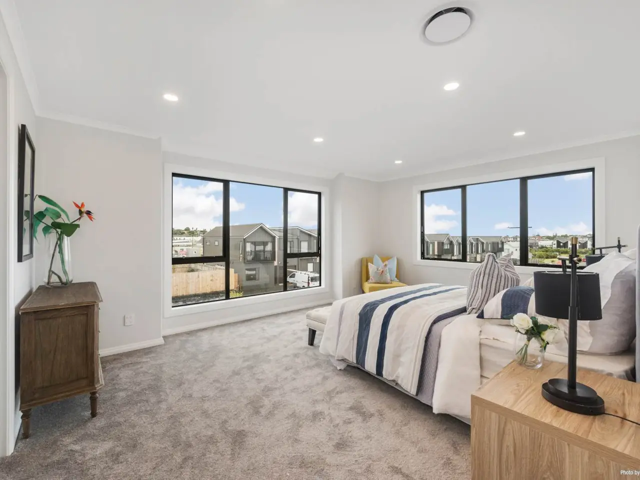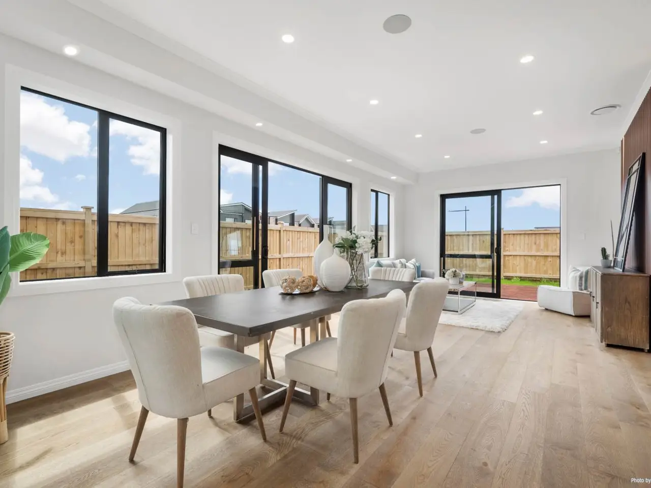 Positioned on a quiet corner in a peaceful street, this expansive residence offers the ideal balance of style, space, and functionality. Set on a 484 sqm section with an impressive 360 sqm (approx.) floor area, this home is designed for multi-generational living and effortless entertaining. Step inside to a grand entrance with a striking feature wall that introduces the home’s sense of elegance. A sun-filled formal lounge provides a tranquil retreat or welcoming space for guests. The beautifully appointed kitchen is the heart of the home, featuring a generous island, premium Miele appliances, built-in coffee machine, and ample storage. A full second kitchen offers added convenience—perfect for large families or entertaining. The open-plan living and dining areas connect seamlessly to a private patio, while American oak flooring adds warmth and sophistication. A guest toilet completes the level. Granny potential is a standout feature here, with a self-contained wing including two bedrooms, a bathroom, and a living area—ideal for extended family, guests, or a home office. Upstairs, a spacious sitting area with high ceilings adds a sense of grandeur. Two master suites offer private luxury, one complete with a freestanding bath, double vanity, and a flexible space for a nursery, study, or creative nook. Two additional bedrooms share a stylish family bathroom. Located close to shops, motorway access, and the Hibiscus Coast bus station, this exceptional home ticks every box. Contact us today to arrange your private viewing or attend our Open Home!